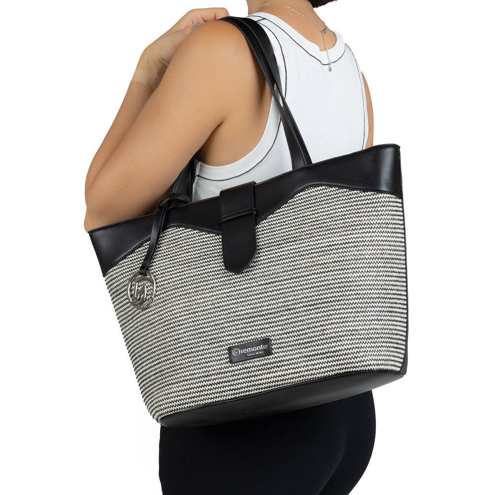 Elegantní dámská kabelka Remonte, která zaujme na první pohled svým tvarem, barevnou kombinací a jedinečným vzorem. Celkový design dotváří logo značky Remonte. Na zadní straně je praktická kapsička na zip, na drobnosti. Hlavní přihrádka je uzavíratelná zipem. Uvnitř najdete menší přihrádky - jednu uzavíratelnou na zip a dvě otevřené.