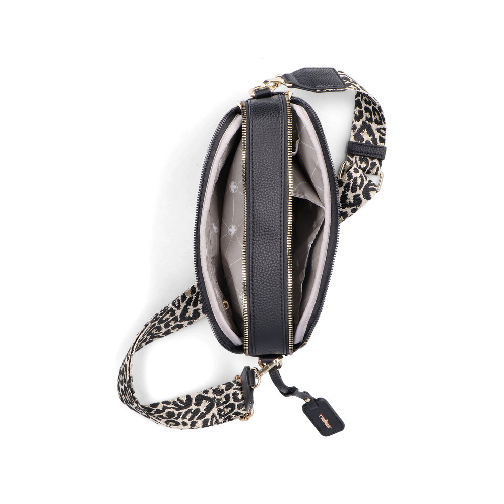 Rozměry: v. 16 cm x š. 25 cm x h. 7 cm Uvnitř je kabelka dělená. Uvnitř kabelky je jedna kapsa na zip a dvě otevřené. Délkově nastavitelný popruh.