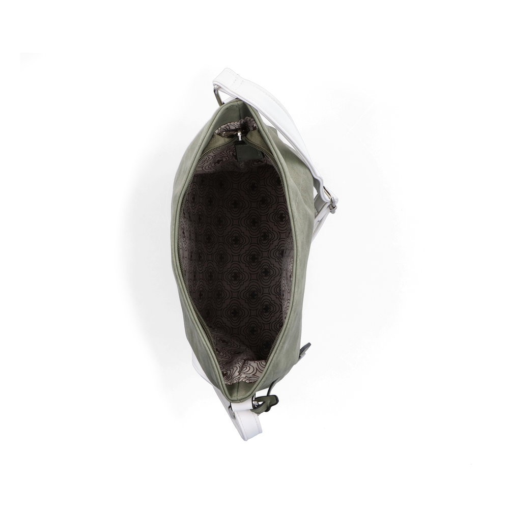 V jednoduchosti je krása, to platí u této kabelky Rieker v decentní zelené barvě, kterou lehce sladíte s riflemi i letním oblečením. Tato kabelka má jeden dlouhý, délkově nastavitelný popruh. V hlavní přihrádce, která je na zip, najdete další menší přihrádky na drobnosti. Nechybí ani logo značky. Tato lehká a praktická kabelka se hodí, jak do práce, tak na procházky městem.