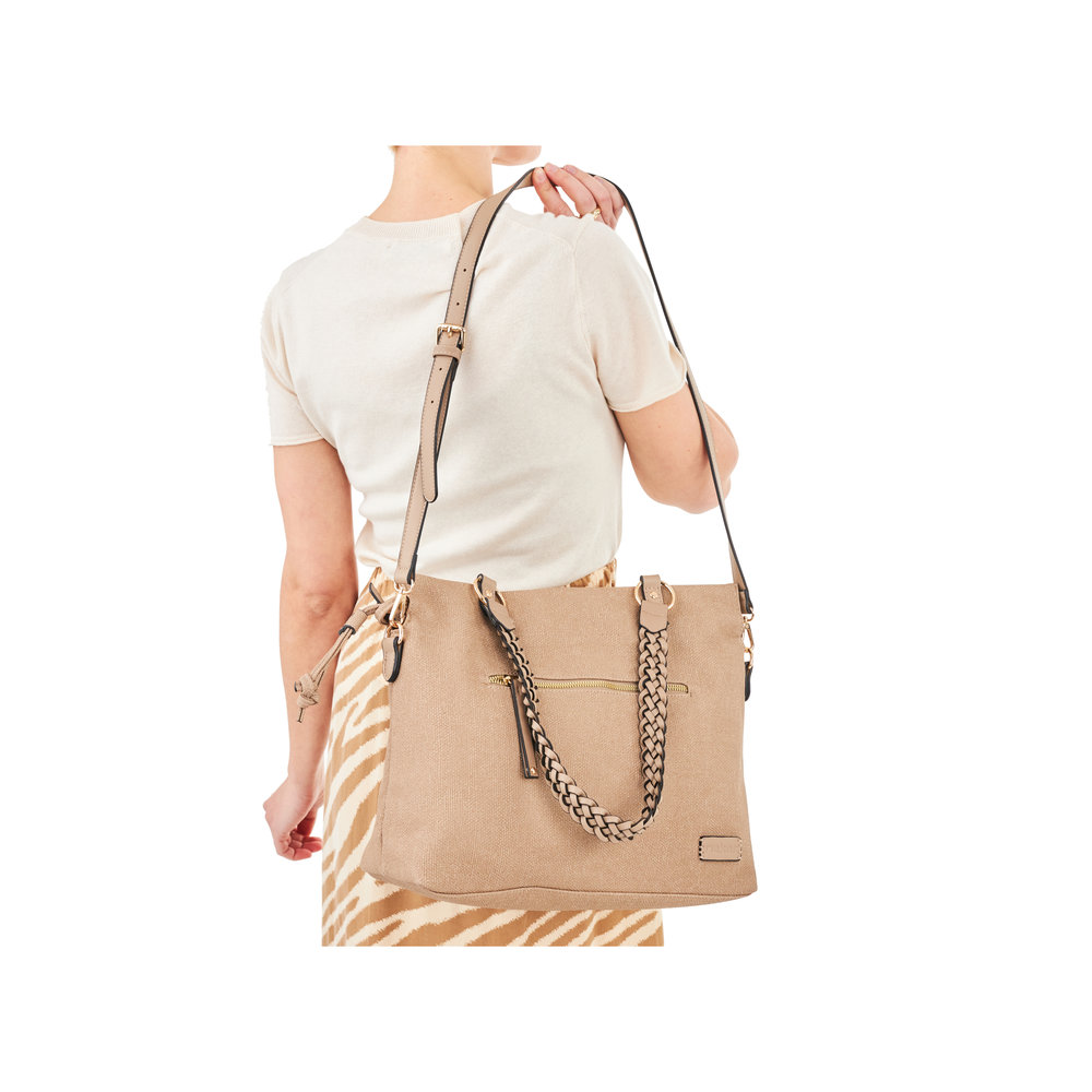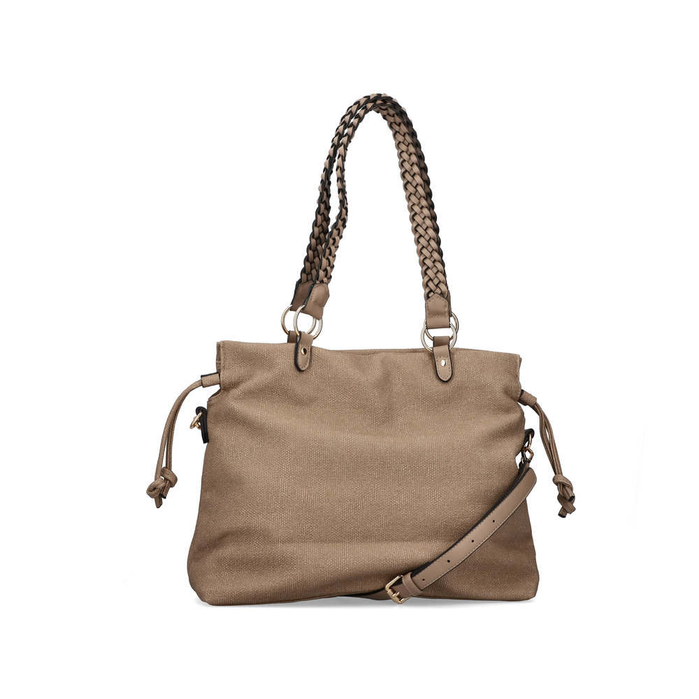 Kabelka od značky Rieker v béžové barvě má praktickou venkovní přihrádku na drobnosti a hlavní prostornou přihrádku s malými přihrádkami. Tato kabelka má odepínací, délkově nastavitelný popruh a dvě proplétané uši, pro nošení v ruce. Pomocí šňůrek si kabelku můžete vzhledově upravit. Ať už se vydáte do města nebo na výlety, nezapoměňte, že tato kabelka je správnou volbou.