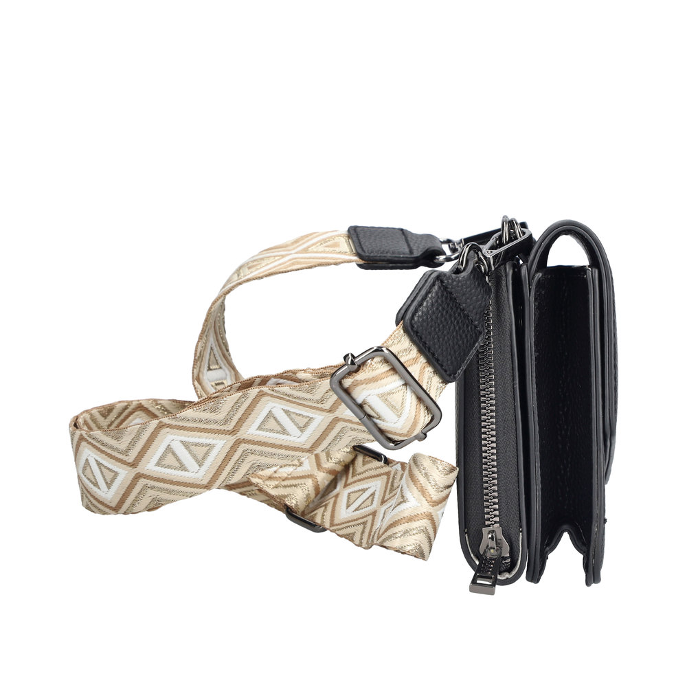 2. část uzavíratelná zipem - uvnitř je kabelka dělená přihrádkou a navíc je vybavena po stranách přihrádkami na karty (tato část kabelky Vám dokonale nahradí peněženku).