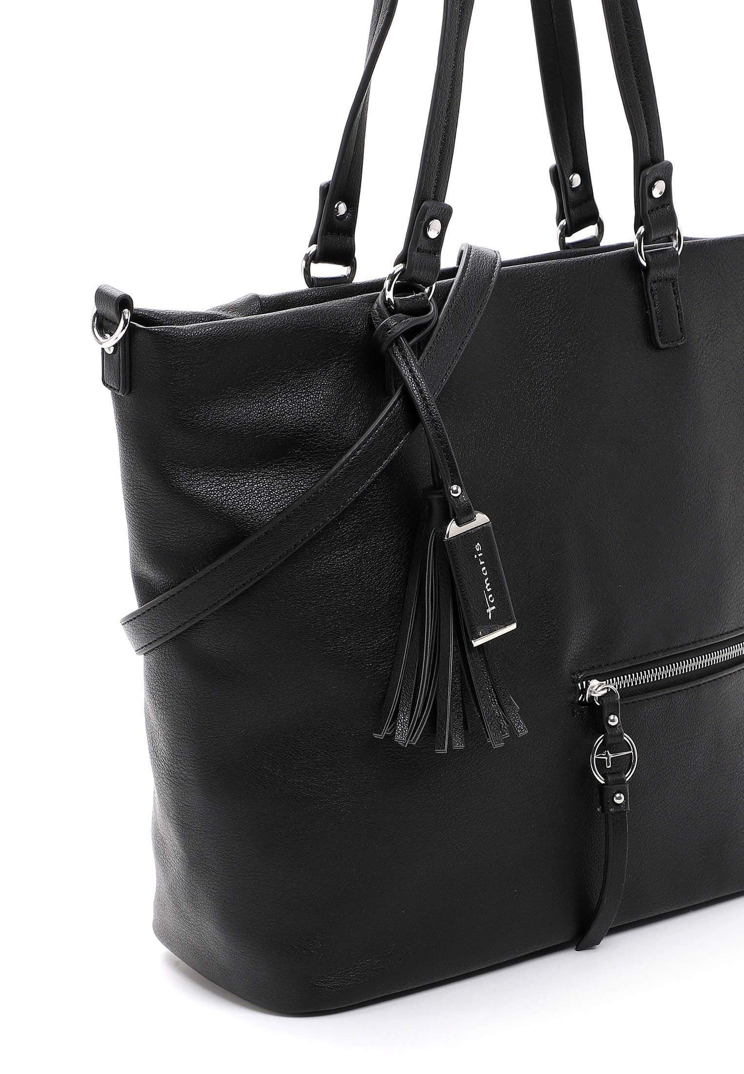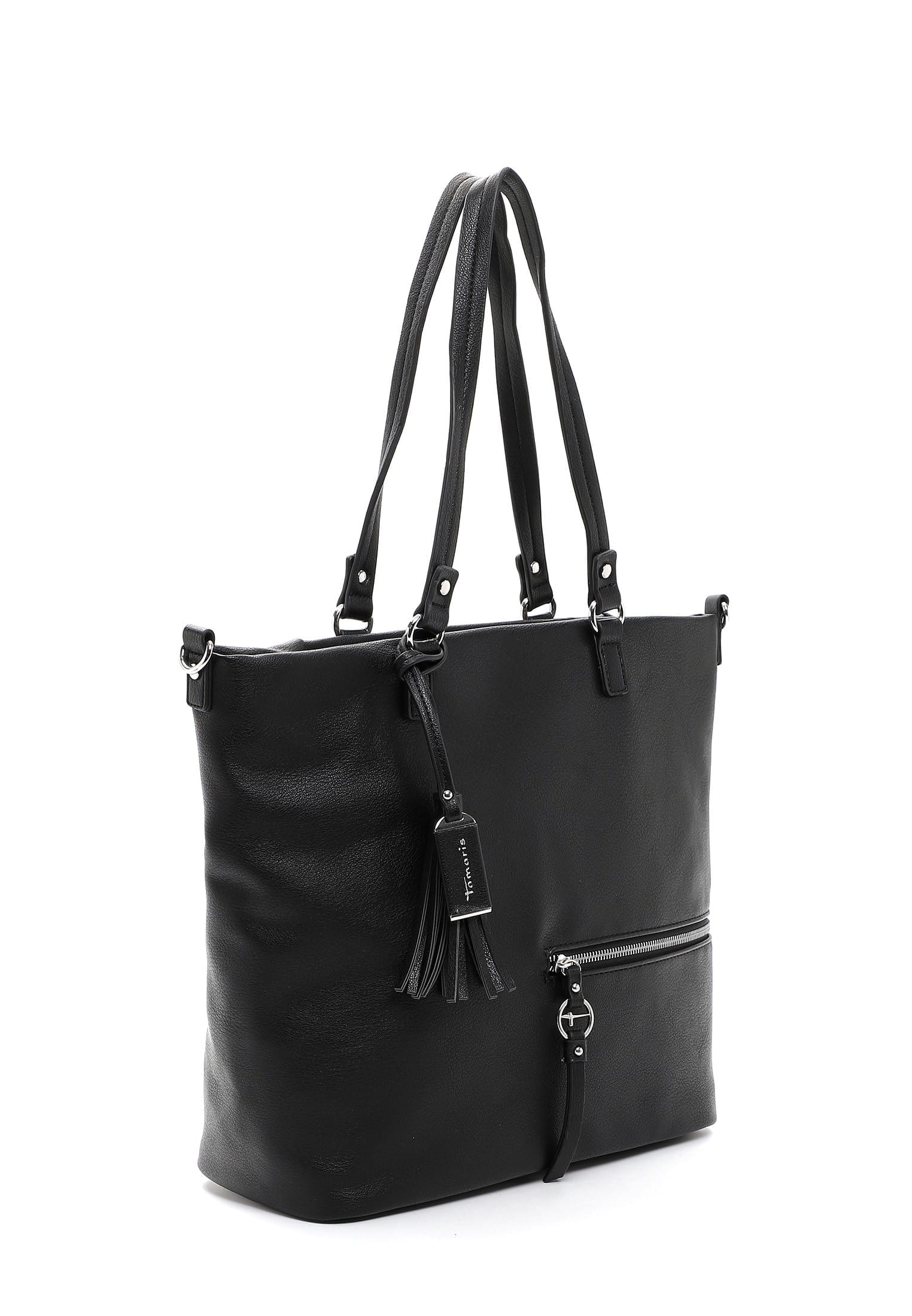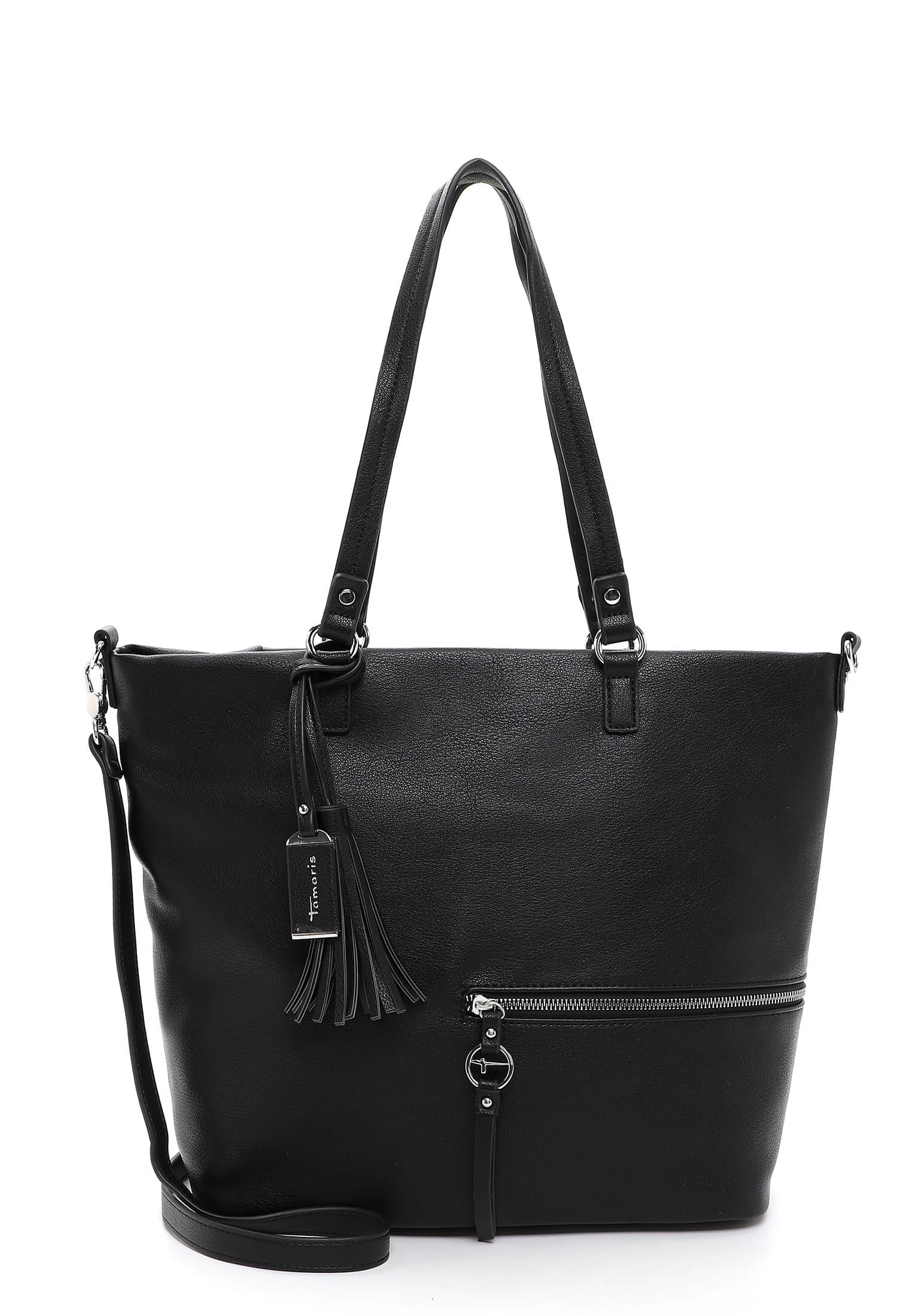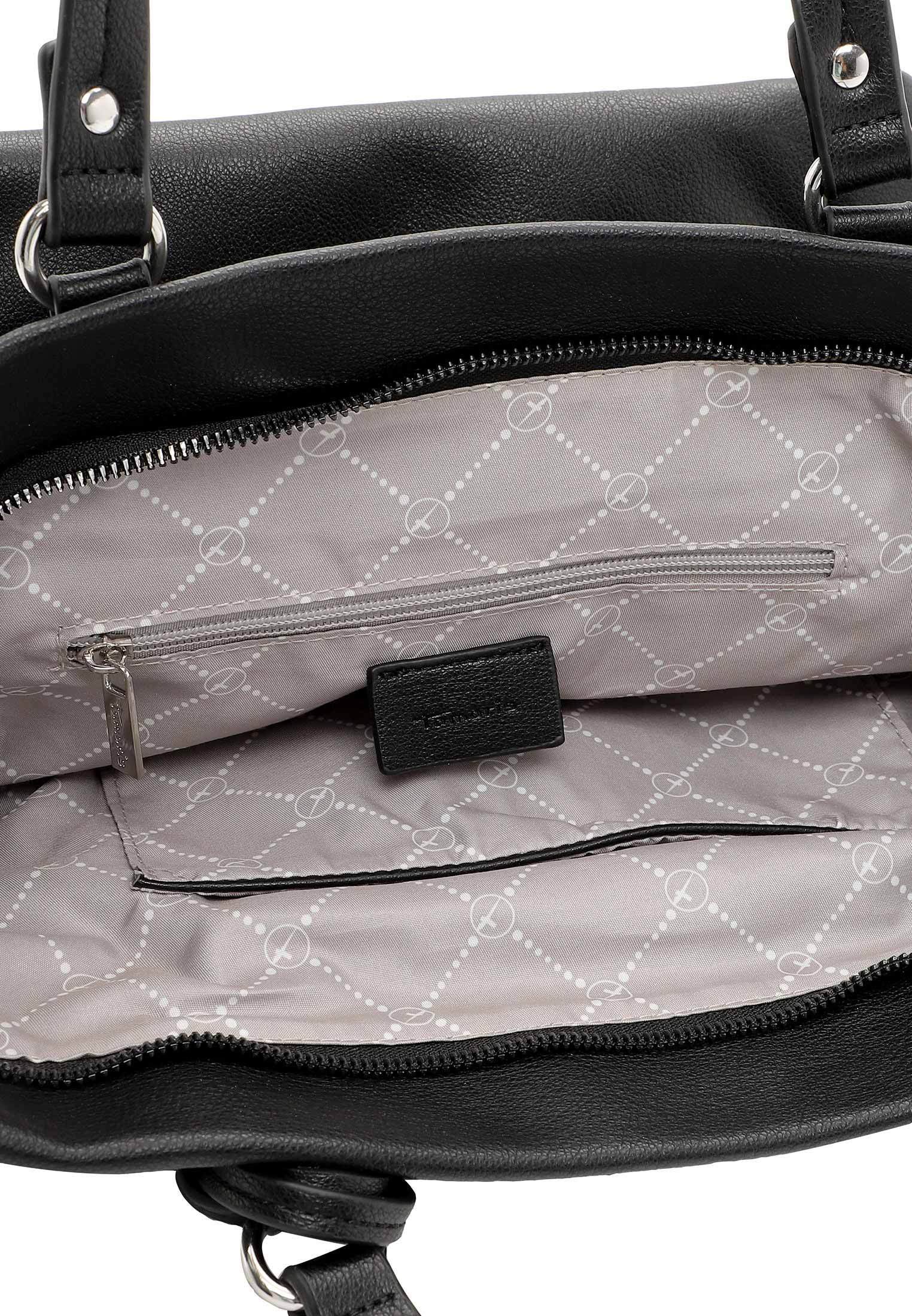 Krásná pevná kabelka, co se vždy hodí, to je tato kabelka Tamaris se stříbrnými doplňky. Zaujme na první pohled tvarem, stříbrným zipem a přívěskem. Kabelku můžete nosit v ruce nebo přes rameno. Má dvě držadla a odepínací dlouhý popruh. Velká prostorná hlavní přihrádka nabízí spoustu úložného prostoru. Další kapsička je na zadní vnější straně kabelky. Tato kabelka bude vždy krásným doplňkem každého outfitu.