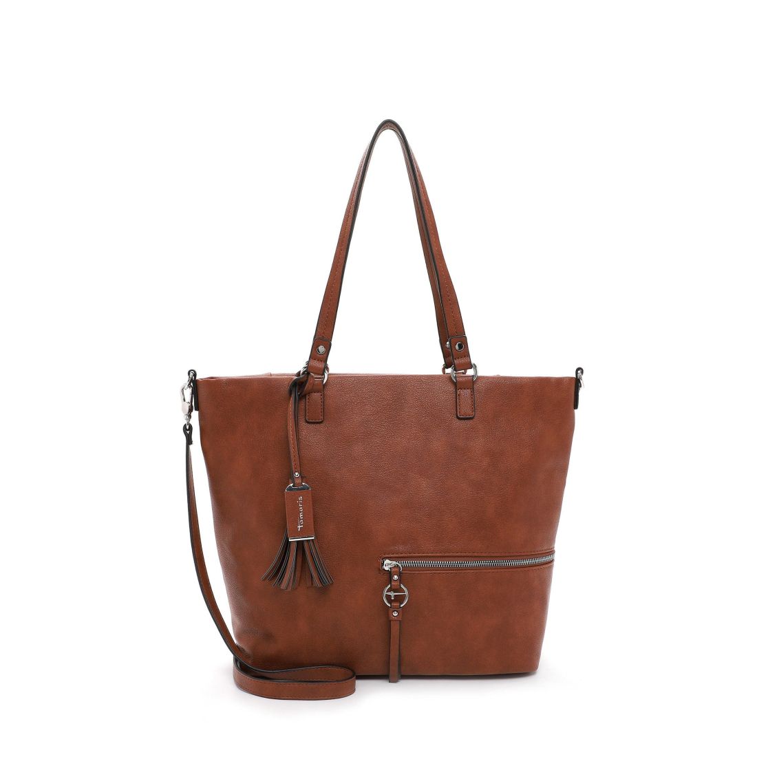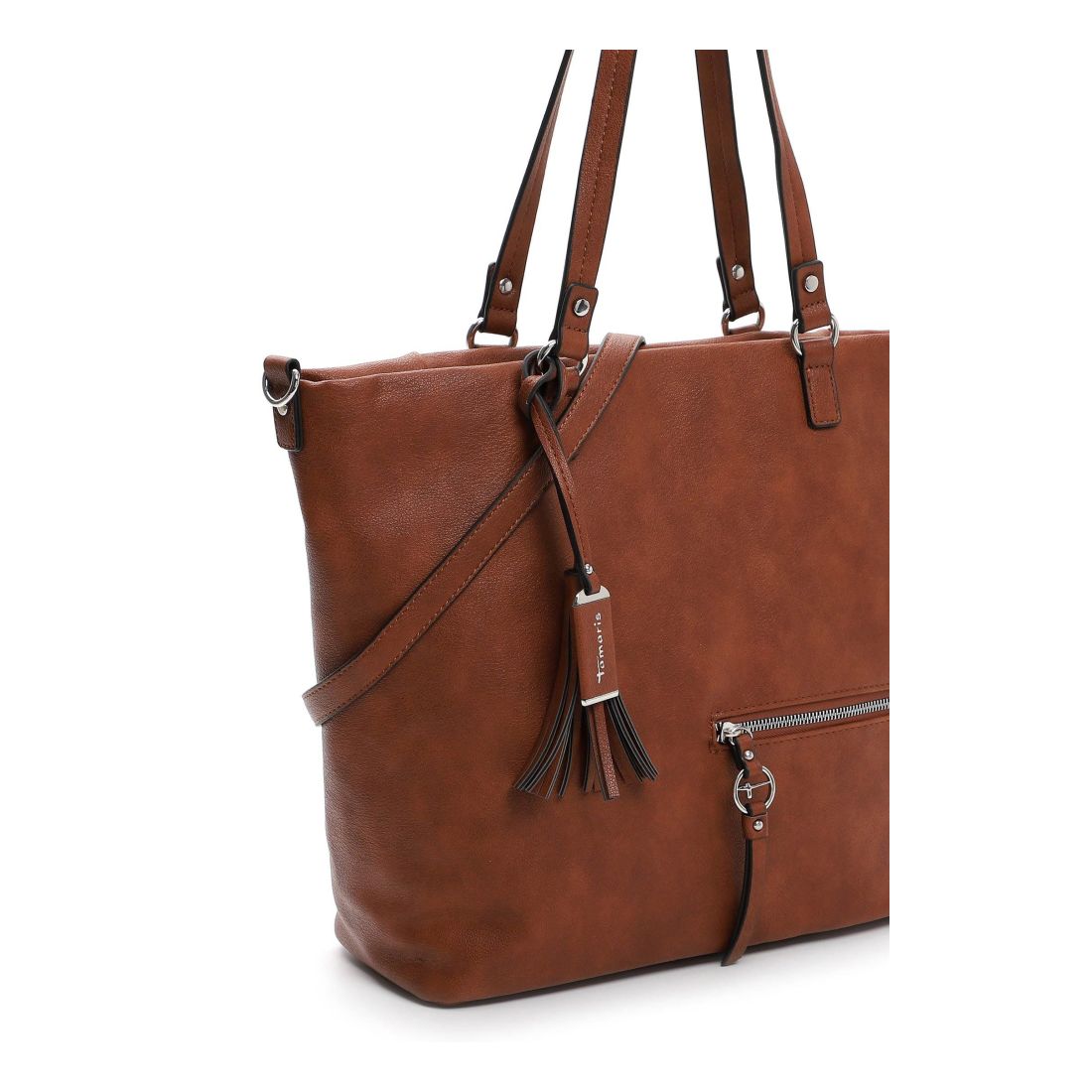 Krásná pevná kabelka, co se vždy hodí, to je tato kabelka Tamaris se stříbrnými doplňky. Zaujme na první pohled tvarem, stříbrným zipem a přívěskem. Kabelku můžete nosit v ruce nebo přes rameno. Má dvě držadla a odepínací dlouhý popruh. Velká prostorná hlavní přihrádka nabízí spoustu úložného prostoru. Další kapsička je na zadní vnější straně kabelky. Tato kabelka bude vždy krásným doplňkem každého outfitu.