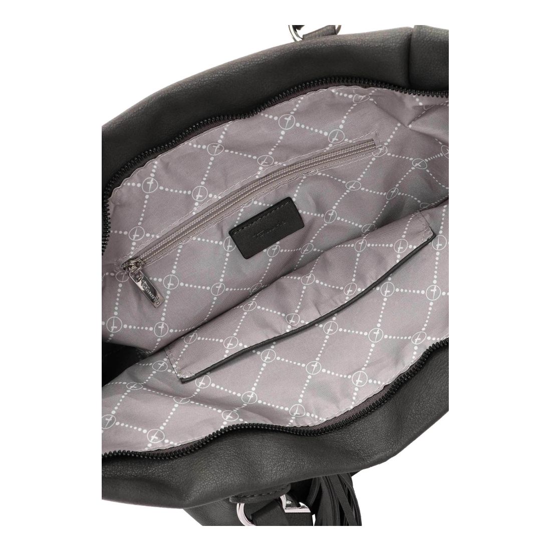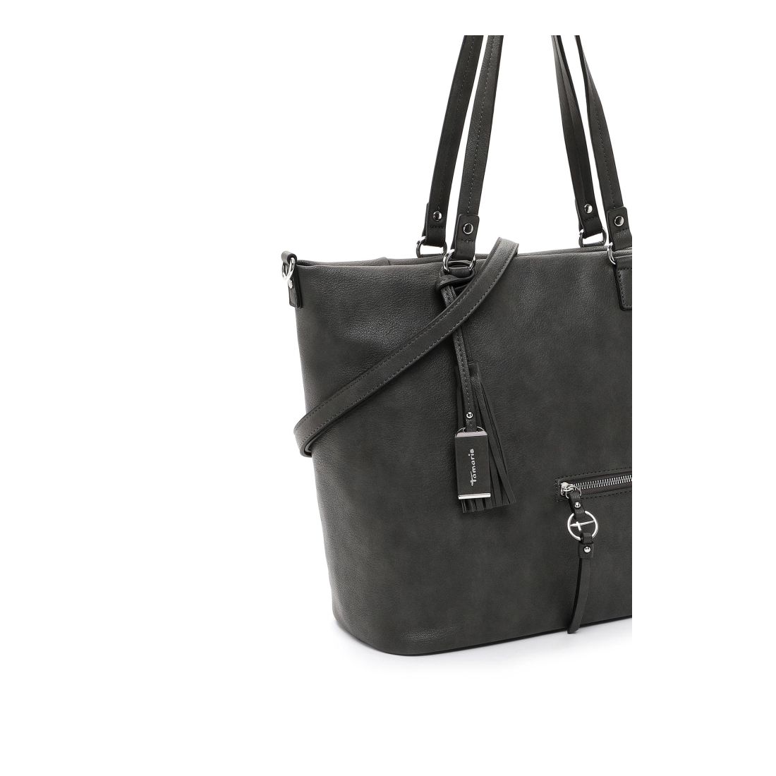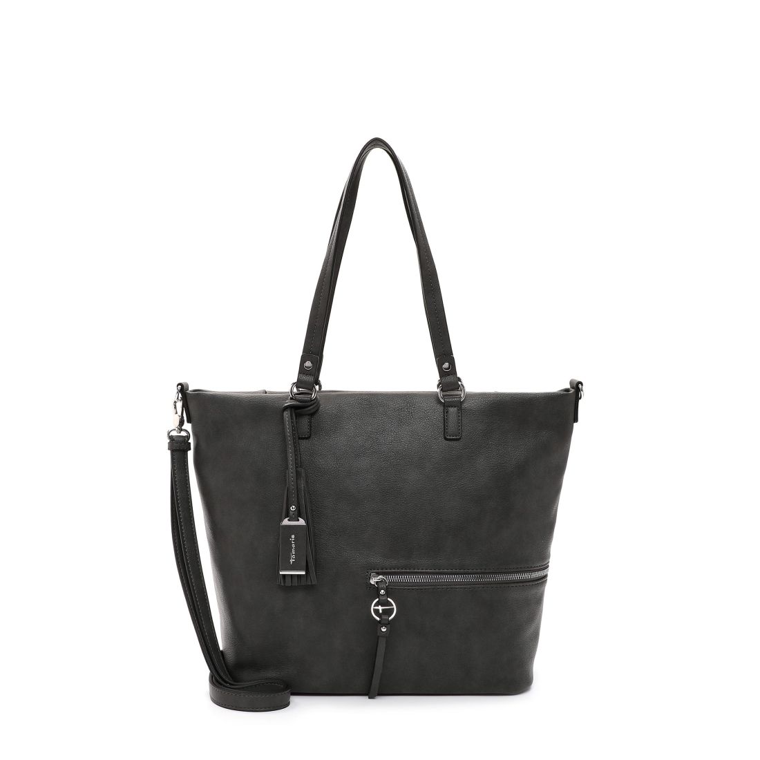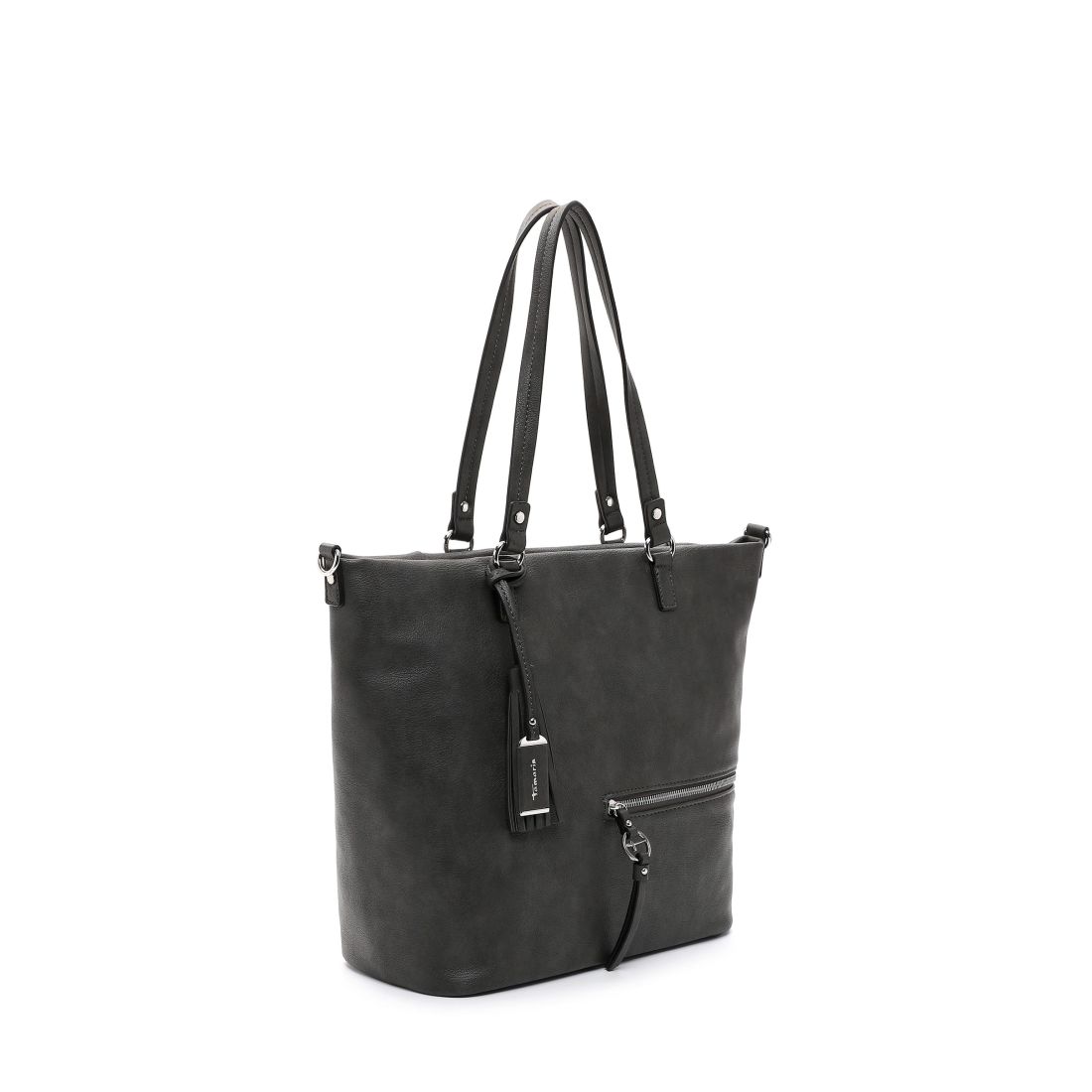 Krásná pevná kabelka, co se vždy hodí, to je tato kabelka Tamaris se stříbrnými doplňky. Zaujme na první pohled tvarem, stříbrným zipem a přívěskem. Kabelku můžete nosit v ruce nebo přes rameno. Má dvě držadla a odepínací dlouhý popruh. Velká prostorná hlavní přihrádka nabízí spoustu úložného prostoru. Další kapsička je na zadní vnější straně kabelky. Tato kabelka bude vždy krásným doplňkem každého outfitu.