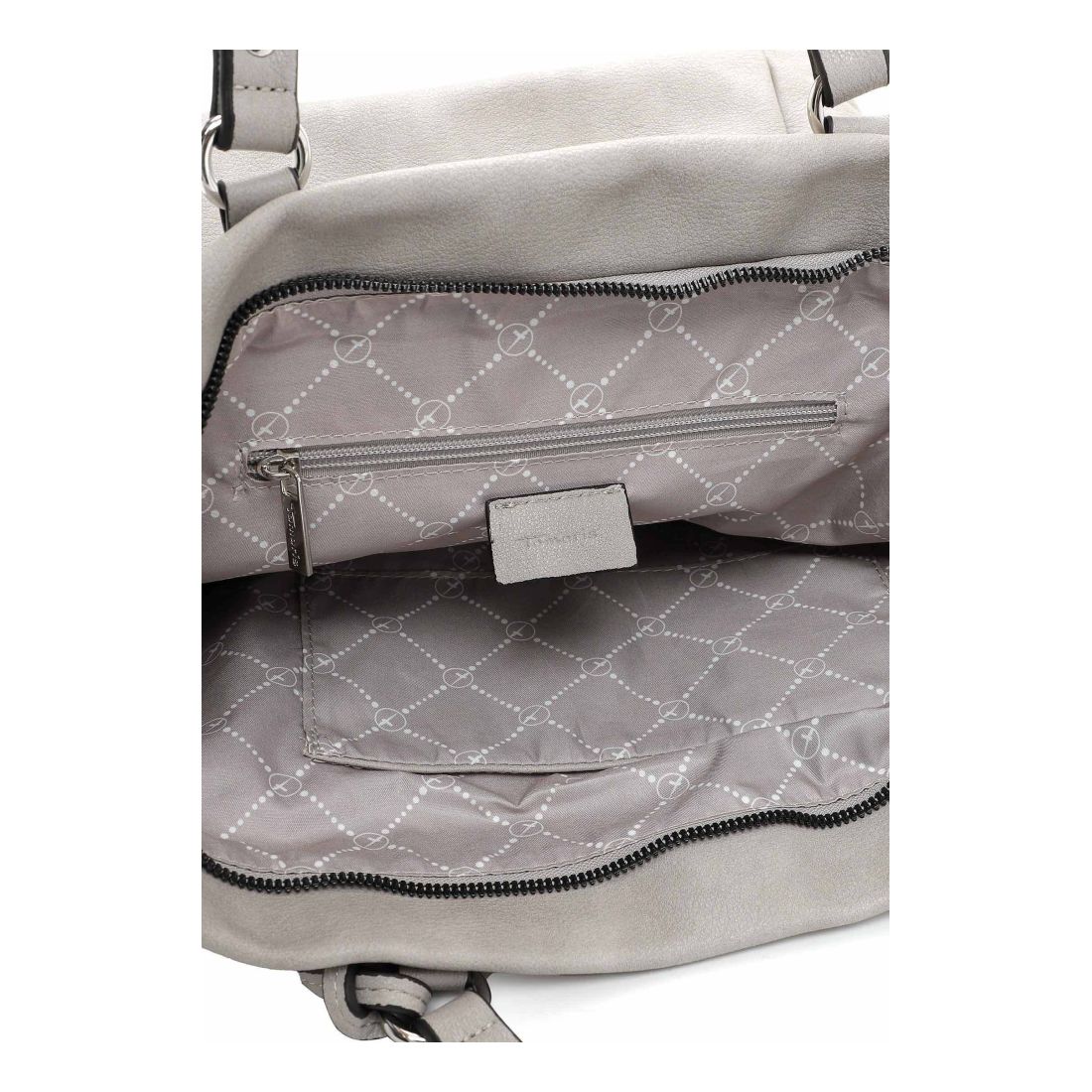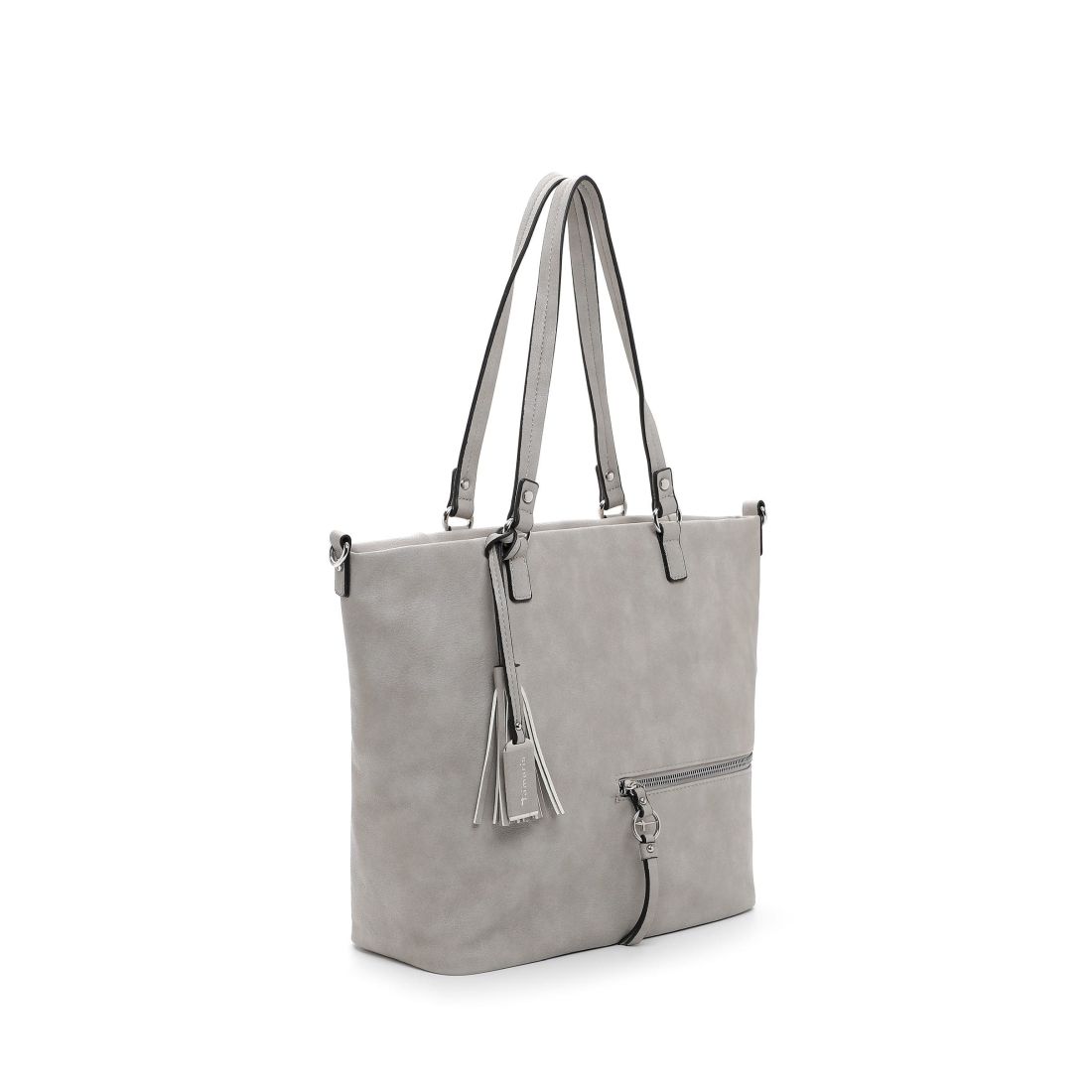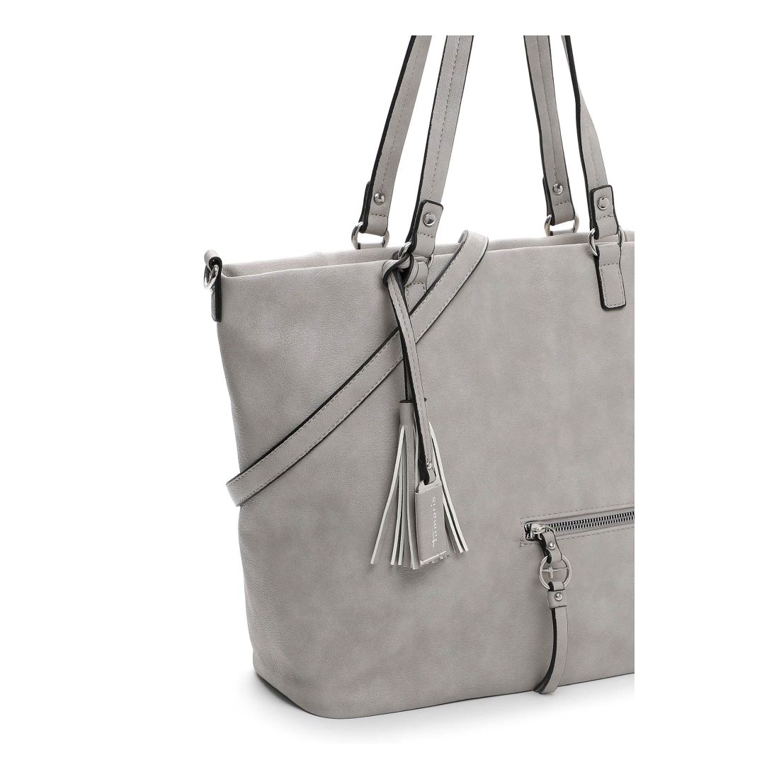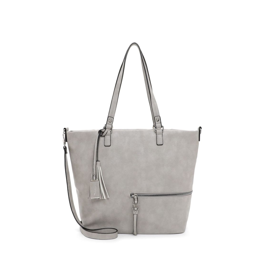 Krásná pevná kabelka, co se vždy hodí, to je tato kabelka Tamaris se stříbrnými doplňky. Zaujme na první pohled tvarem, stříbrným zipem a přívěskem. Kabelku můžete nosit v ruce nebo přes rameno. Má dvě držadla a odepínací dlouhý popruh. Velká prostorná hlavní přihrádka nabízí spoustu úložného prostoru. Další kapsička je na zadní vnější straně kabelky. Tato kabelka bude vždy krásným doplňkem každého outfitu.