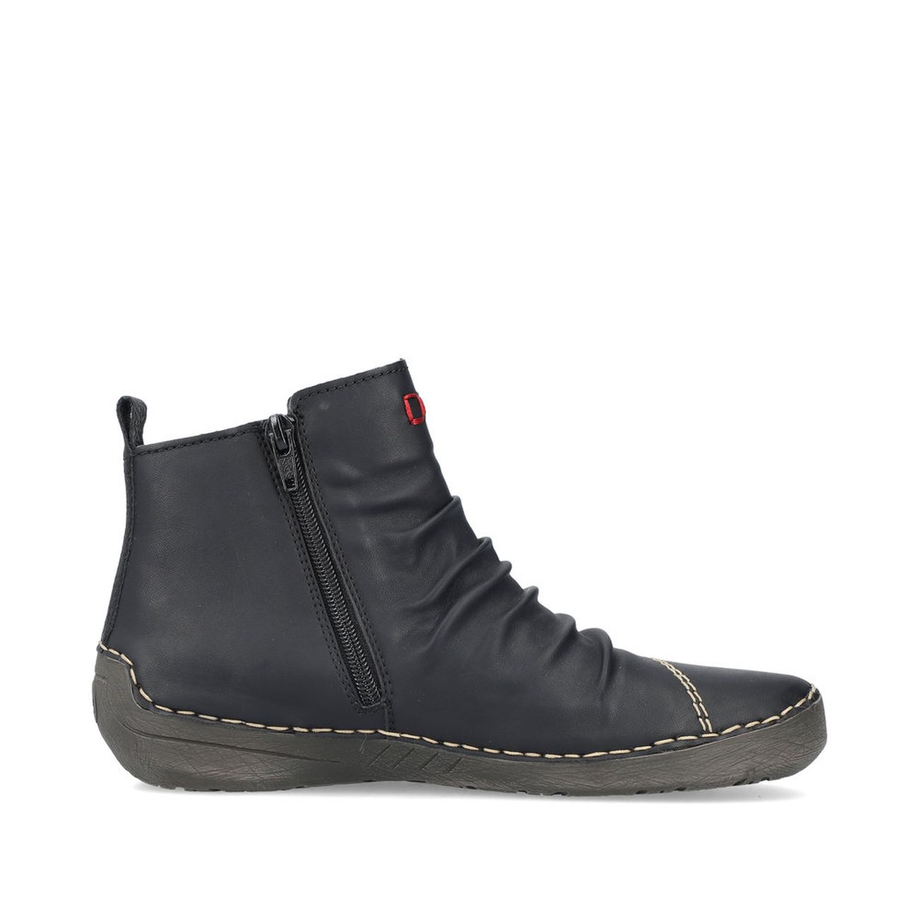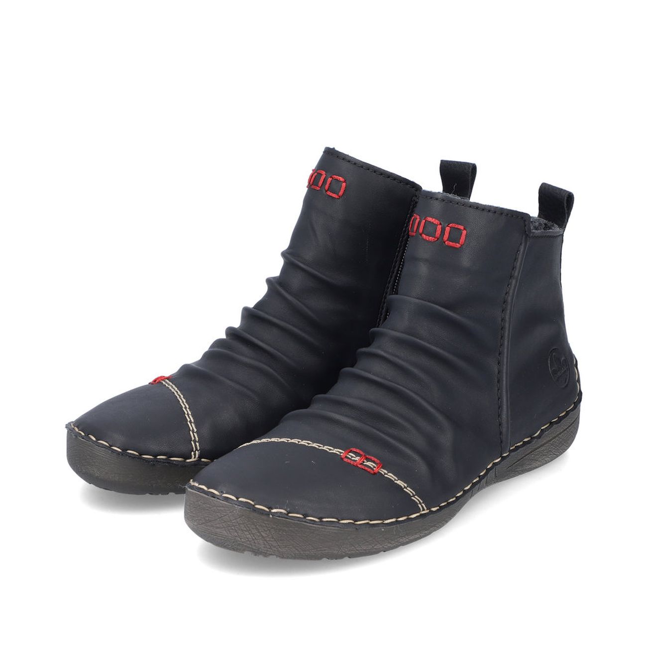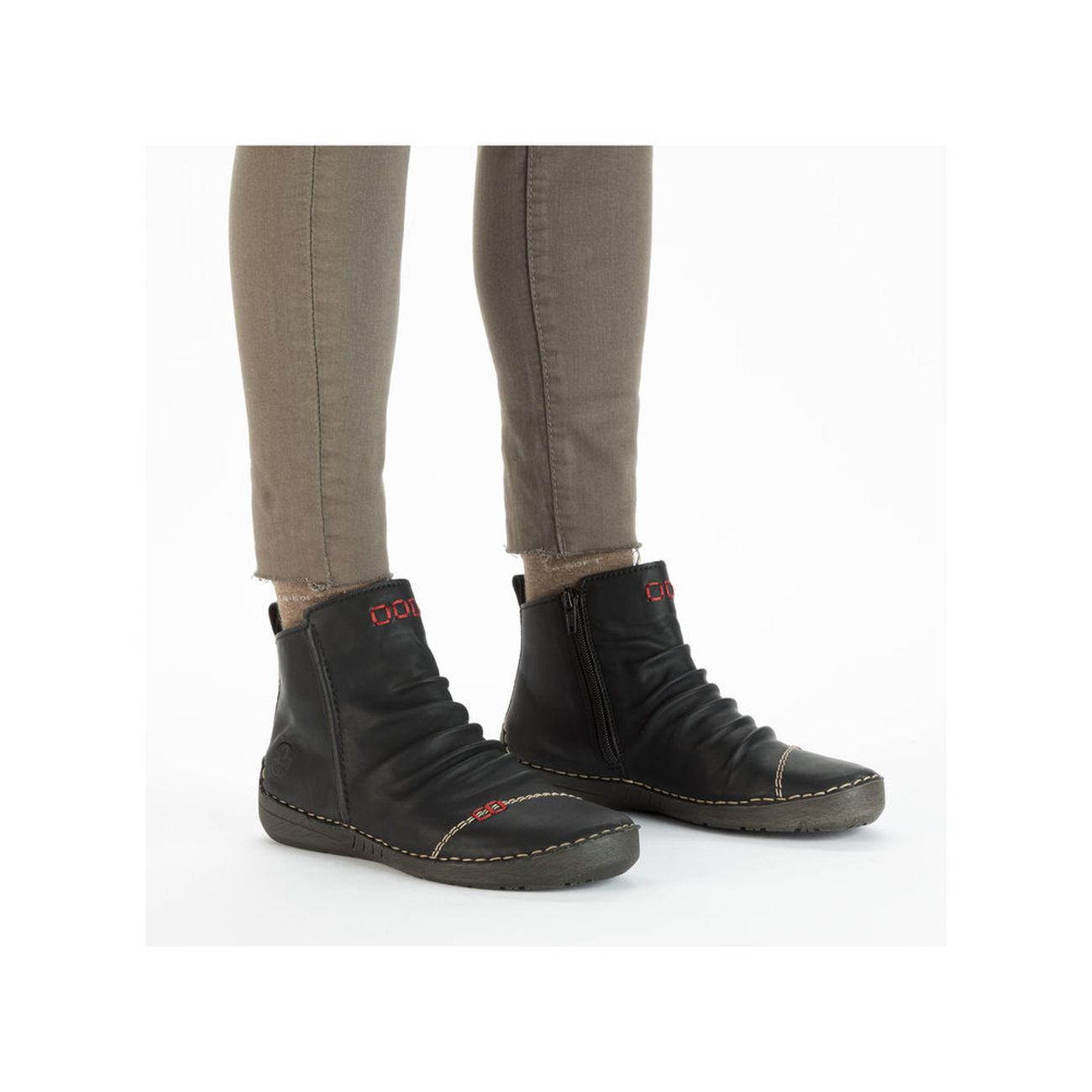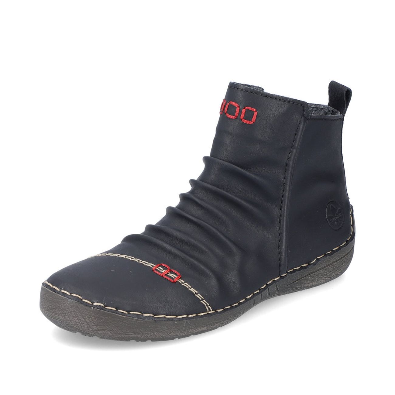 Našli jsme pro Vás kotníkovou obuv Rieker, která se hodí pro chladnější dny. Jemné prošívání a nařasení jsou dominantou tohoto modelu. Pomocí zipu, na vnitřní straně, se snadno obujete. Jemná podšívka Vás zahřeje a měkká stélka a flexibilní podešev Vám dopřejí pohodlí po celý čas nošení. Užijte si chůzi v těchto pohodlných botách, ať už vyrazíte kamkoliv. Technologie: Antistress - podešev je díky této technologii lehká, flexibilní, absorbuje nárazy při došlapu a snadno se přizpůsobí každé noze. Výrobní způsob - šitá obuv.