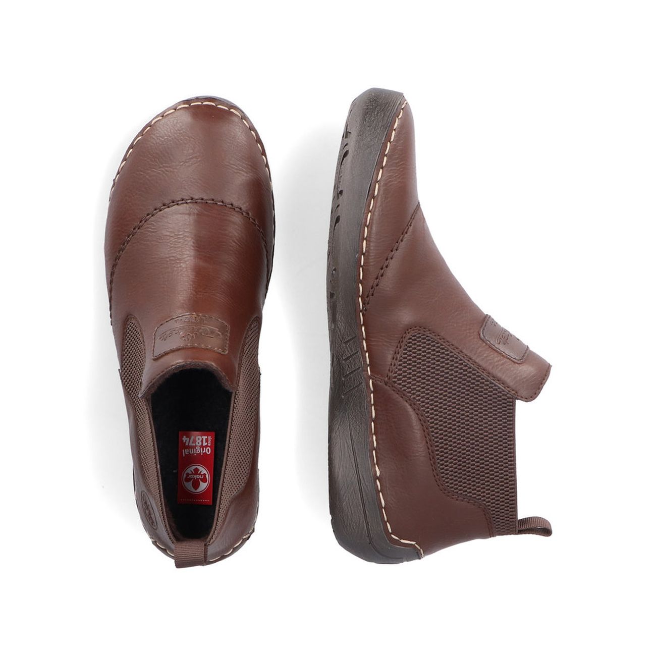 Dámská obuv Rieker je vždy skvělá volba. Tyto boty můžete nosit na podzim i v zimě. Hladký povrch je jemně prošit ve špici a kolem podešve. Nechybí ani logo značky. Vsazené pružinky slouží ke snadnému obutí. Pohodlí po celý den Vám dodá pohodlná stélka a flexibilní podešev. K sukni nebo kalhotám se budou vždy hodit. Technologie: Antistress - podešev je díky této technologii lehká, flexibilní, absorbuje nárazy při došlapu a snadno se přizpůsobí každé noze. Výrobní způsob - šitá obuv.