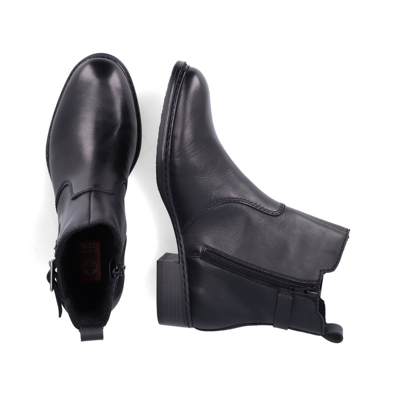 Elegantní obuv značky Rieker Vás oslní. Tento model je vyrobený z kůže a má praktické obouvání pomocí zipu. Tato obuv je zdobena pružinkou, na které je jemný pásek s přeskou a na patě je zdobený materiál s logem, celkový vzhled dotváří úzká podešev. Flexibilní podešev Vám zaručí pohodlí na každém kroku. S těmito botami uděláte spoustu parády, ať už si vezmete elegantní oblečení nebo rifle a koženou bundu. Technologie: Antistress - podešev je díky této technologii lehká, flexibilní, absorbuje nárazy při došlapu a snadno se přizpůsobí každé noze.