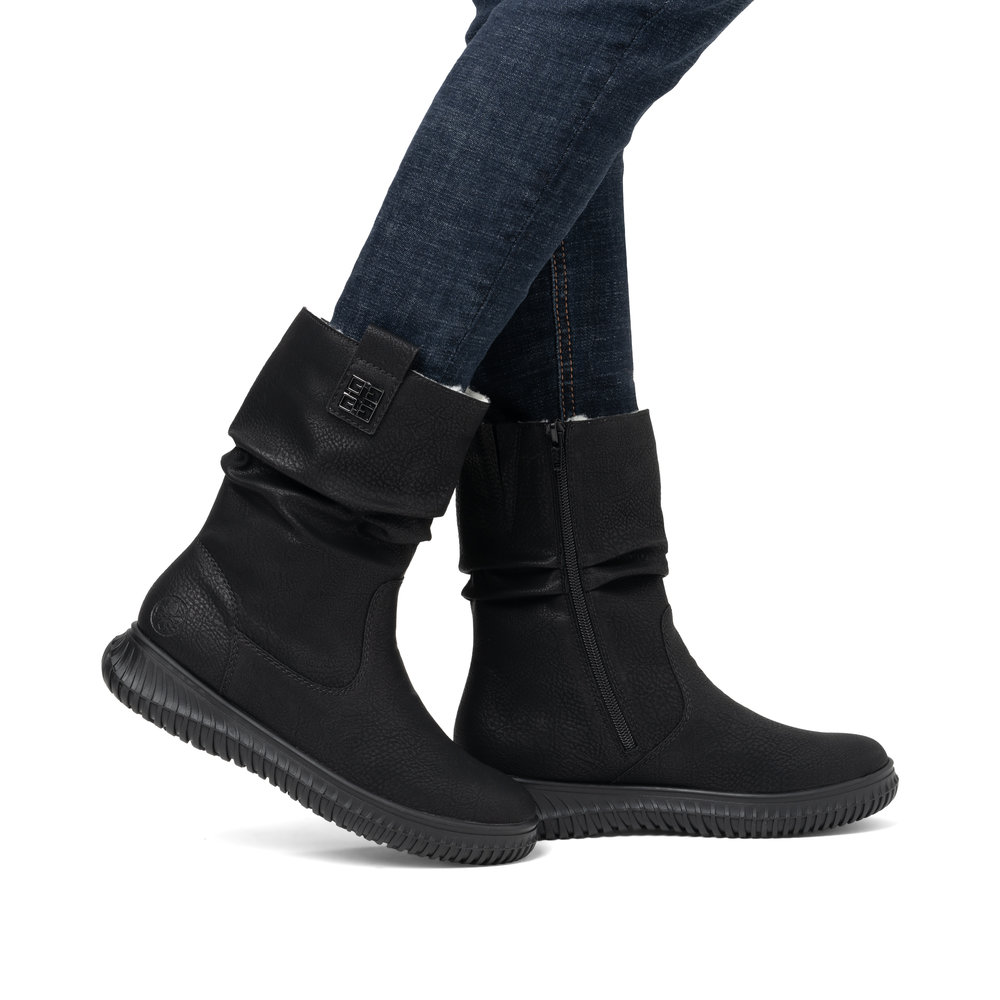 Detailní informace Krásné zimní, vyšší kotníkové boty, které si rychle zamilujete. Zajímavým prvkem, který zaujme na první pohled je jemné nařasení svršku. Obuv Rieker je u zákazníků oblíbená především pro své pohodlí, které mimo jiné zajišťuje pohodlná, lehká a flexibilní podešev. Svrchní materiál je z kvalitní syntetiky. Snadné obouvání díky zipu na vnitřní straně obuvi. Obuv můžete kombinovat, jak se sukní, tak i s kalhotami nebo legínami a věřte, že Vám v nich bude vždy teploučko díky hezky zateplené podšívce.