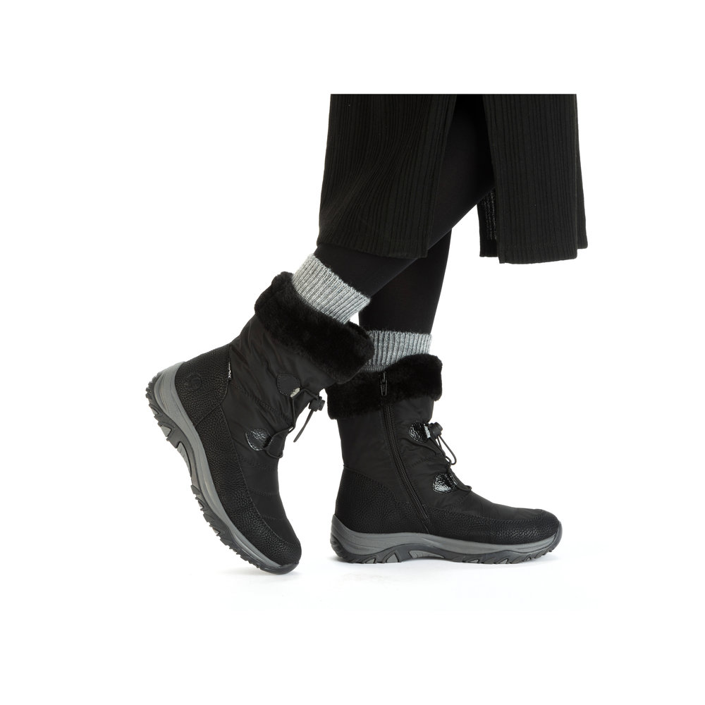 Krásné dámské zimní sněhule Rieker, se kterými si budete užívat zimní radovánky bez obav. Texová membrána zajistí nepromokavost obuvi. Díky funkčnímu zipu a gumičkám s olivkou si obuv snadno obujete a přizpůsobíte svým potřebám. Oceníte měkkou tvarovanou stélku. Krásná kožešinka, lesklé prvky a polstrovaný kotníkový lem doladí tento model k dokonalosti. Technologie: Antistress - podešev je díky této technologii lehká, flexibilní, absorbuje nárazy při došlapu a snadno se přizpůsobí každé noze. RiekerTEX - obuv s tímto označením je prodyšná, ale zároveň odolná vůči vodě. Je to díky zvolenému výrobnímu procesu, kdy mezi svrchní díl a podšívku je vložena goretexová membrána. Díky tomu má obuv optimální ochranu proti vlhkosti a výbornou ochranu proti chladu. Výrobní způsob - lepená obuv.