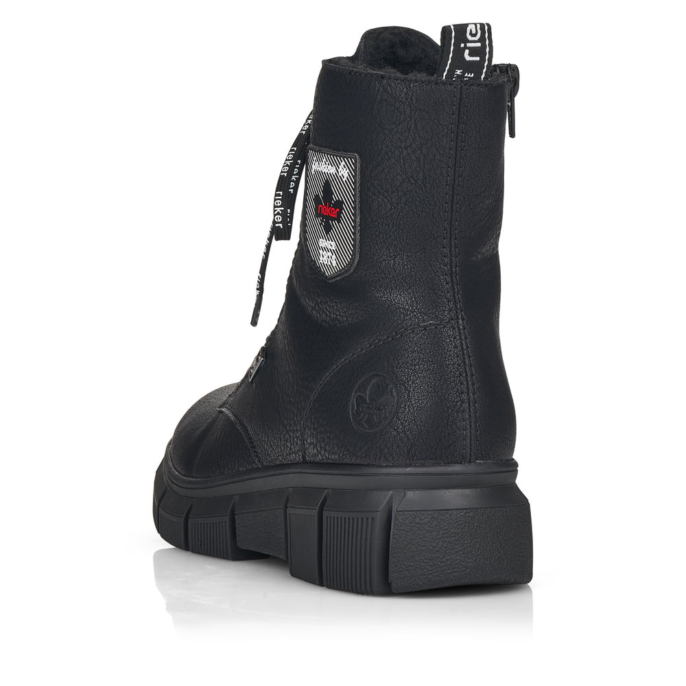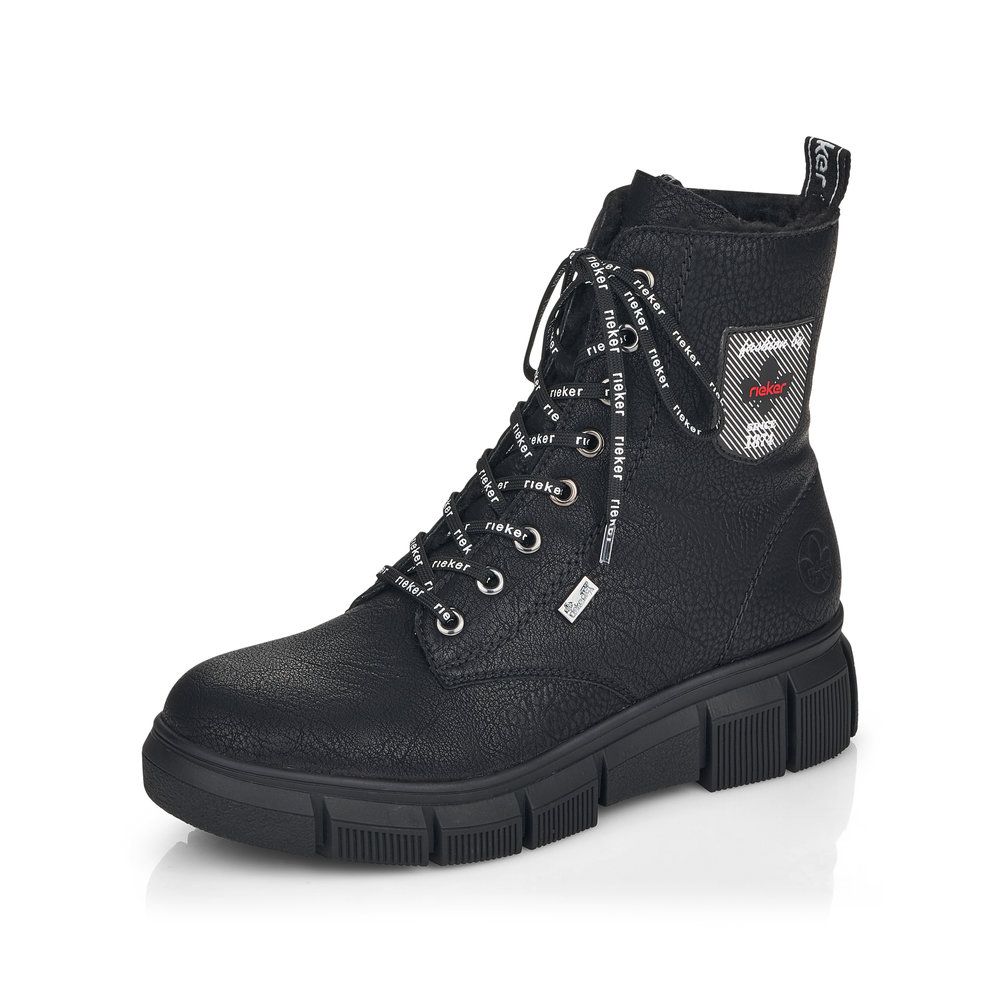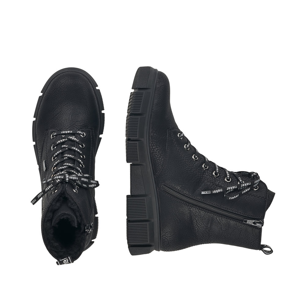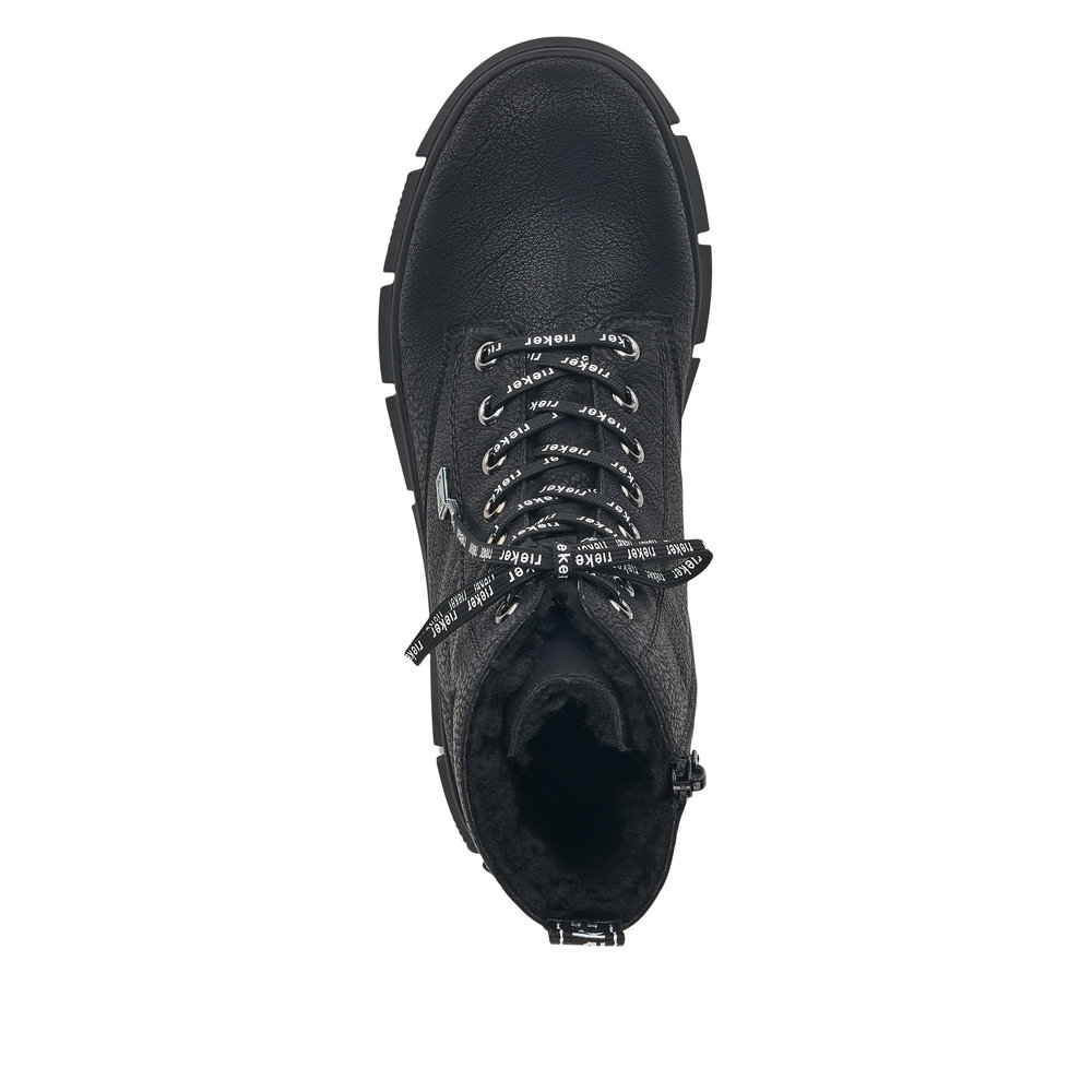 Originální vzhled, který je umocněn tkaničkami s nápisem Rieker a nášivkou s logem na vnější straně. Díky zipu z vnitřní strany se Vám budou boty snadno obouvat. Uvnitř najdete zateplenou podšívku, která Vás bude hřát v chladných zimních dnech. Boty mají "texovou" membránu (RiekerTex), která zabrání pronikání vlhkosti do obuvi. Nemusíte se bát protečení obuvi v případě nepříznivého počasí. O maximální komfort se Vám postará měkká stélka a kvalitní podešev s technologií Antistress.