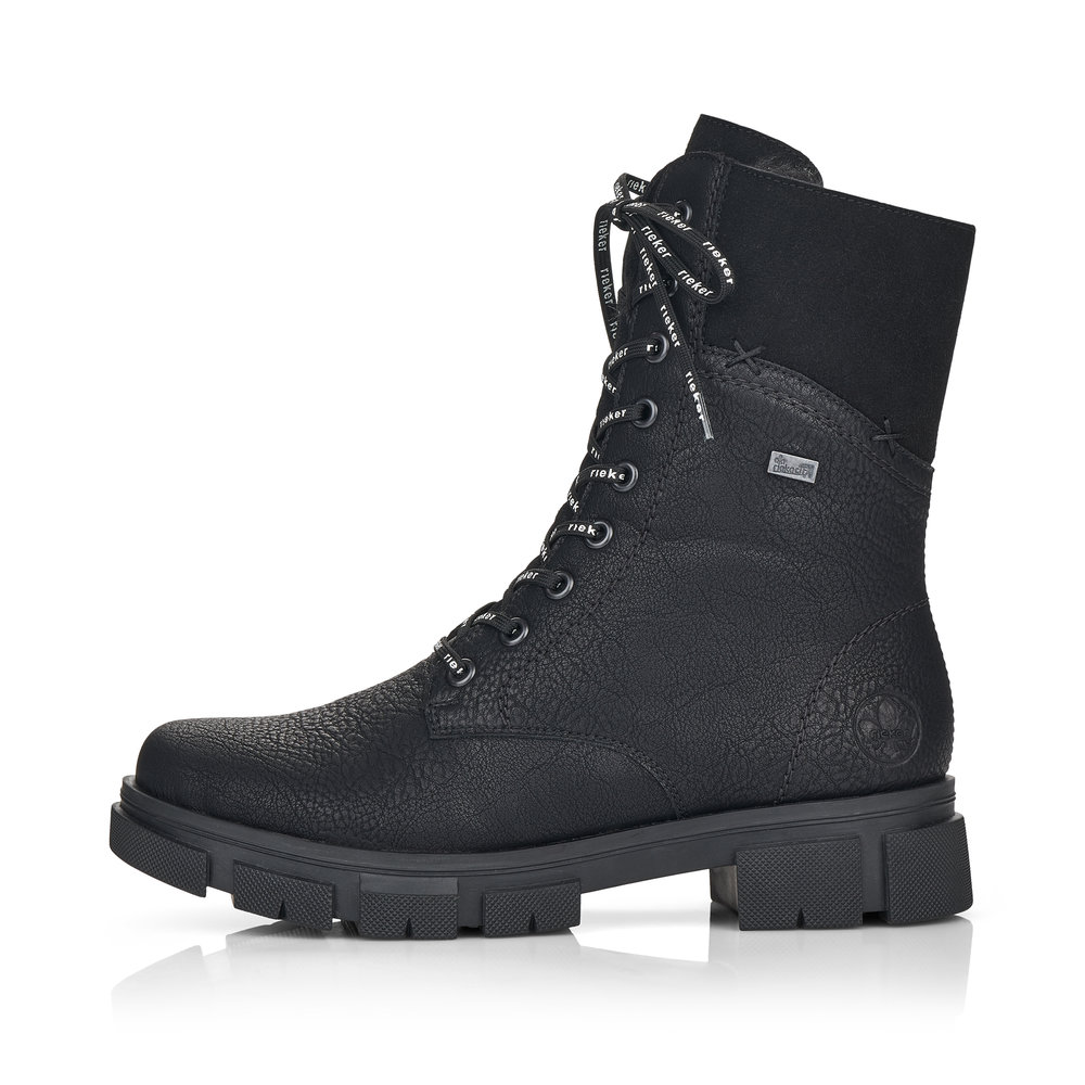Vyšší kotníková obuv Rieker pro ženy, které mají rády sportovní styl. Tento model má hrubou širší podešev a zateplenou podšívku, takže nic už Vám nebrání se vydat do zimních dní. Pomocí zipu si obuv lehce obujete a pomocí tkaniček si přizpůsobíte svým potřebám. Flexibilní podešev se přizpůsobí každému kroku a funkční vrstva RiekerTex Vám zajistí, že obuv bude suchá a vzdušná. Technologie: Antistress - podešev je díky této technologii lehká, flexibilní, absorbuje nárazy při došlapu a snadno se přizpůsobí každé noze. Antistress - podešev je díky této technologii lehká, flexibilní, absorbuje nárazy při došlapu a snadno se přizpůsobí každé noze. Výrobní způsob obuvi - lepená obuv.