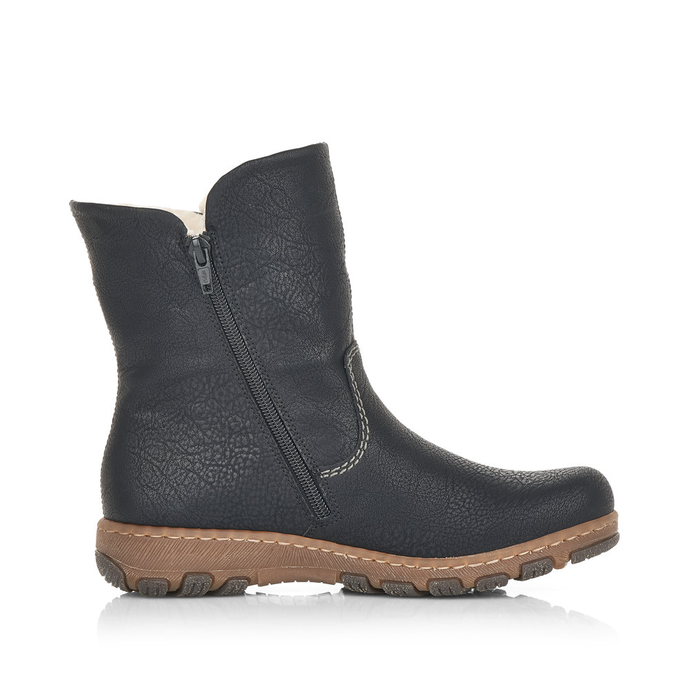 Detailní informace Tyto pohodlné, dámské, kotníkové boty od značky Rieker, v černé barvě, musíte mít. Svrchní materiál je elegantně prošívaný světlou nití. Maximální komfort Vám zajistí gumičky z venkovní strany, které se ideálně přizpůsobí Vaší noze. Díky zipu z vnitřní strany se Vám budou boty snadno obouvat. V chladných zimních dnech Vás zahřeje teplá podšívka z pravé ovčí vlny a pohodlí na každém kroku budete mít díky pohodlné stélce a kvalitní podešvi s technologií Antistress.
