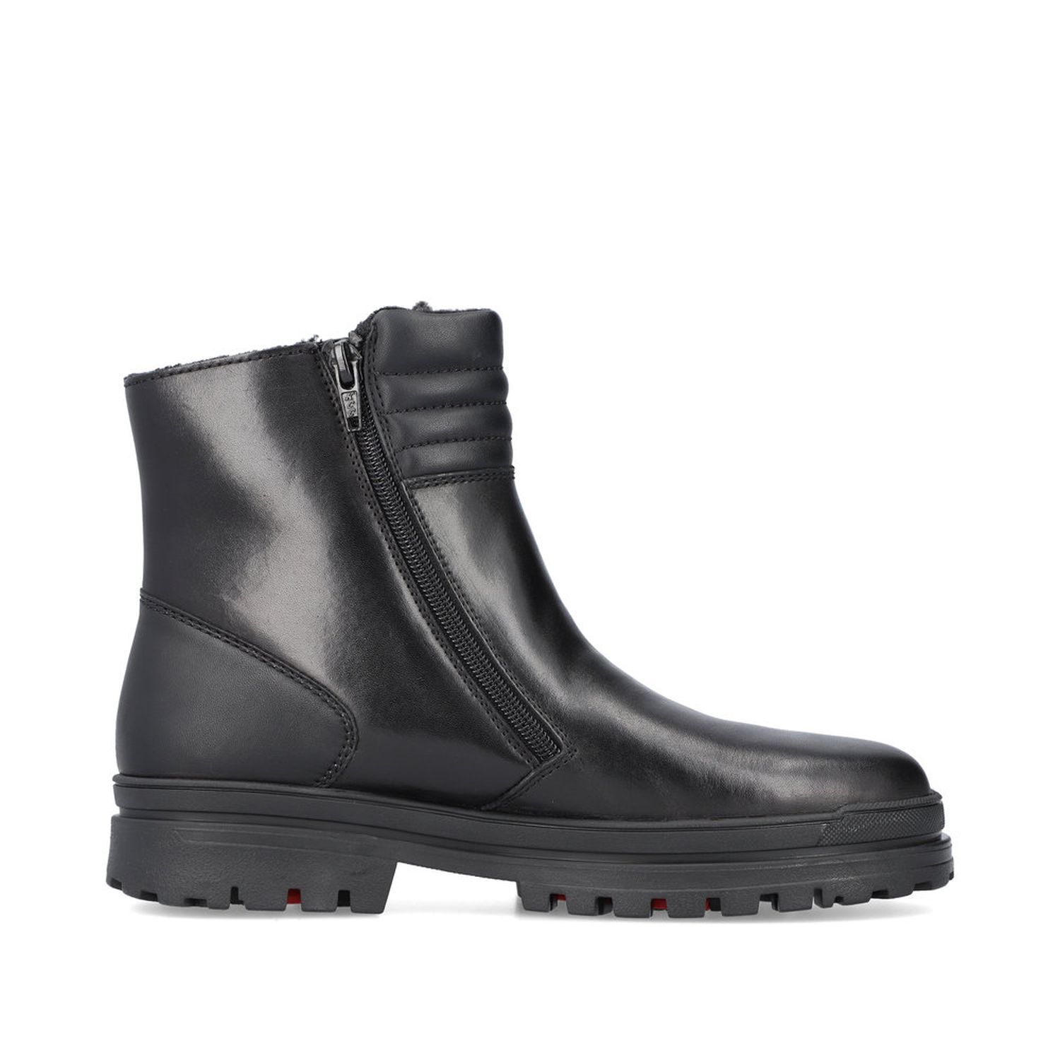 Detailní informace Moderní dámská kotníková obuv značky Rieker v černé barvě, která je ozdobena zipem a prošívaným lemem. Díky technologiím Rieker Grip - dvoupolohový bezpečností systém s hroty pro chůzi na kluzkém povrchu a náledí a RiekerTEX - obuv je nepromokavá a přesto vzdušná, můžete vyrazit do zasněženého města nebo na procházku. Oceníte vyjímatelnou stélku a flexibilní podešev, které se postarají o pohodlí po celou dobu chůže. Praktičnost a funkčnost je to, co si můžete dopřát.