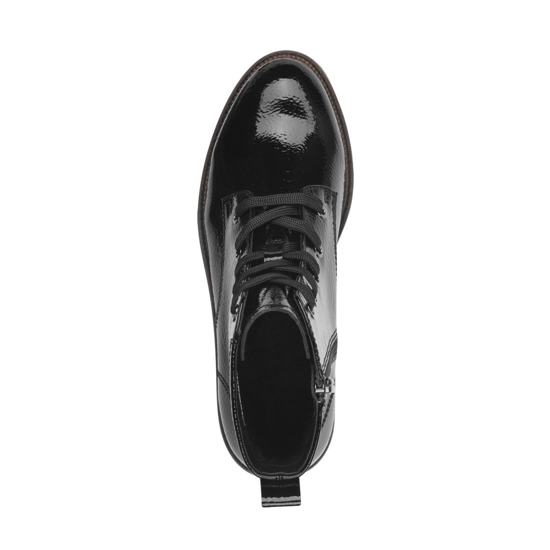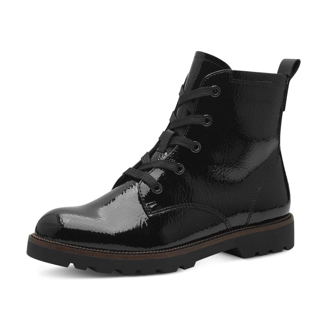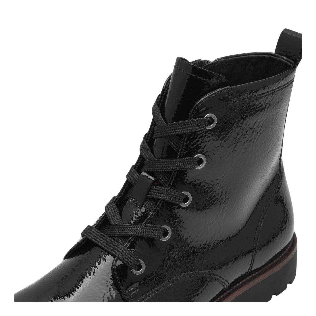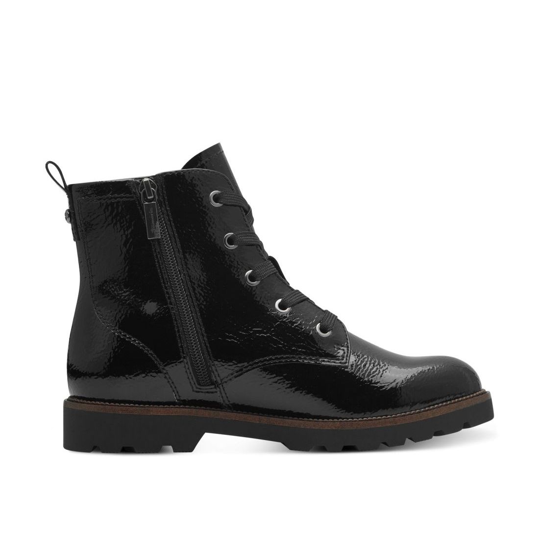 Dámské, kotníkové, šněrovací boty od značky Tamaris v černé barvě, Vás osloví. Jsou jemně prošívané a doladěné hrubou podešví se vzorkem a širokým podpatkem pro stabilní chůzi a pohodlí. Jejich lesklý povrch dodají obuvi ten správný šmrnc. Díky zipu na vnitřní straně obuvi si obuv rychle obujete a pomocí tkaniček upravíte dle svých potřeb. Měkká vyjímatelná stélka se perfektně přizpůsobí tvaru Vašeho chodidla. Jemný proužek kolem podešvě podtrhne celkový vzhled této obuvi. Podívejte se i na další barevnou kombinaci, kterou nabízíme na našem e-shopu (platí do vyprodání zásob). Technologie: Touch-it - měkká stélka, která se dokonale přizpůsobí tvaru nohy, a díky tomu při nošení zajišťuje optimální pohodlí.