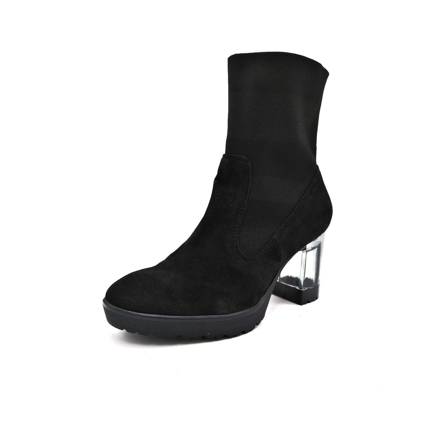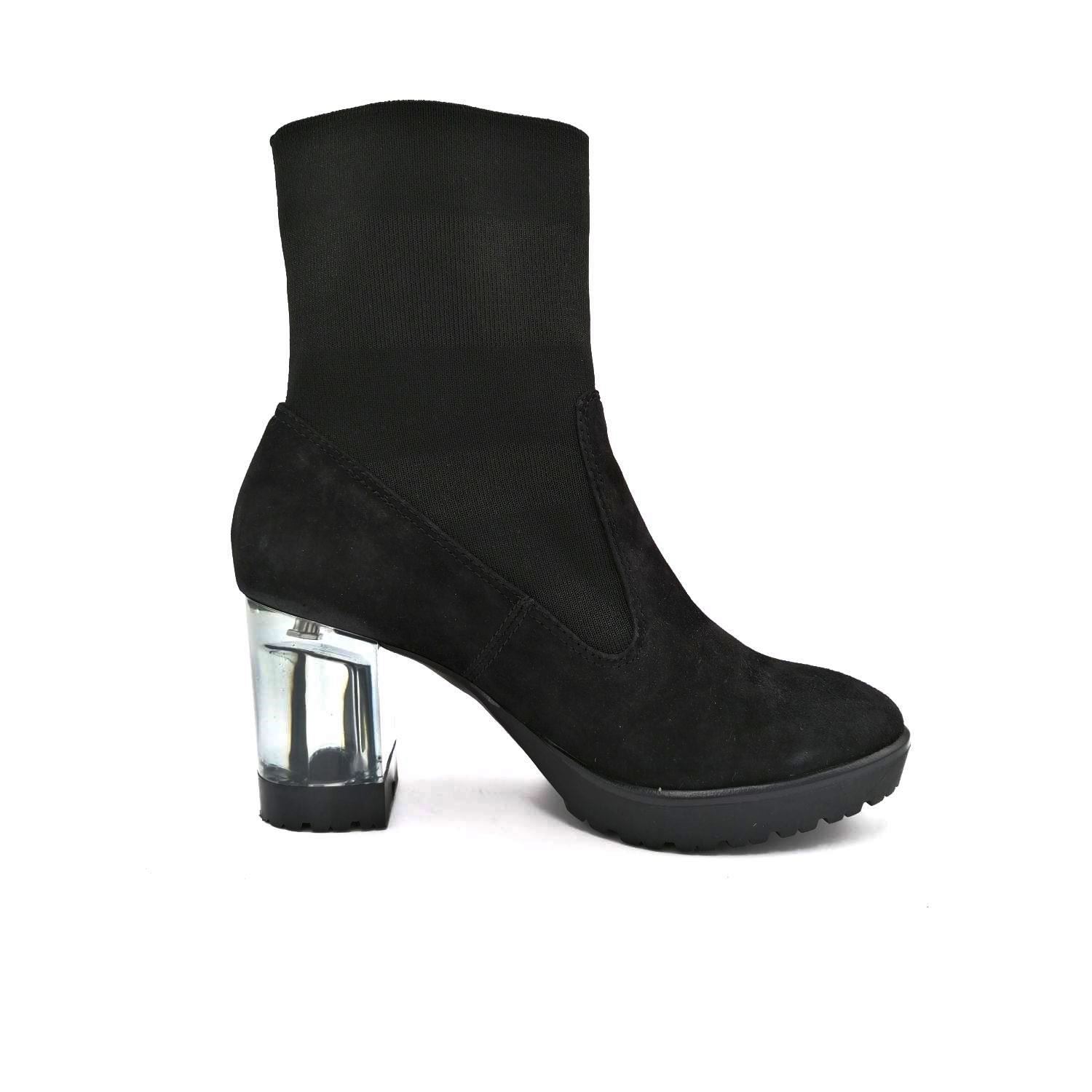 Nádherná dámská kotníková obuv Tamaris v černé barvě s průhledným podpatekm. Jde o velmi elegantní model, který doplní každý outfit k dokonalosti. Svršek je z přírodní kůže. Pružný stretchový úplet Vám usnadní nazouvání a zároveň hezky přilne k Vaší noze. Pohodlí Vám zajistí měkká Touch it stélka z paměťové pěny. Celková výška boty je cca. 22,7 cm. Technologie: Touch it - měkká stélka z paměťové pěny, s pohodlnou funkcí "Touch it" neustále reaguje na tlak a přizpůsobuje se tvaru chodidla.