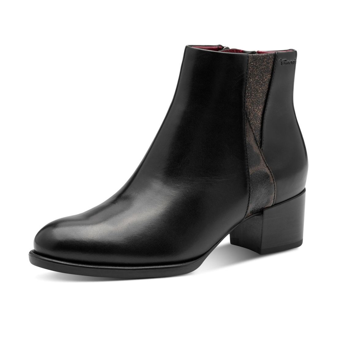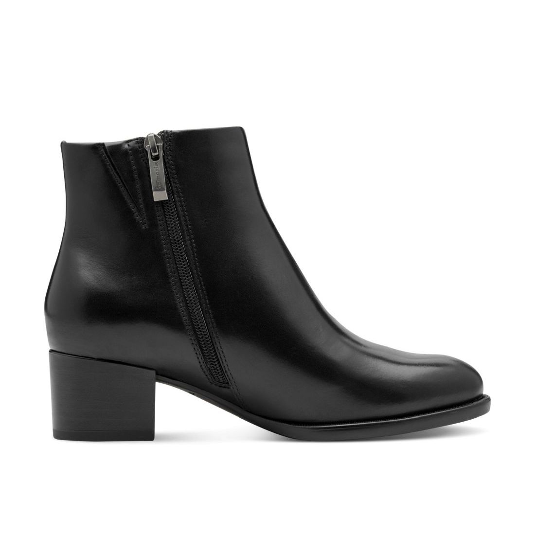 Nepřehlédnutelné dámské kotníkové boty Tamaris černé barvy, zaujmou na první pohled. Jsou v hladkém provedení, doladěny aplikací na vnější straně obuvi. Praktické obouvání pomocí zipu oceníte. Měkká stélka z paměťové pěny se přizpůsobí tvaru chodidla. Pohodlný podpatek a podešev s protiskluznou technologii Vám dodá pocit jistoty při chůzi. Tyto boty jsou vhodné pro každodenní nošení nebo na slavnostní příležitost. Tento model nabízíme i v další barevné variantě (platí do vyprodání zásob). Technologie: AntiSlide - zajišťuje skvělou přilnavost podpatku k povrchu. Touch-it - měkká stélka, která se dokonale přizpůsobí tvaru nohy, a díky tomu při nošení zajišťuje optimální pohodlí.