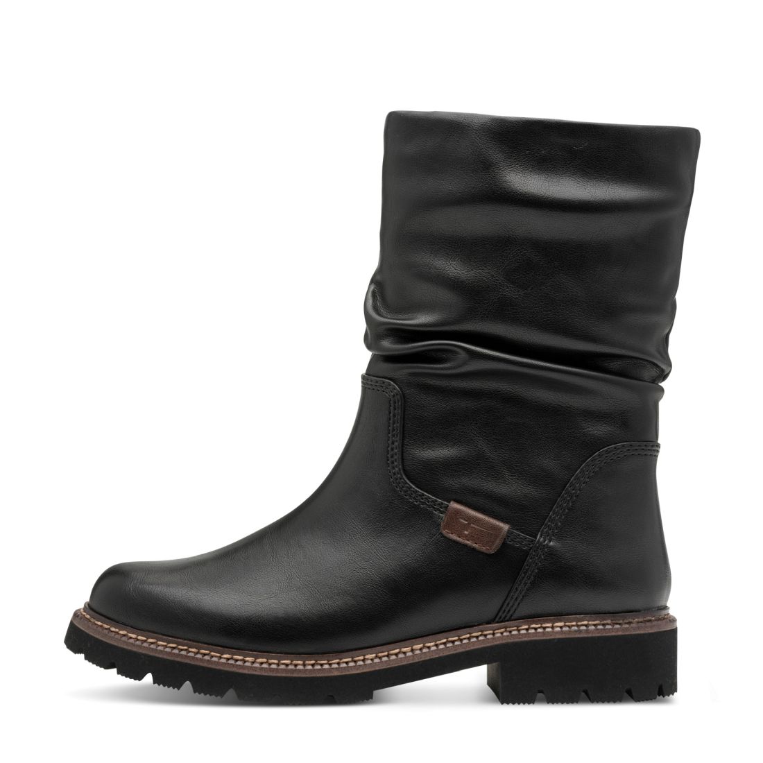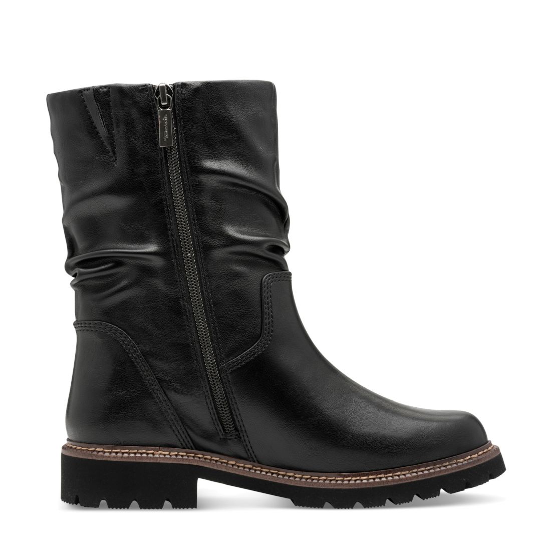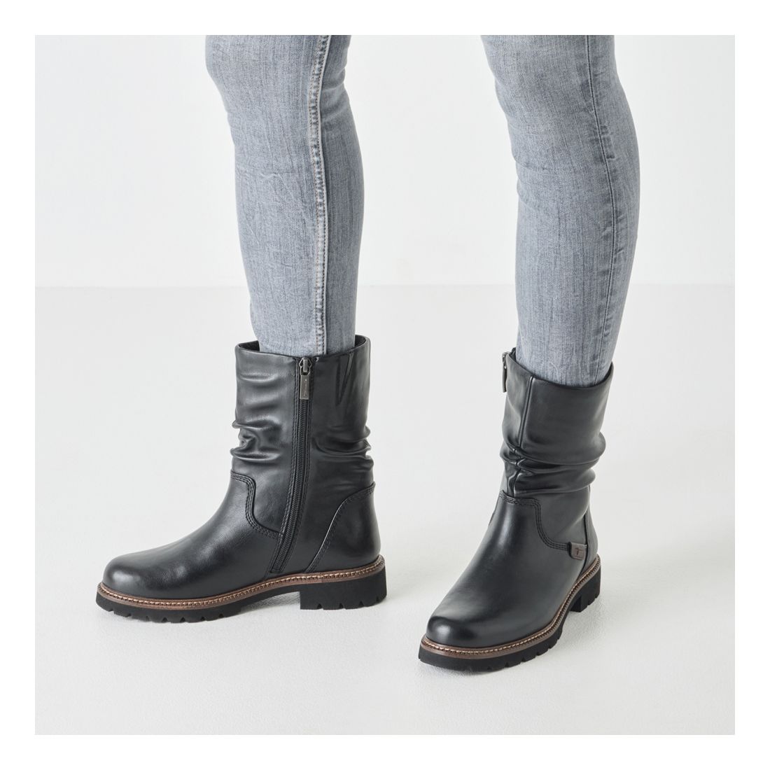Detailní informace Tyto nadčasové dámské kotníkové boty Tamaris v černé barvě, jsou skvělou volbou pro chladné dny. Zaujmou nařasením a jemným prošitím kolem podešve. Obujete se snadno a rychle díky zipu na vnitřní straně obuvi. Příjemná podšívka Vám dodá pocit pohodlí a měkká stélka se přizpůsobí tvaru Vašeho chodidla. Široký podpatek a podešev se vzorem Vám zajistí jistý krok i v nepříznivém počasí.