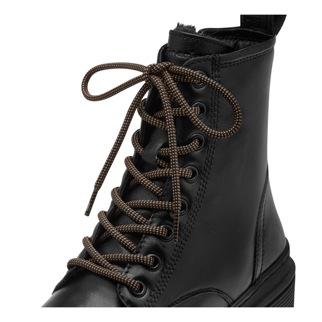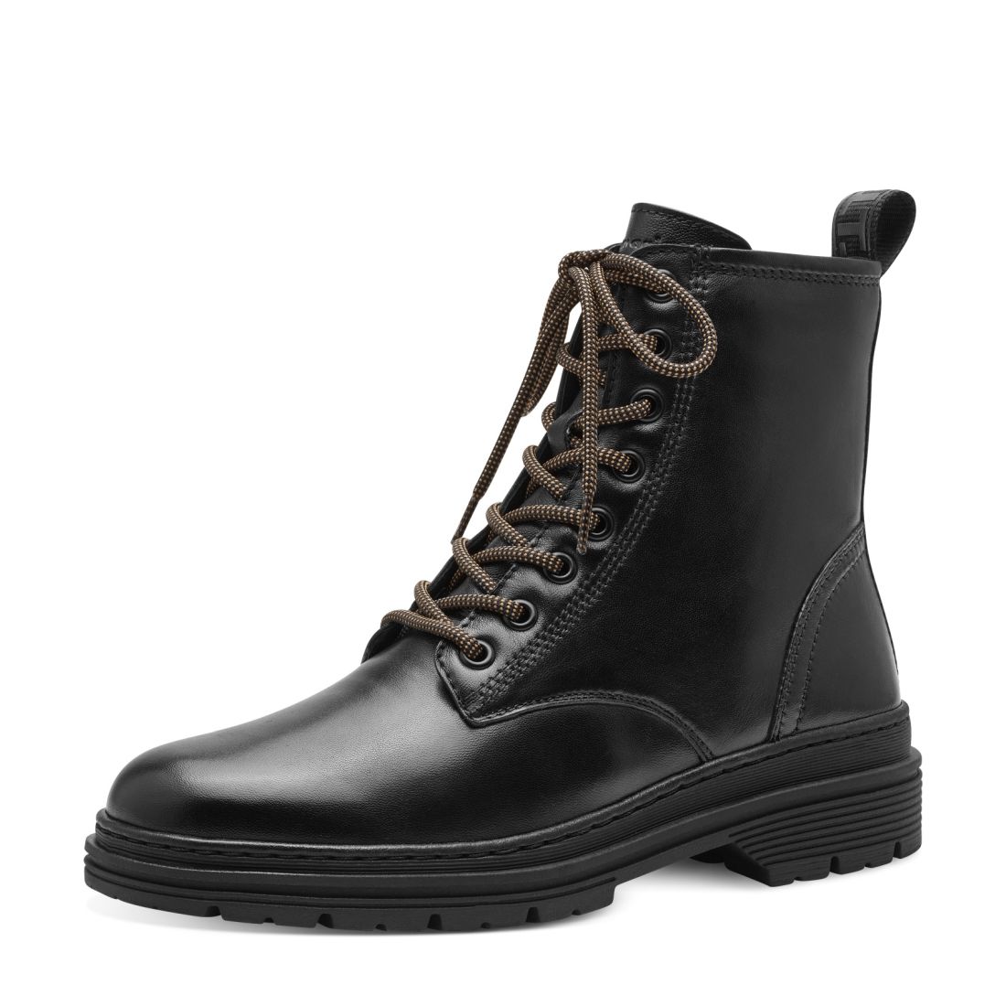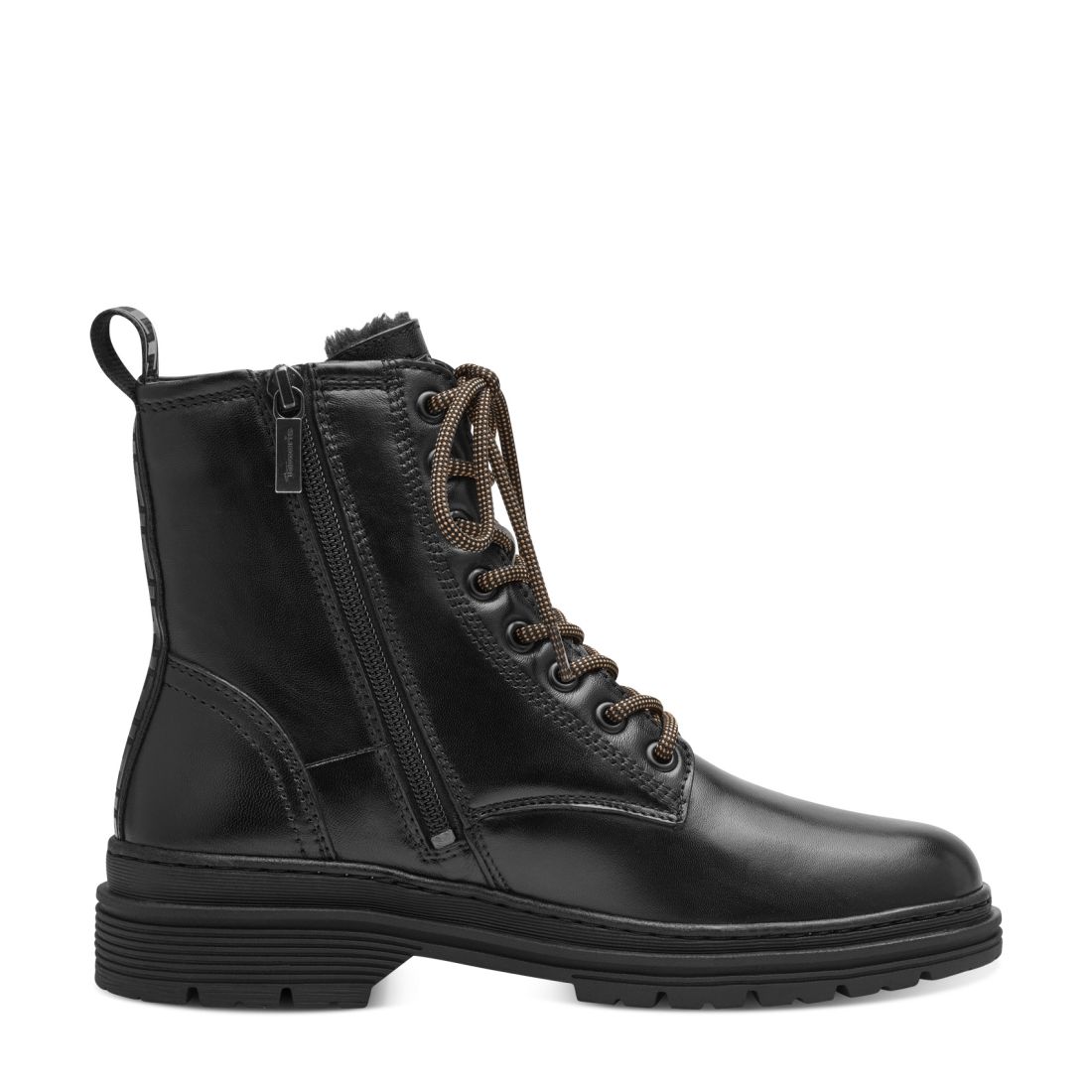 Dámské kotníkové boty Tamaris v černé barvě se vzorovanými tkaničkami. Funkční zip, na vnitřní straně obuvi, Vám zajistí pohodlné obouvání. Teplá podšívka Vás zahřeje v chladných dnech. Podešev s protiskluzovým vzorkem Vám dodá pocit bezpečí na každém kroku. Do školy, práce nebo ve volném čas je budete ráda nosit.