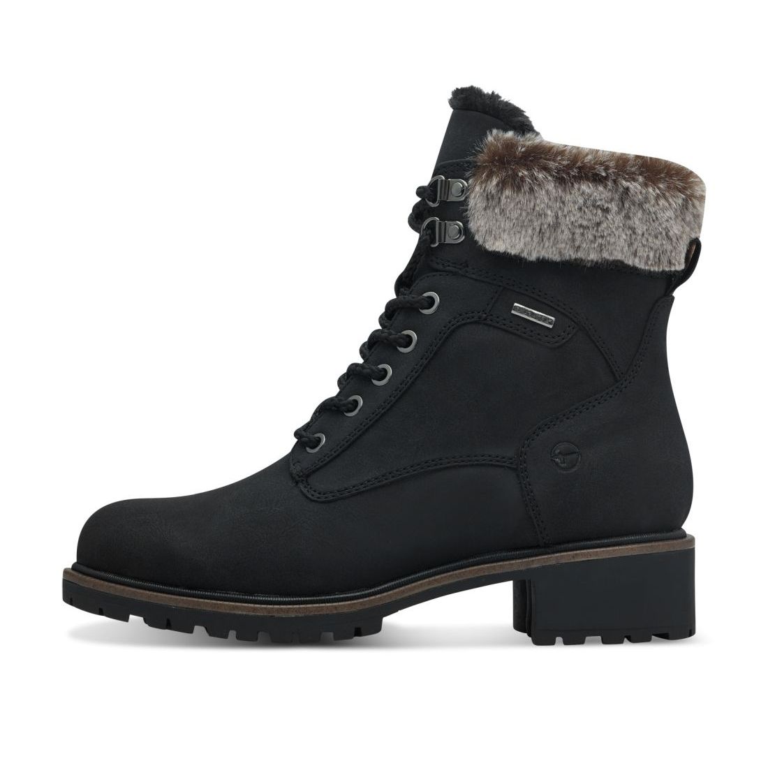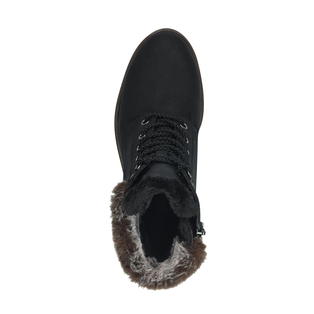 Perfektní obuv do nepříznivého počasí, to jsou tyto boty Tamaris v černé barvě s nápletem na horním lemu obuvi. Obuv je voděodolná, takže zůstanete v suchu za každého počasí. Zapínání na zip a tkaničky pro upravení si podle svých potřeb si zamilujete. Hřejivá podšívka a měkká stélka se postarají o Vaše pohodlí. Pohodlná podešev se vzorkem Vám dodá jistý krok. Vykročte s tou správnou obuví do chladných zimních dnů. Tento model nabízíme i v další barevné variantě (platí do vyprodání zásob). Technologie: Touch-it - měkká stélka, která se dokonale přizpůsobí tvaru nohy, a díky tomu při nošení zajišťuje optimální pohodlí. DuoTex - obuv s membránou DUOtex je nepromokavá a přesto prodyšná. Výrobní způsob - lepená obuv.