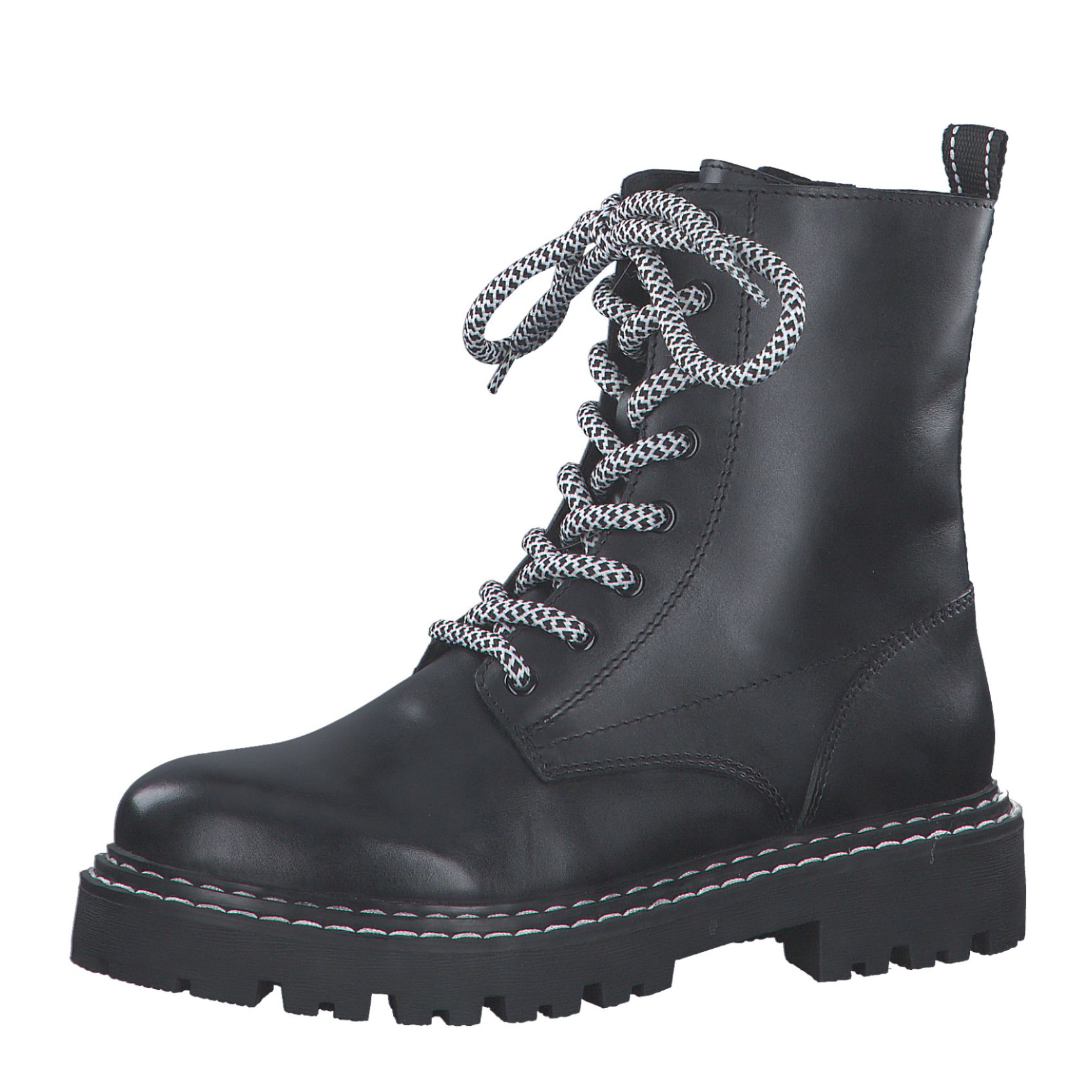 Moderní kotníková obuv Marco Tozzi Vás osloví. Tento model v černé barvě je doladěn tkaničkami v bílo černé barvě, které ladí se světlým prošitím na podešvi. Snadné obouvání zajistí funkční zip na vnitřní straně obuvi a pomocí tkaniček si obuv přizpůsobíte svým potřebám. Podešev má vzorek proti proklouznutí. Zahřeje Vás teplá podšívka. Tento model bude ozdobou Vašeho outfitu. Podívejte se i na další barevnou kombinaci, kterou nabízíme na našich stránkách ( platí do vyprodání zásob).