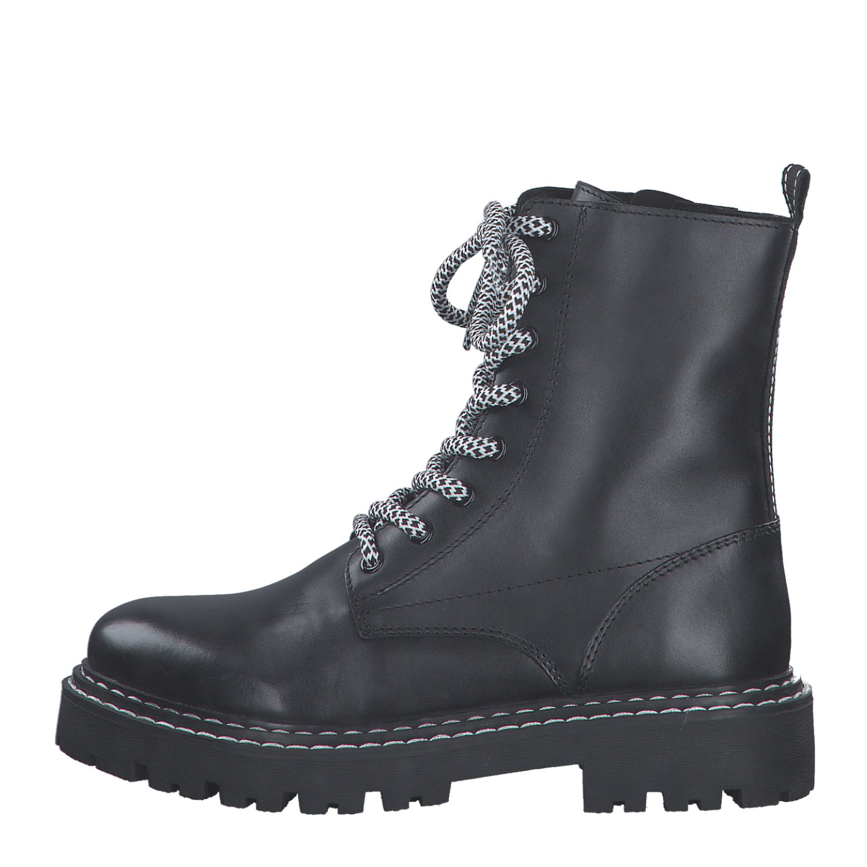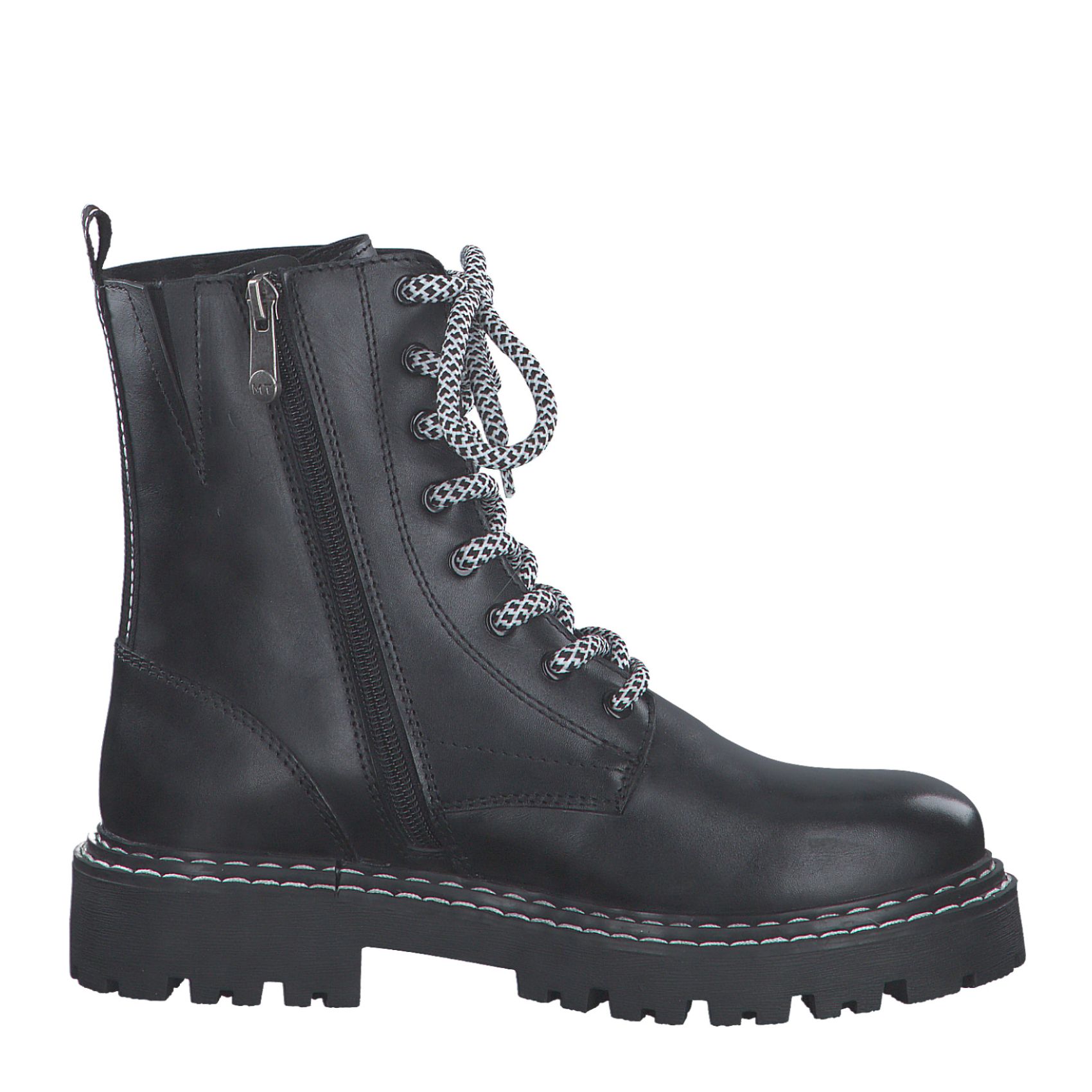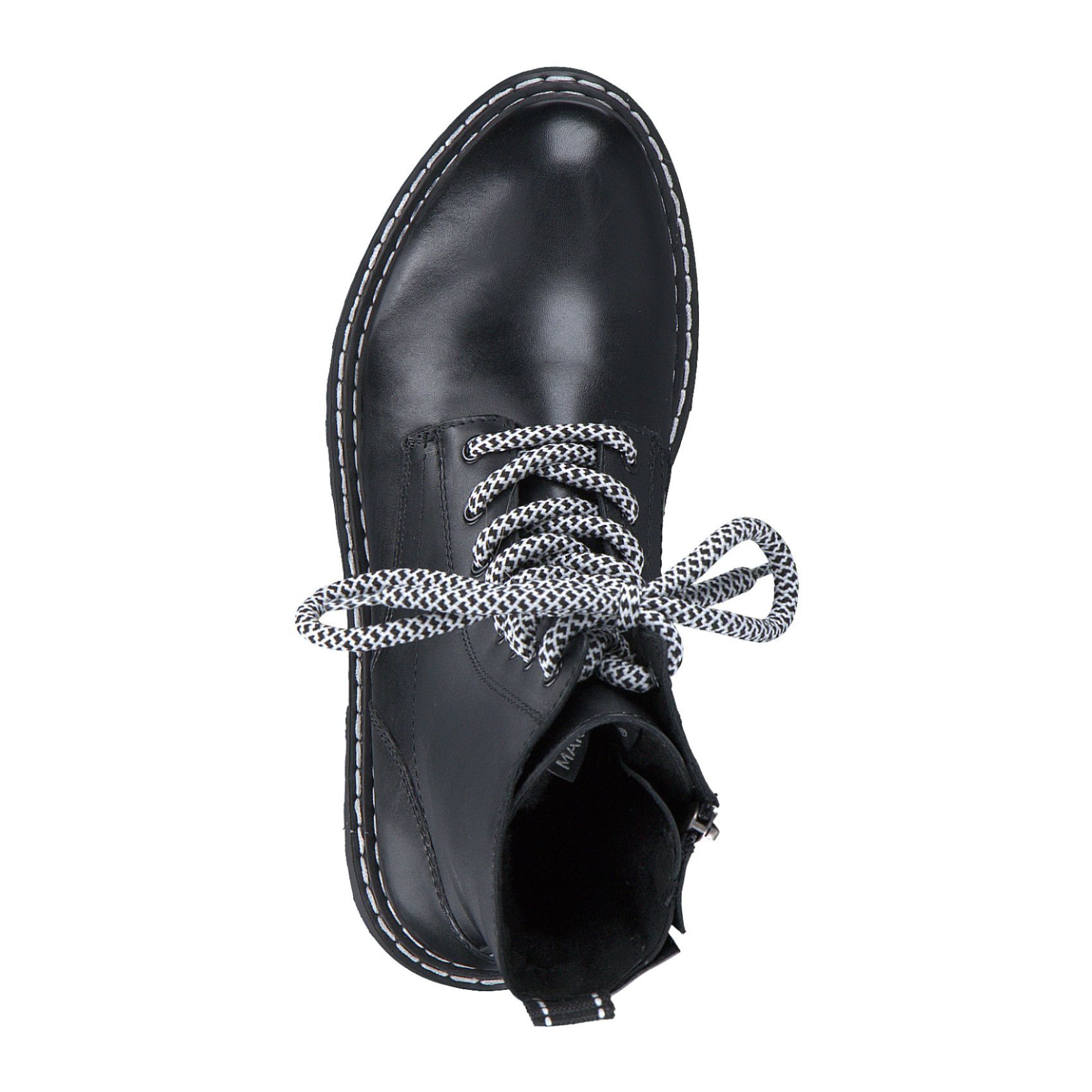 Detailní informace Moderní kotníková obuv Marco Tozzi Vás osloví. Tento model v černé barvě je doladěn tkaničkami v bílo černé barvě, které ladí se světlým prošitím na podešvi. Snadné obouvání zajistí funkční zip na vnitřní straně obuvi a pomocí tkaniček si obuv přizpůsobíte svým potřebám. Podešev má vzorek proti proklouznutí. Zahřeje Vás teplá podšívka. Tento model bude ozdobou Vašeho outfitu.