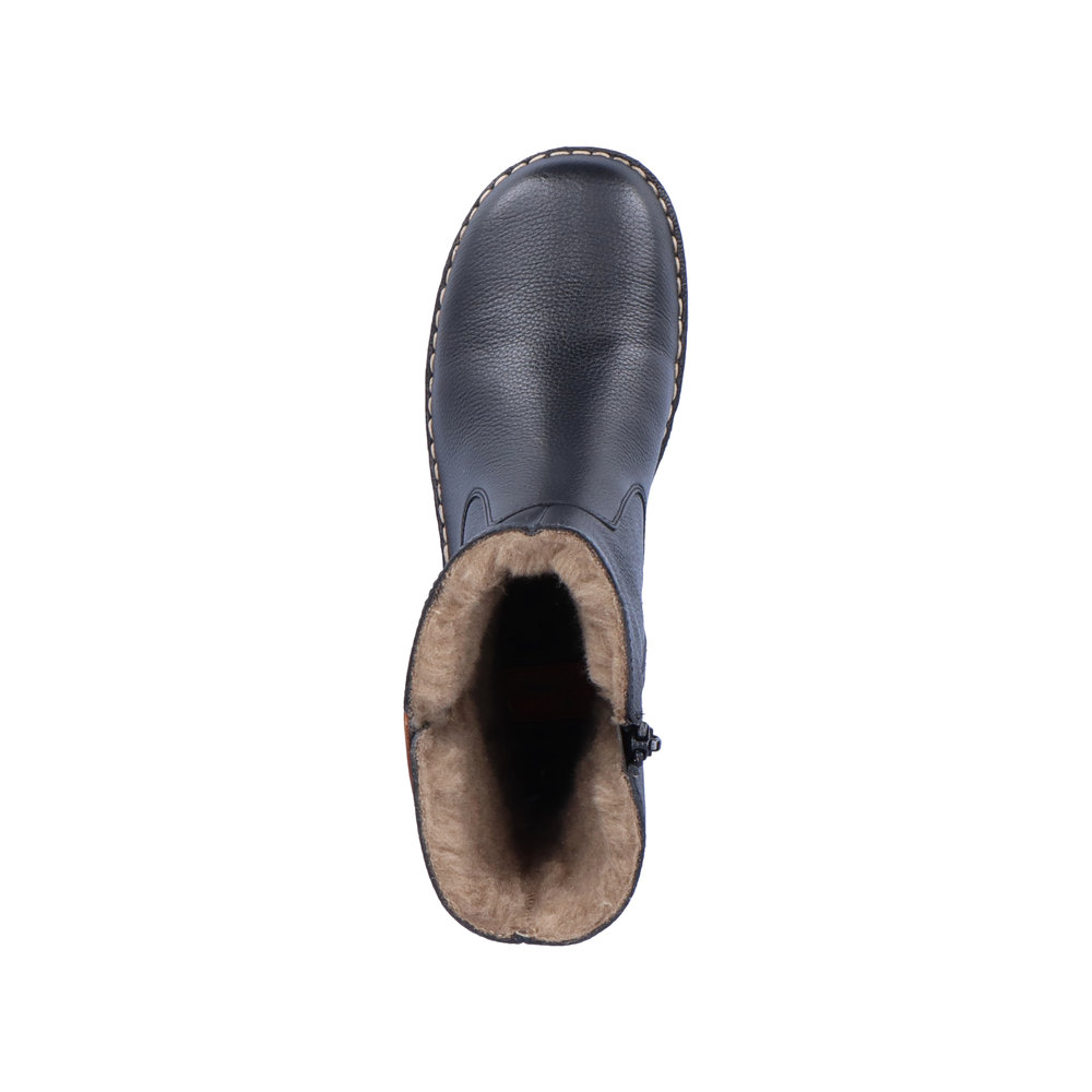Jednoduché krásné dámské nizší kožené kozačky Rieker jsou skvělou volbou. Jsou doladěny světlým prošíváním kolem podešve, nášivkou se jménem značky a logem. Krásně Vás bude hřát teplá podšívka z pravé ovčí vlny. Pohodlná stélka a flexibilní podešev Vás budou hýčkat na každém kroku. Lehce je sladíte s riflemi, legínami nebo sukní a budete se cítit parádně. Technologie: Antistress - podešev je díky této technologii lehká, flexibilní, absorbuje nárazy při došlapu a snadno se přizpůsobí každé noze. Výrobní způsob - šitá obuv.