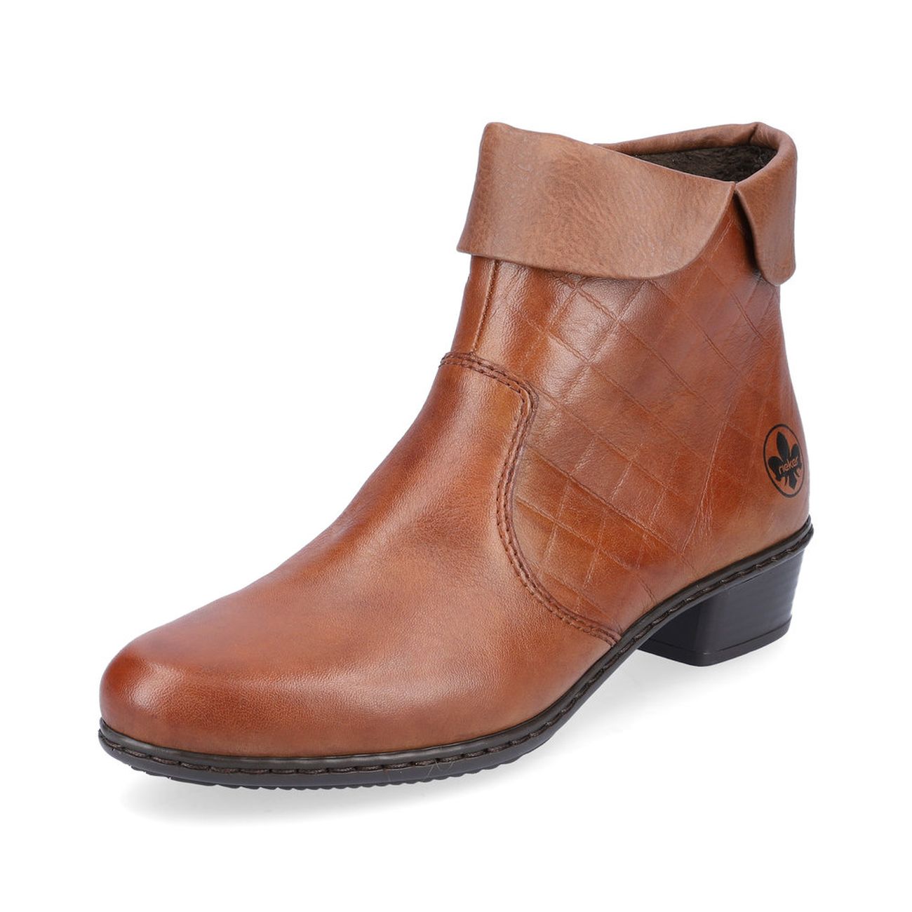 Elegantní kožená dámská kotníková obuv Rieker je krásným kouskem do Vašeho botníku. Tyto boty zaujmou vytlačeným vzorem a jemnou kulatou špičkou. Zapínání bude hračka díky zipu na vnitřní straně. Ohrnutí na horním lemu obuvi doladí tento model k dokonalosti. Díky flexibilní lehké podešvi si budete užívat každý krok. Technologie: Antistress - podešev je díky této technologii lehká, flexibilní, absorbuje nárazy při došlapu a snadno se přizpůsobí každé noze. Výrobní způsob - šitá obuv.