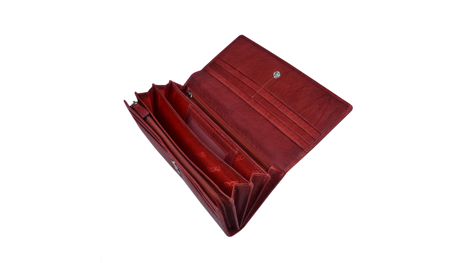 Velmi oblíbená dámská peněženka Segali ve vínové barvě, která je vyrobena z přírodní kůže. Jde velikostně o dlouhou peněženku, do které dáte vše potřebné, co běžně v peněžence potřebujete mít. Peněženka má klopu se zapínáním na druk. Z přední strany je jemné logo značky a ze zadní strany funkční přihrádka uzavíratelná zipem. Celkem má peněženka 10 přihrádek na kreditní karty, 1 průhlednou přihrádku, 3 přihrádky na doklady, 1 kapsu na mince a 2 přihrádky na bankovky.