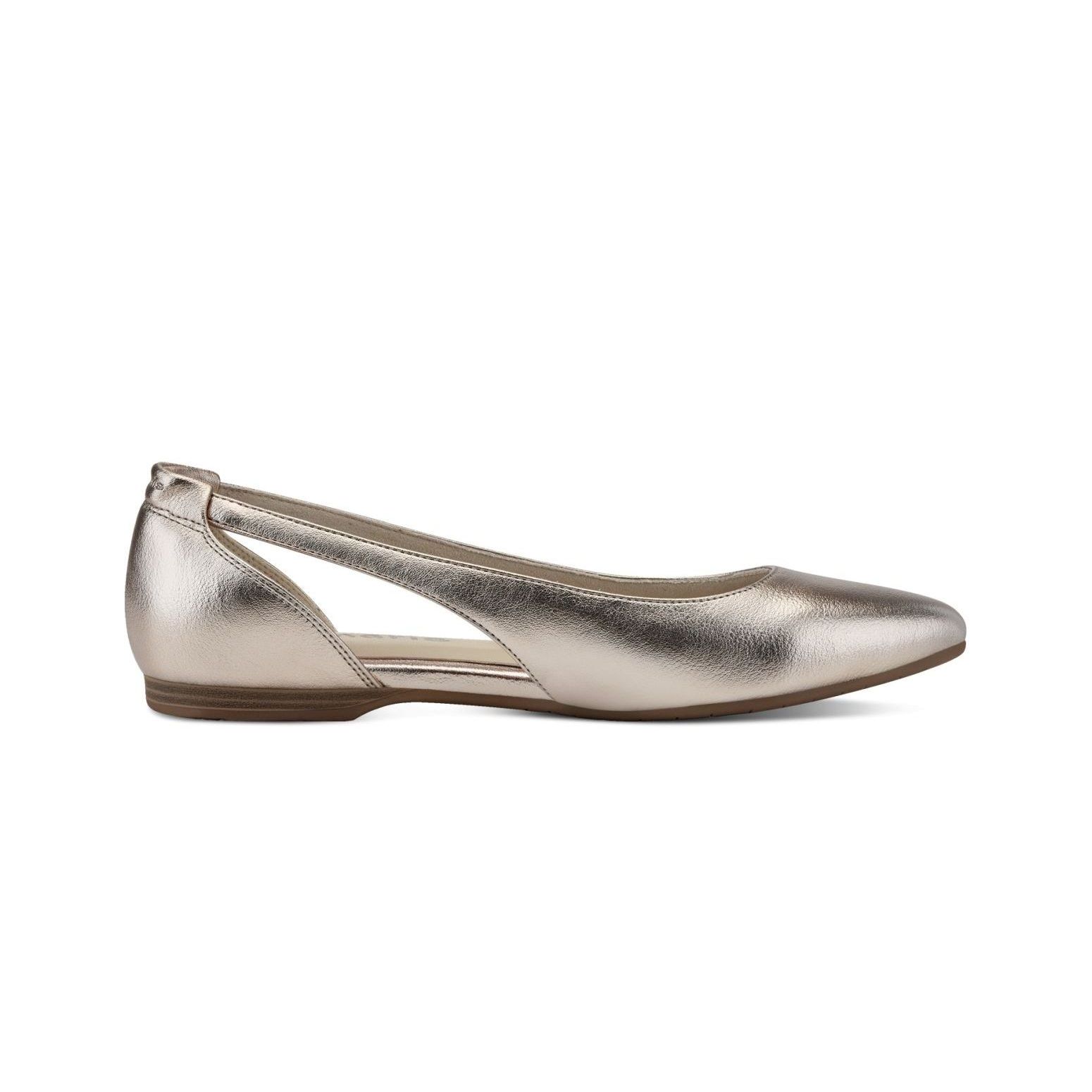 Máte ráda balerínky a hledáte elegantní styl? Tyto balerínky Tamaris, zlaté barvy, v jednoduchém stylu, se hodí, jak do práce, tak na bězné nošení. Úzká špička a pásky na bocích obuvi jsou pěkným řešením a doladí Váš celkový vzhled. Tento model nabízíme na našem e-shopu v další barevné kombinaci (platí do vyprodání zásob).