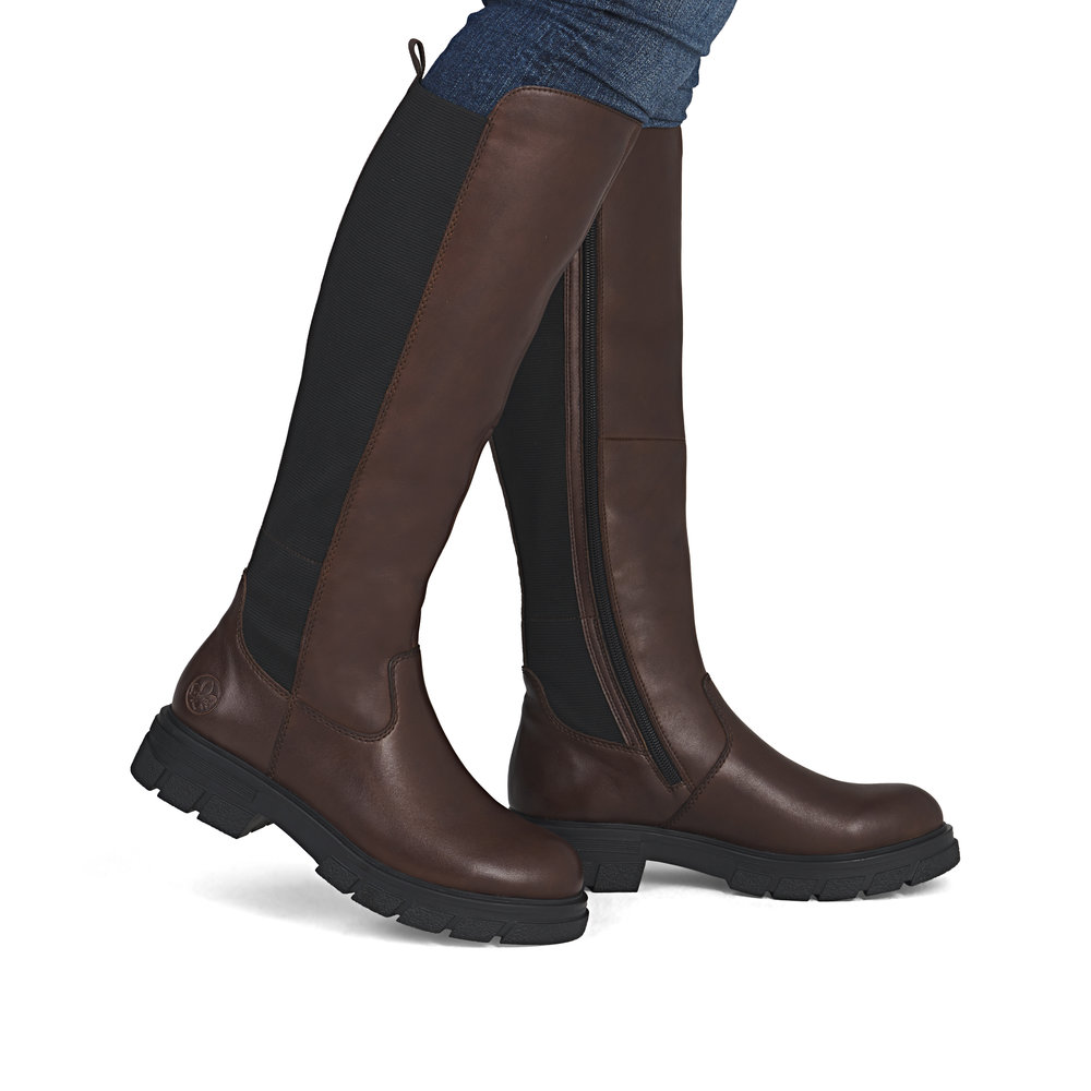 Dámské kožené kozačky Rieker v hnědé barvě v elegatně sportovním stylu si zamilujete. Pružný materiál na zadní straně lýtka je perfektně flexibilní. Zateplená podšívka a protiskluzná flexibilní podešev Vám budou dopřávat pohodlí během celého dne. Tento model můžete sladit s legínami, riflemi nebo sukní a budete vypadat skvěle. Technologie: Antistress - podešev je díky této technologii lehká, flexibilní, absorbuje nárazy při došlapu a snadno se přizpůsobí každé noze.