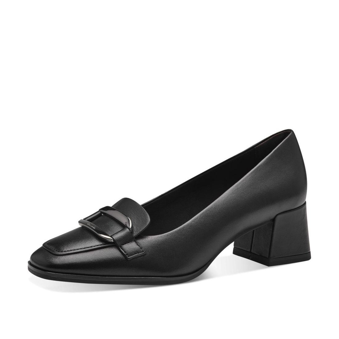 Elegantní kožené lodičky Tamaris v černé barvě, na stabilním širokém podpatku, jsou ideální volbou pro každodenní nošení do práce, ve volném čase i pro slavnostní příležitosti. Na první pohled zaujme nádherná ozdobná spona na nártu. Pohodlí Vám zajistí stélka s paměťovou pěnou, podpatek s funkcí Antishock, který tlumí nárazy při došlapu a jemný protiskluzný vzorek na podešvi. Tyto boty si můžete vzít k sukni, šatům i ke kalhotám a vždy budete vypadat skvěle. Technologie: Antishokk - obuv je nesmírně pohodlná i při dlouhém nošení navzdory vyššímu podpatku. Komory se stlačeným vzduchem a stabilizátory uvnitř podpatku tlumí došlap až o 50 %. Díky tomu chrání páteř a dlouhodobě odlehčují celým zádům a Vy tak můžete nosit obuv celý den, aniž by Vás bolely nohy. AntiSlide - zajišťuje skvělou přilnavost podpatku k povrchu. Touch-it - měkká stélka, která se dokonale přizpůsobí tvaru nohy, a díky tomu při nošení zajišťuje optimální pohodlí.