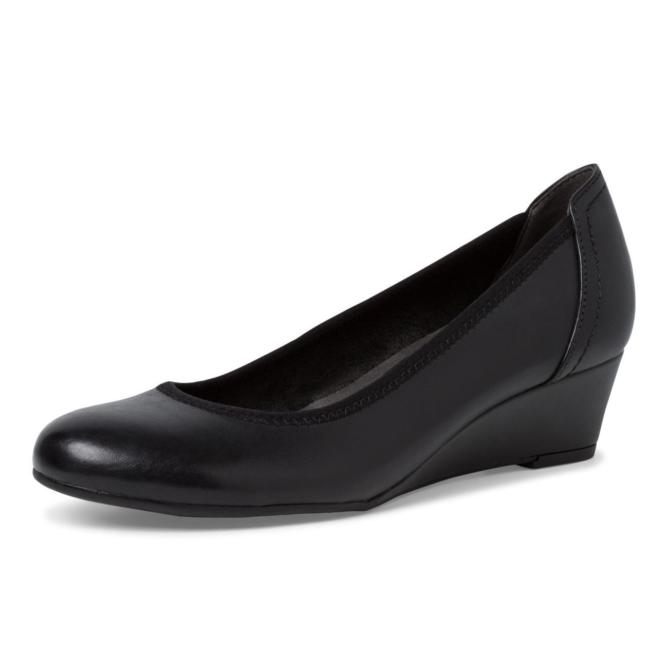 Velmi pohodlné elegantní lodičky Tamaris na klínku v černé barvě. Krásný design dotváří lemování horního okraje a šití v patě. Vrchový materiál je z přírodní kůže. Pohodlný klínek a měkká stélka Touch-it se postarají o příjemný pocit z chůze. Technologie AntiSlide poskytuje dobrou stabilitu díky protiskluzovému prvku v podešvi. Technologie: Touch-it - měkká stélka, která se dokonale přizpůsobí tvaru nohy, a díky tomu při nošení zajišťuje optimální pohodlí. AntiSlide - Technologie AntiSlide zajišťuje lepší přilnavost podešve k povrchu, po kterém právě jdete.