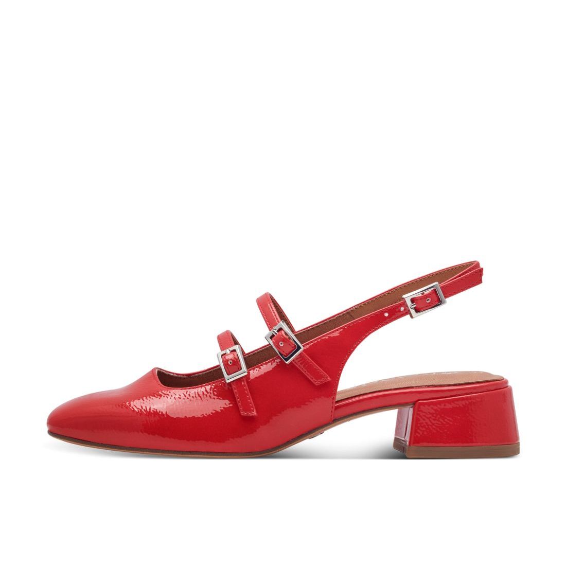 Nádherné, elegantní dámské lodičky Tamaris, v červené barvě, s uzavřenou špičkou a otevřenou patou na stabilním podpatku. Svršek obuvi je z přírodní kůže. Díky nastavitelnému pásku přes patu s gumičkou se obuv perfektně přizpůsobí Vaší noze. Dva nastavitelné pásky přes nárt zajistí dokonalou fixaci Vašich nohou. O pohodlí se Vám postará velmi pohodlná a měkká Touch-it stélka. Kvalitní podpatek ze syntetického materiálu bude Vaší oporou při každodenní chůzi do práce či jiných aktivitách. Tyto boty se perfektně hodí k sukni či šatům a určitě by neměly chybět žádné ženě. Technologie: Touch-it - měkká stélka, která se dokonale přizpůsobí tvaru nohy, a díky tomu při nošení zajišťuje optimální pohodlí. AntiSlide - zajišťuje skvělou přilnavost podpatku k povrchu.