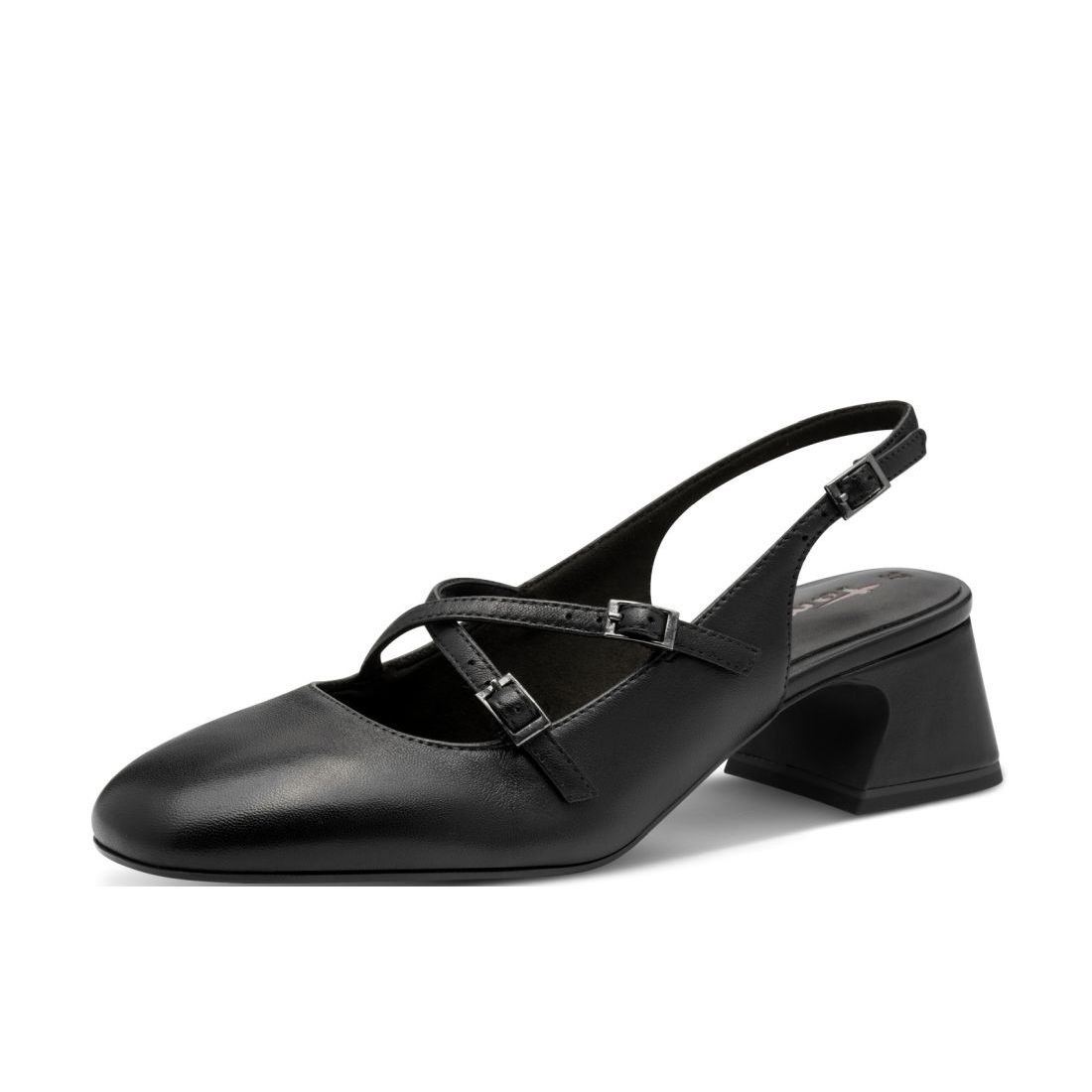 Detailní informace Módní kousek pro každodenní nošení nebo slavnostní příležitost, to jsou tyto krásné kožené lodičky Tamaris s otevřenou patou. Elegantní model je doladěn překříženými pásky přes nárt s přeskou a páskem za patou, díky nimž si obuv přesně přizpůsobíte svým potřebám. Měkká stélka z paměťové pěny Vám dodá pohodlí, které si zasloužíte. Celkový vzhled doladí tvarovaný podpatek. Tento model má technologii AntiSlide - zajišťuje skvělou přilnavost podpatku k povrchu a Antishokk, který tlumí nárazy a tím chrání Vaše záda.