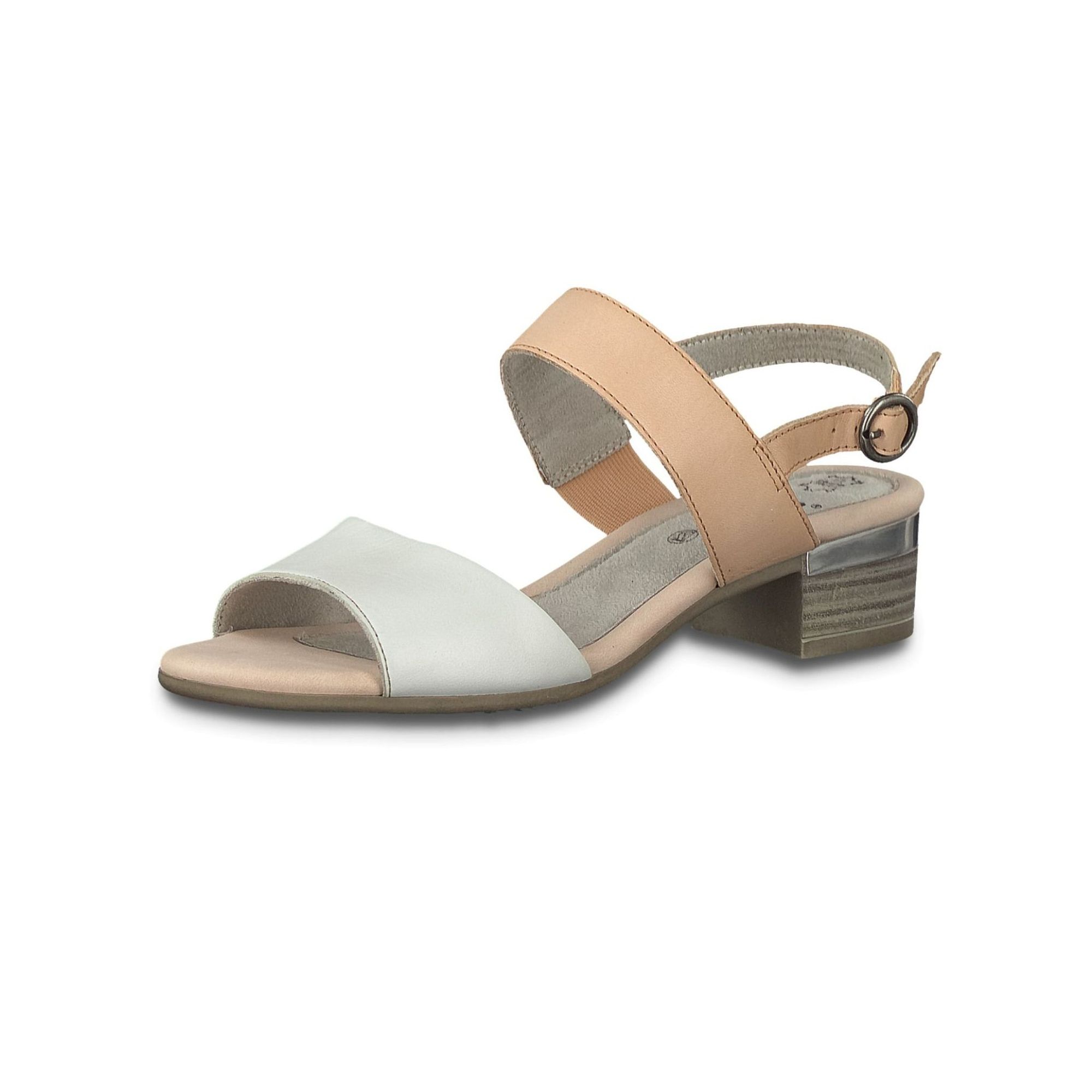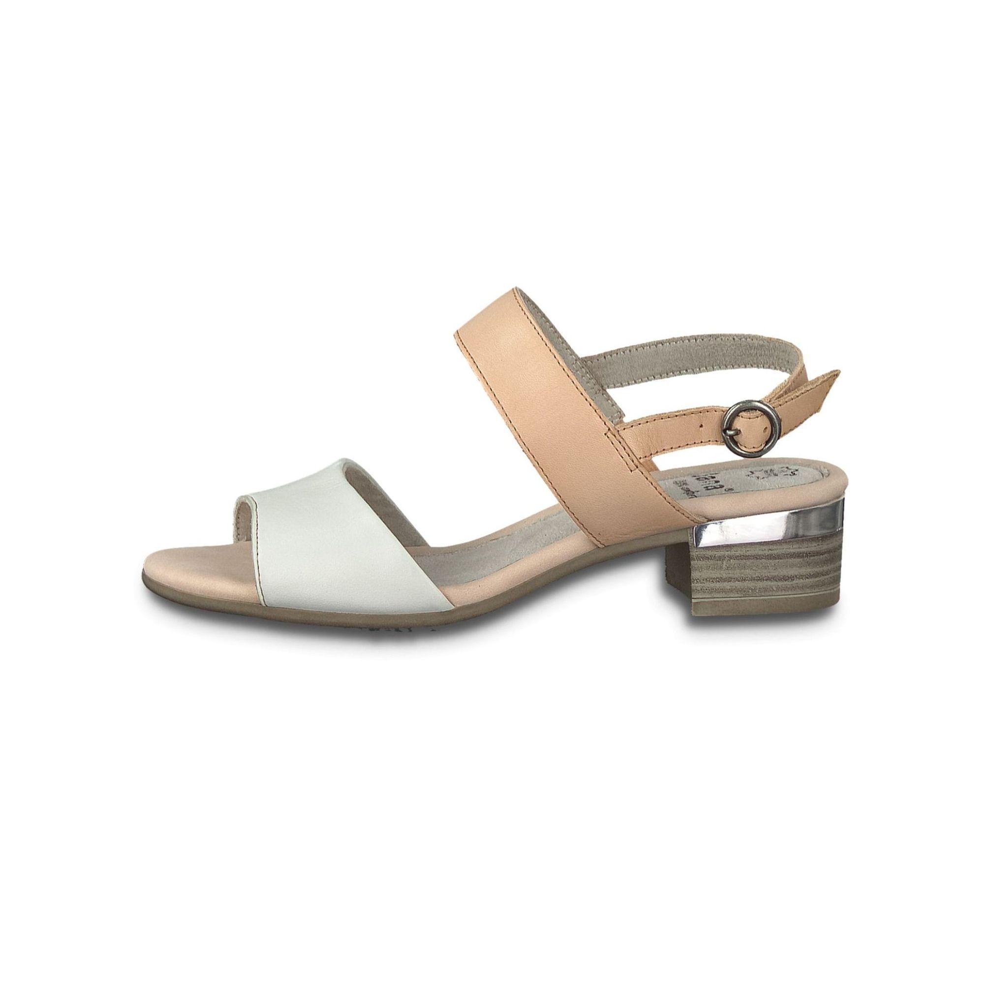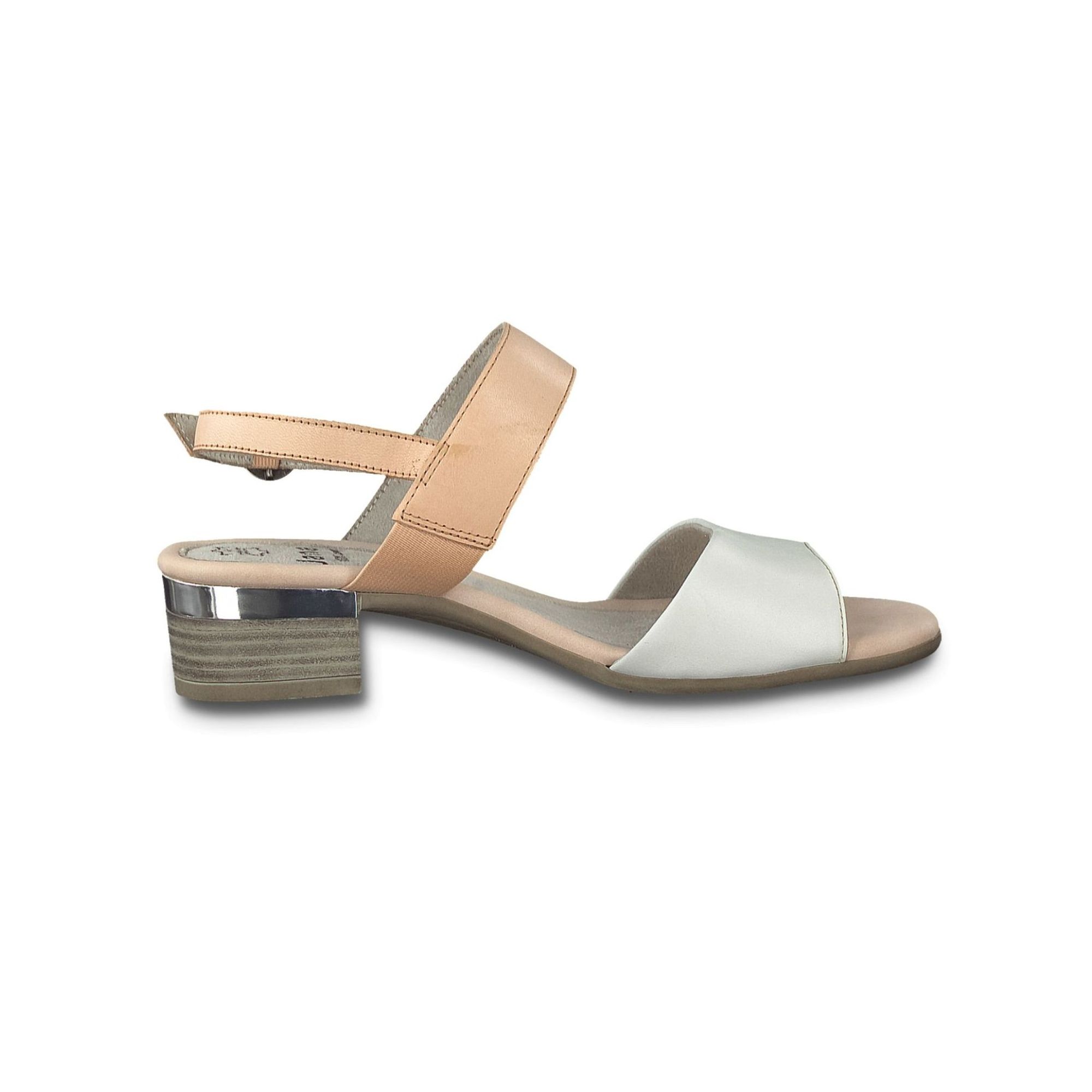 Detailní informace Elegantní dámské sandály na podpatku od značky Jana. Pásky mají svrchní materiál z přírodní kůže. Díky zapínání u patního pásku si můžete obuv přizpůsobit Vaší noze, tak jak potřebujete. Krásným kontrastním prvkem je přední bílý pásek k zadním růžovým páskům. Pohodlná stélka v kombinaci se stabilním podpatkem a podešví SoftFlex Vám zajistí pohodlí v této obuvi po celý den. Podpatek je ozdoben tenkým stříbrným proužkem. Obuv je v šíři H (široká obuv).