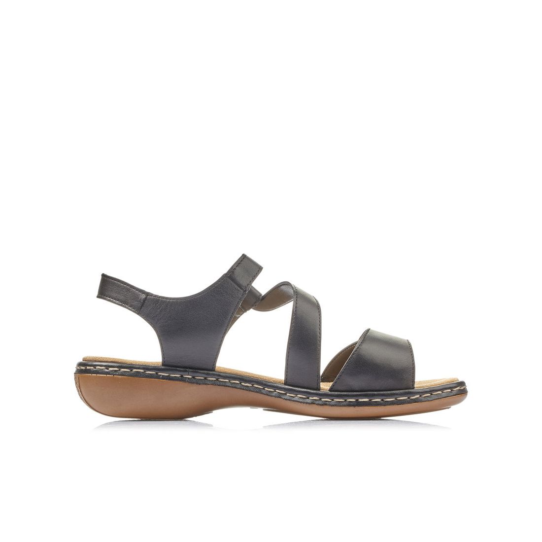 Představujeme Vám novinku značky Rieker. Dámské kožené sandály, jejichž pásky jsou skvěle vyřešeny tak, aby jste se v nich cítila pohodlně a jistě. Díky suchým páskům si obuv nastavíte dle svých potřeb. Měkká stélka a flexibilní podešev Vám dodají pohodlí po celou dobu nošení. Nenechte si ujít tento skvělý kousek, který se bude hodit do Vašeho botníku a ráda jej zvolíte ať už vyrazíte za zábavou nebo prací. Tento model nabízíme na našem e-shopu v další barevné kombinaci (platí do vyprodání zásob). Technologie: Antistress - podešev je díky této technologii lehká, flexibilní, absorbuje nárazy při došlapu a snadno se přizpůsobí každé noze.