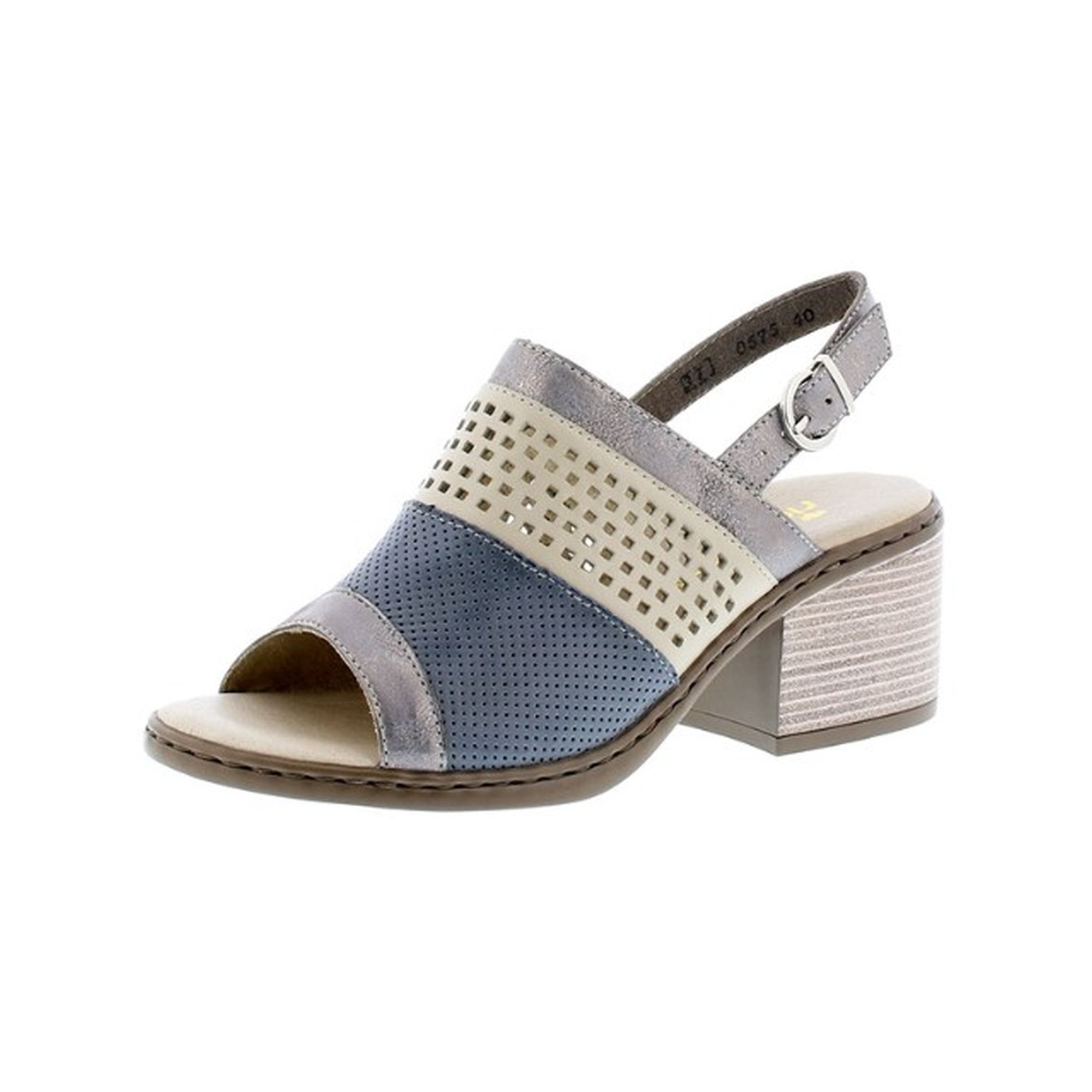 Elegantní dámské sandály na podpatku od značky Rieker se zajímavě provedenou povrchovou perforací, v krásných kontrastních barvách. Svršek obuvi je vyroben z přírodní kůže. Nastavitelný patní pásek s kovovou přezkou Vám zajistí, že Vám bude bota dobře sedět na noze. Pohodlný a stabilní podpatek je ozdoben tenkými proužky. Velmi oblíbený model pro letní dny. Perfektně se hodí k sukni. Technologie: Antistress - díky této technologii je obuv lehká, flexibilní, absorbuje nárazy při došlapu a snadno se přizpůsobí každé noze.
