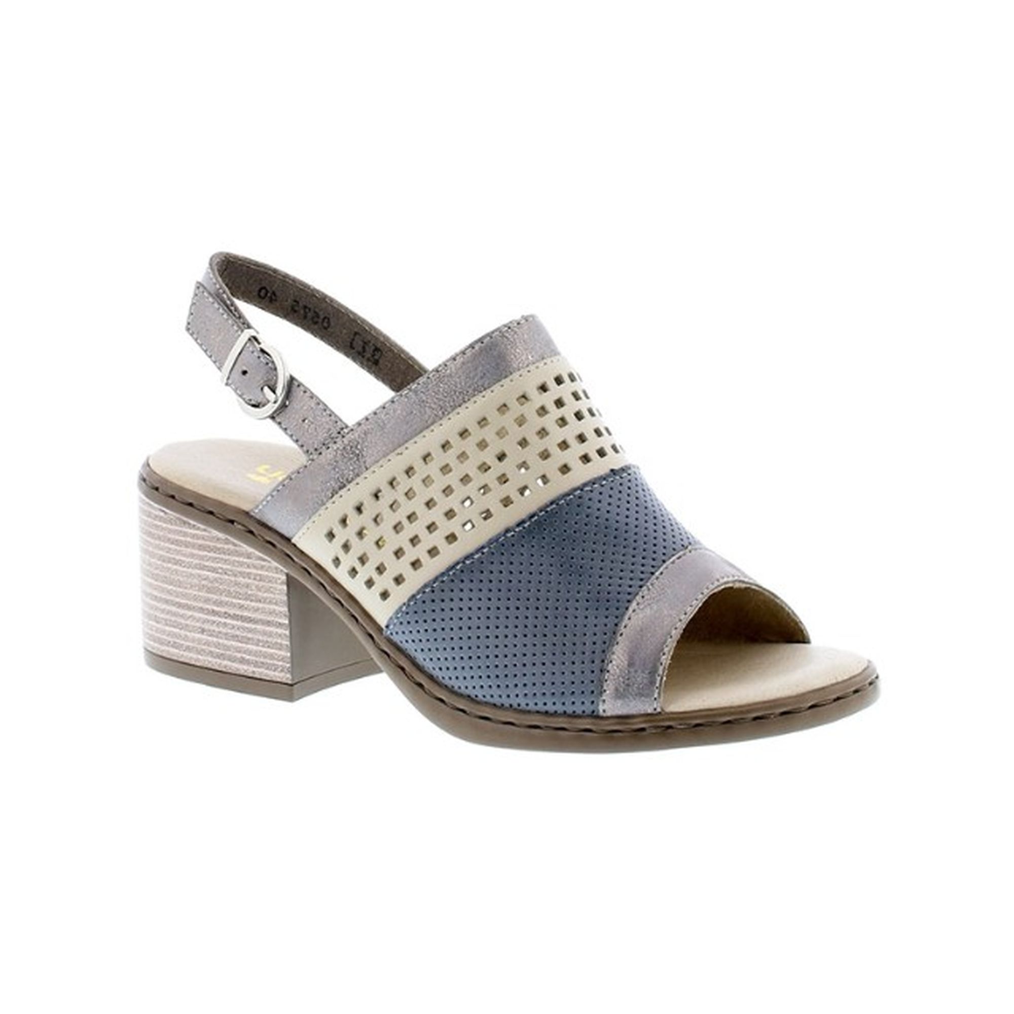 Detailní informace Elegantní dámské sandály na podpatku od značky Rieker se zajímavě provedenou povrchovou perforací, v krásných kontrastních barvách. Svršek obuvi je vyroben z přírodní kůže. Nastavitelný patní pásek s kovovou přezkou Vám zajistí, že Vám bude bota dobře sedět na noze. Pohodlný a stabilní podpatek je ozdoben tenkými proužky. Velmi oblíbený model pro letní dny. Perfektně se hodí k sukni.
