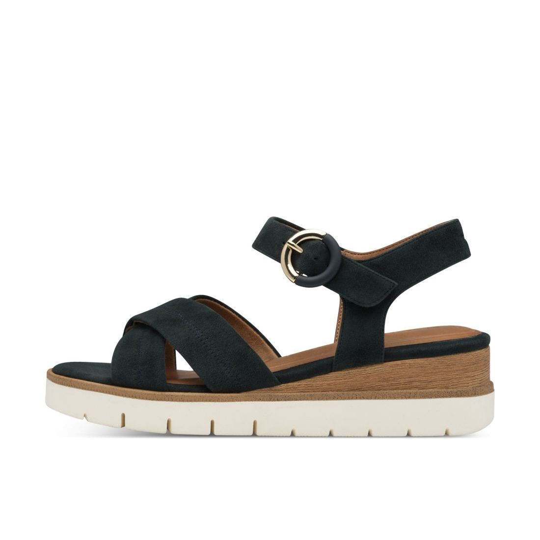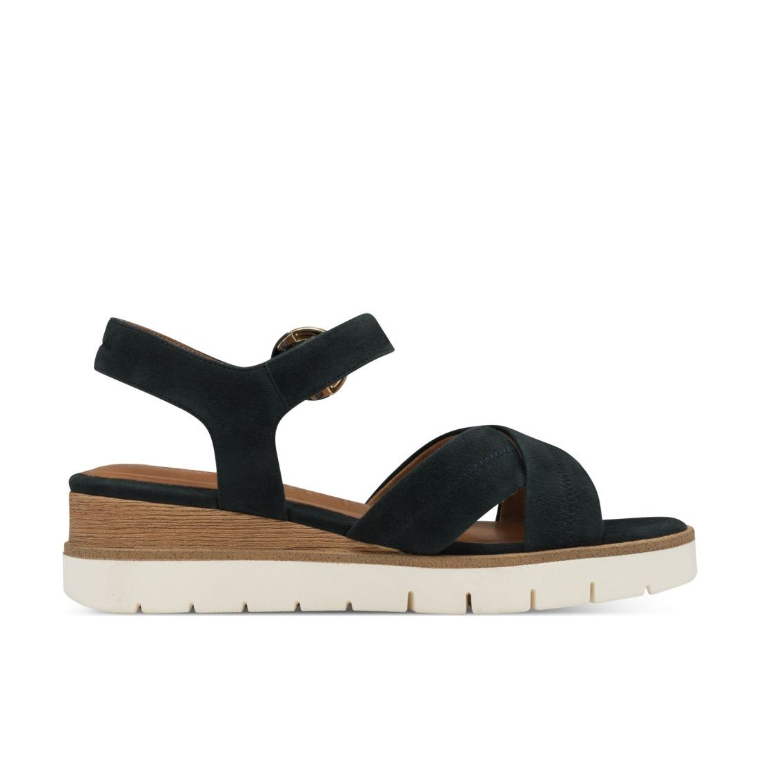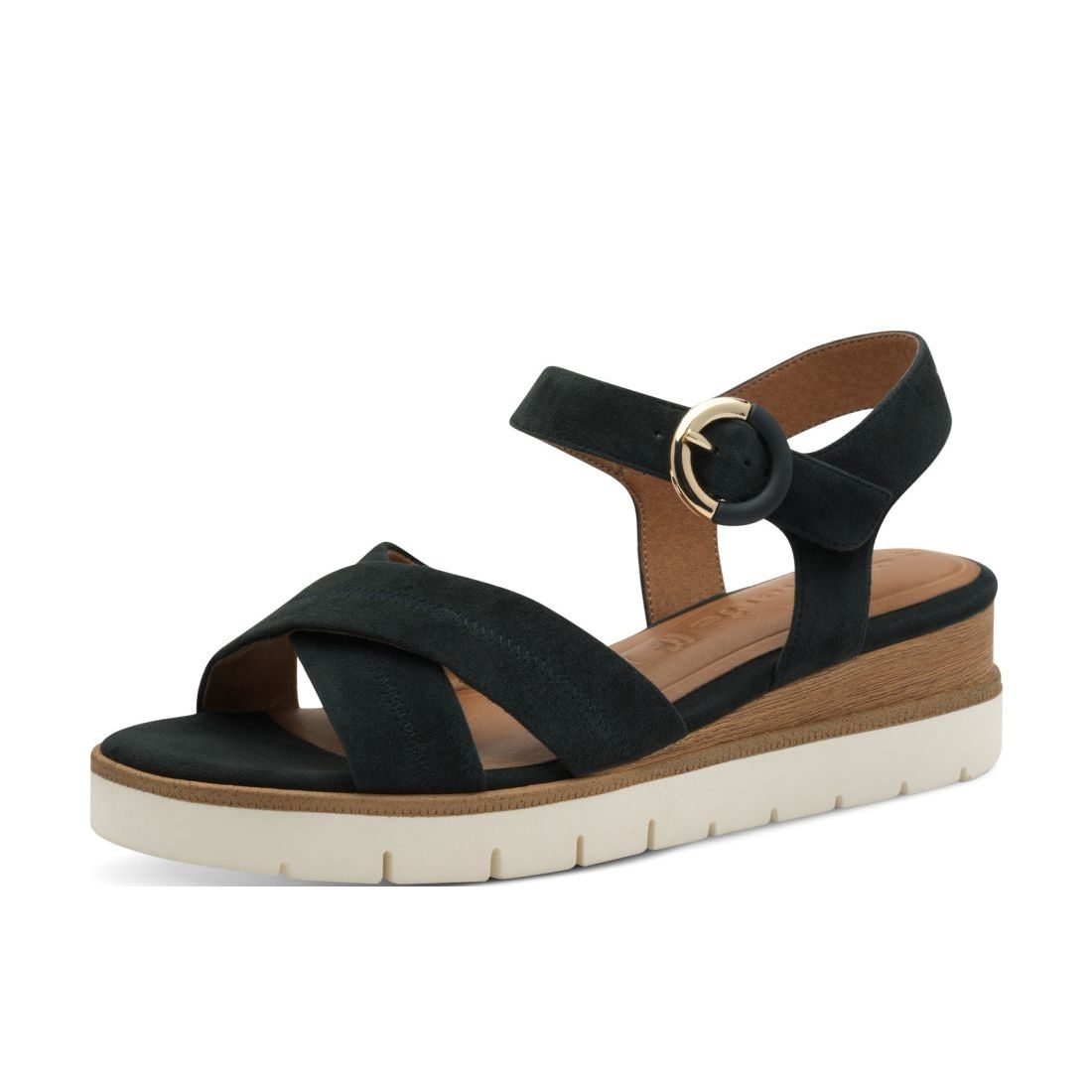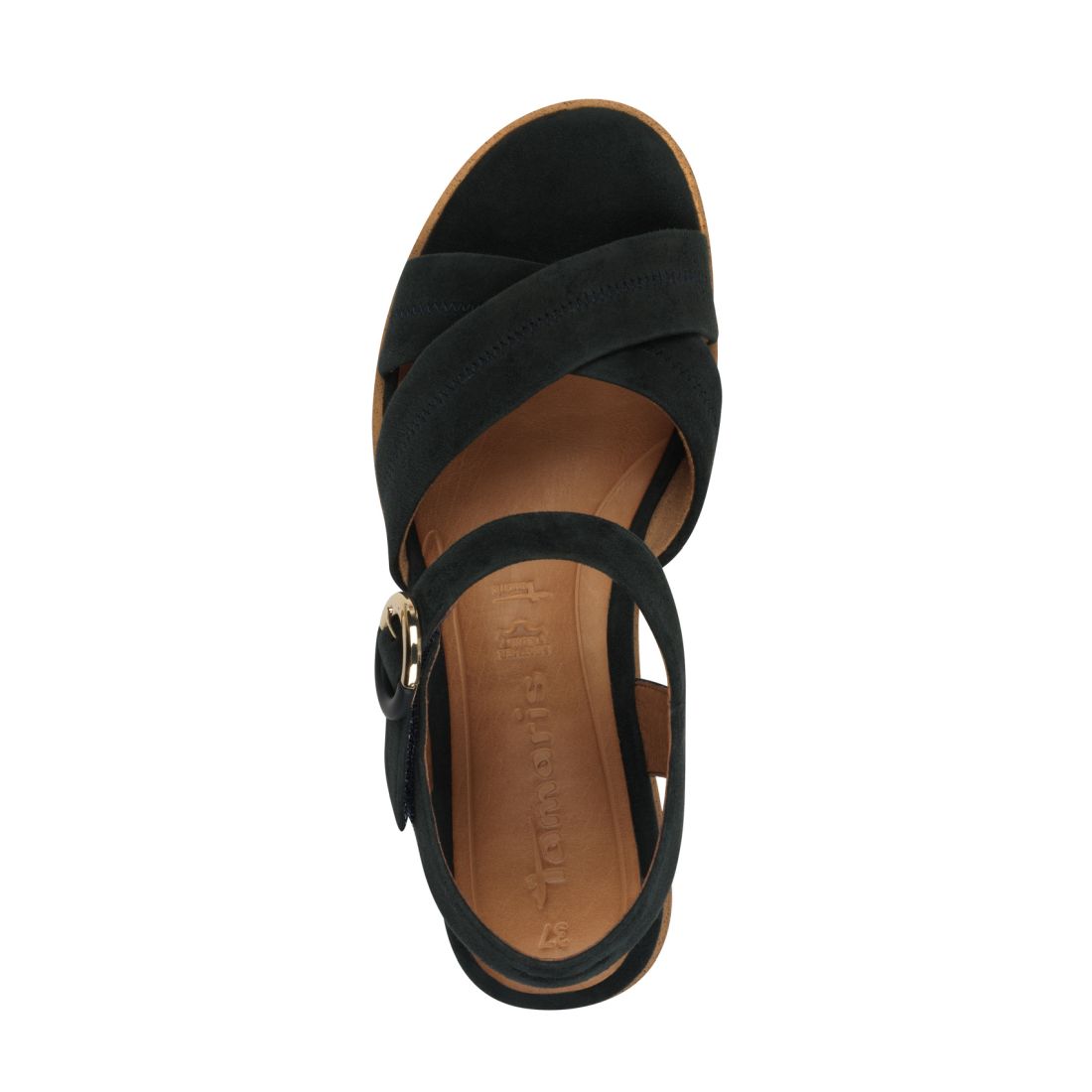 Elegantní dámské sandály Tamaris v modré barvě. Svrchní materiál je z přírodní kůže. Na první pohled zaujmou stylově překřížené pásky v nártové části a ozdobná spona u pásku kolem kotníku, která je navíc funkční. Pohodlí na každém kroku budete mít díky měkké Touch-it stélce z paměťové pěny. Stabilitu Vám poskytne vyvýšená klínková podešev. Tento model bude ozdobou Vašeho outfitu. Technologie: Touch-it - měkká stélka, která se dokonale přizpůsobí tvaru nohy, a díky tomu při nošení zajišťuje optimální pohodlí.