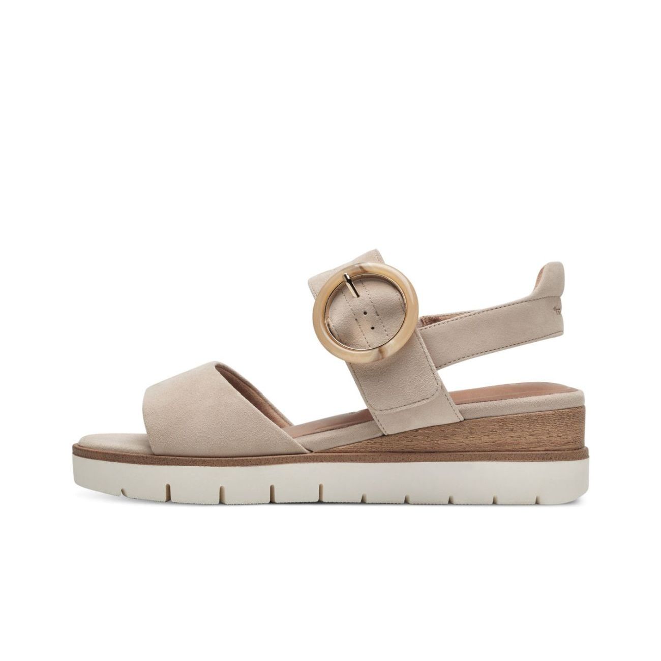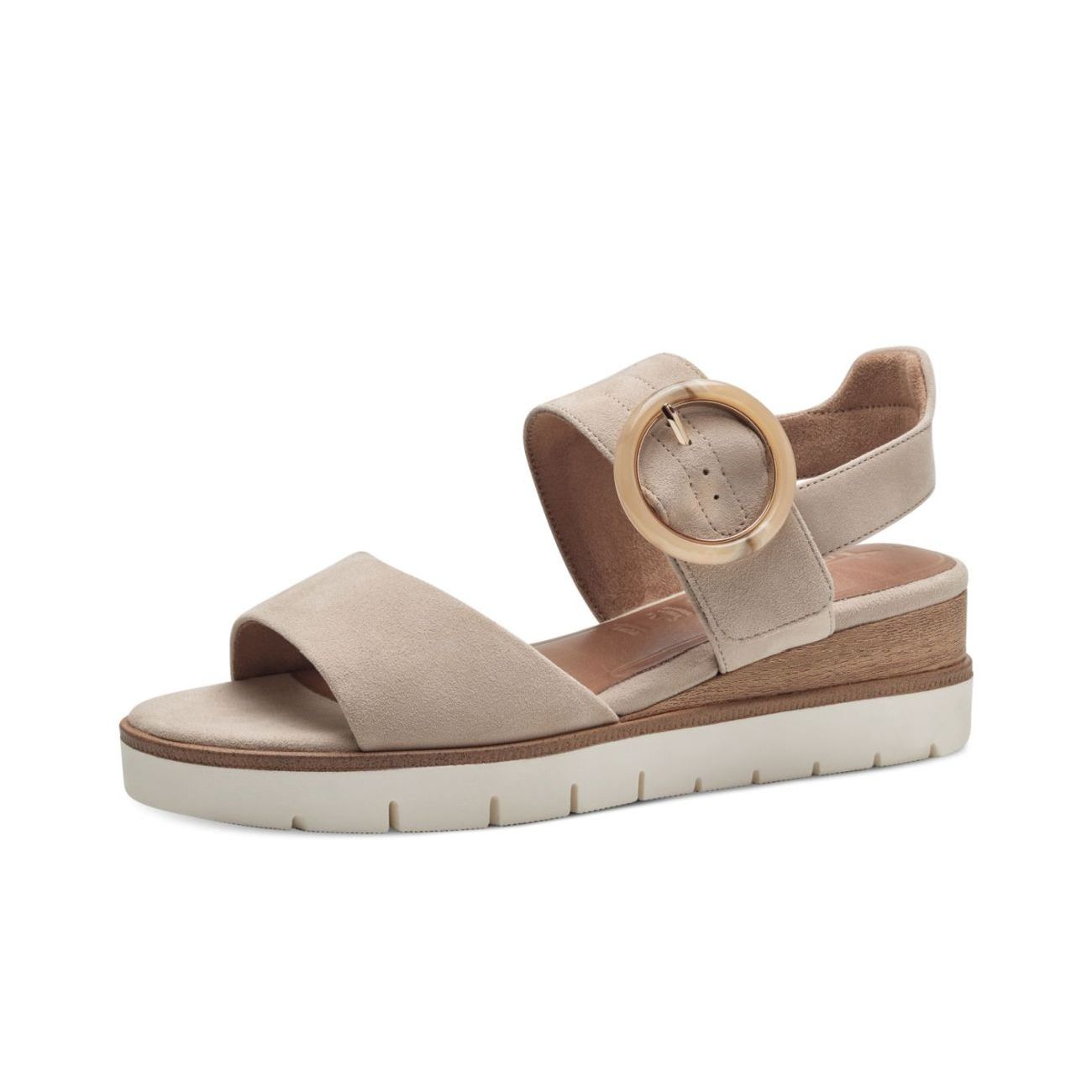 Elegantní kožené sandály Tamaris, béžové barvy, na pohodlném klínku. Snadné obouvání budete mít díky pásku se suchým zipem. Na první pohled zaujme nádherná ozdobná spona. O pohodlí se Vám postará příjemně měkká Touch-it stélka z paměťové pěny. Technologie: Touch-it - měkká stélka, která se dokonale přizpůsobí tvaru nohy, a díky tomu při nošení zajišťuje optimální pohodlí.