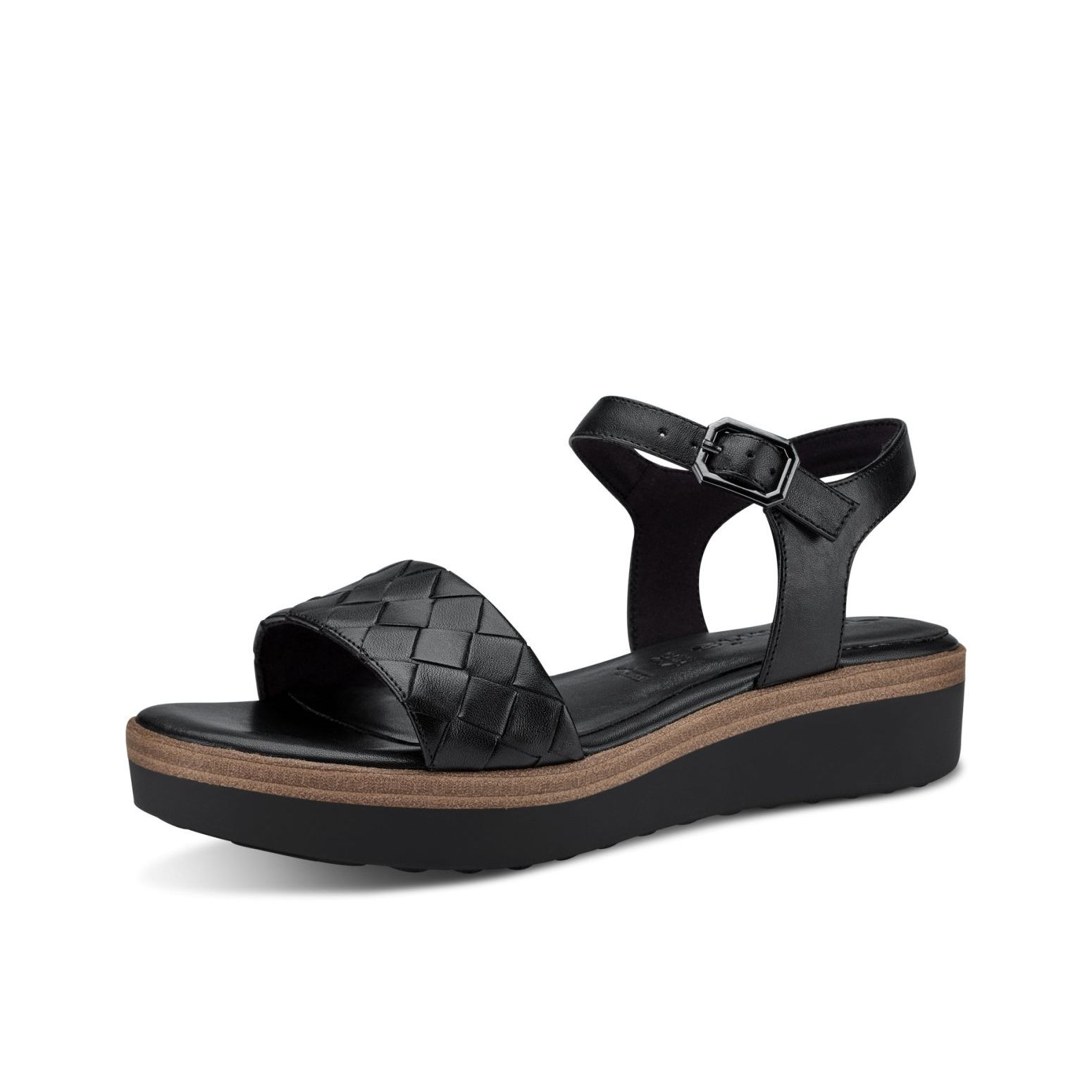 Pohodlné kožené dámské sandály Tamaris se širokým proplétaným páskem přes prsty a páskem kolem paty, jsou výbornou volbou. Díky přesce si obuv přizpůsobíte svým potřebám. Pohodlná stélka z paměťové pěny a příjemný klínek, Vás budou hýčkat na každém kroku. Celkový vzhled dolaďuje hnědý proužek na podešvi. Tyto boty vynosíte, jak do města, tak do práce nebo na dovolené. Tento model nabízíme na našem e-shopu v další barevné kombinaci (platí do vyprodání zásob). Technologie: Touch-it - měkká stélka, která se dokonale přizpůsobí tvaru nohy, a díky tomu při nošení zajišťuje optimální pohodlí.