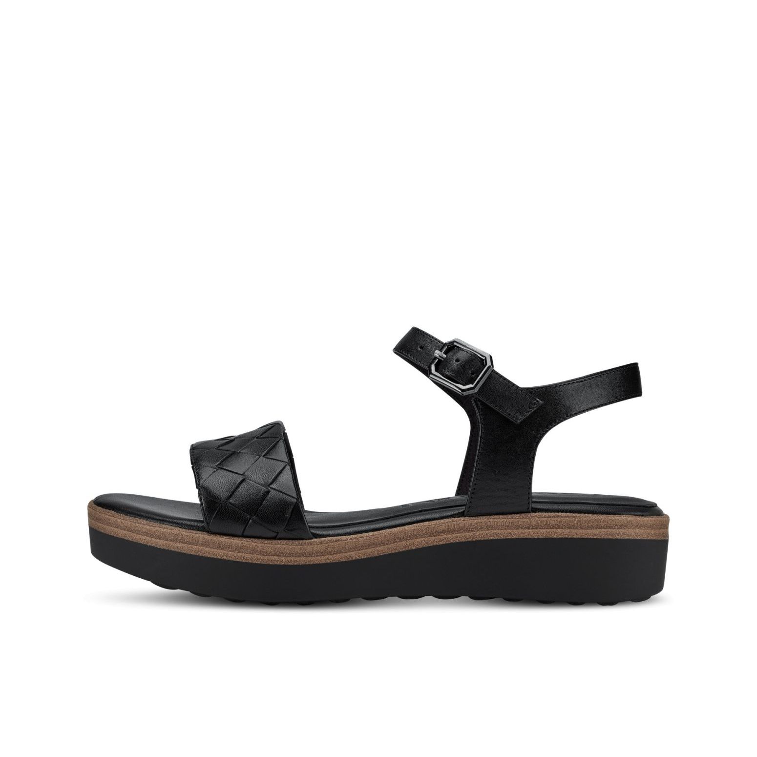 Detailní informace Pohodlné kožené dámské sandály Tamaris se širokým proplétaným páskem přes prsty a páskem kolem paty, jsou výbornou volbou. Díky přesce si obuv přizpůsobíte svým potřebám. Pohodlná stélka z paměťové pěny a příjemný klínek, Vás budou hýčkat na každém kroku. Celkový vzhled dolaďuje hnědý proužek na podešvi. Tyto boty vynosíte, jak do města, tak do práce nebo na dovolené.