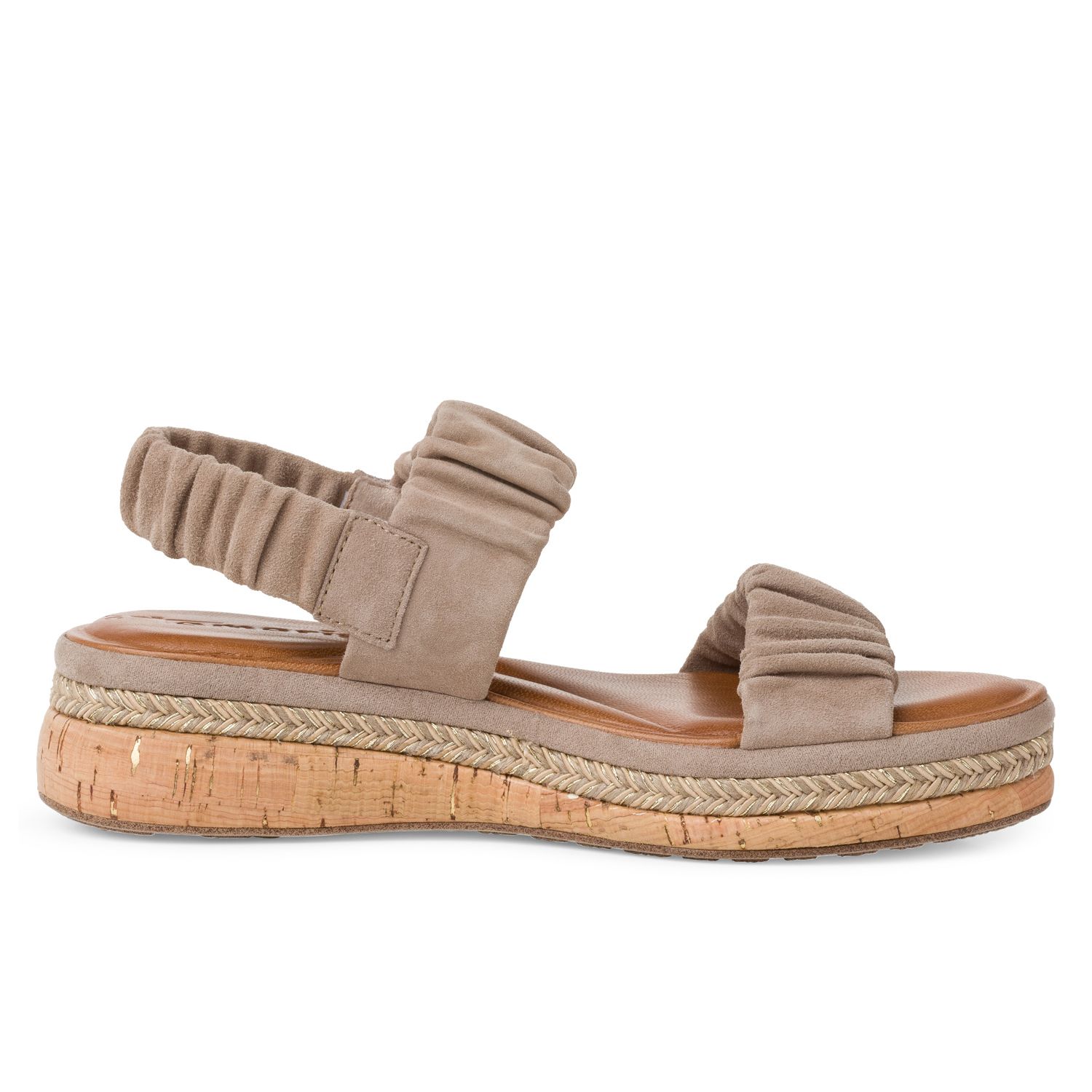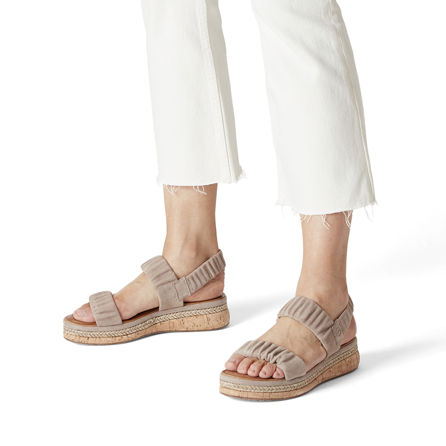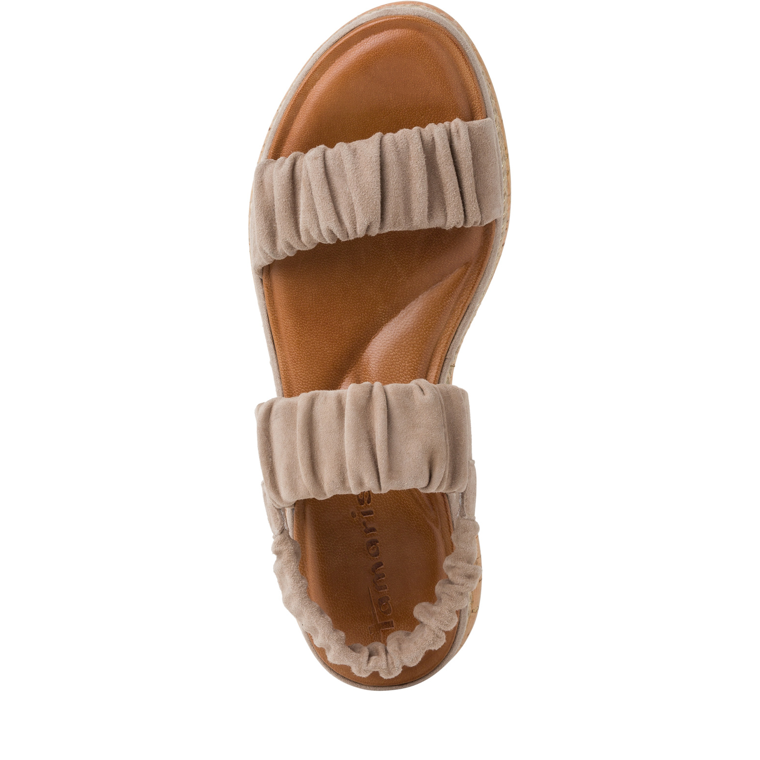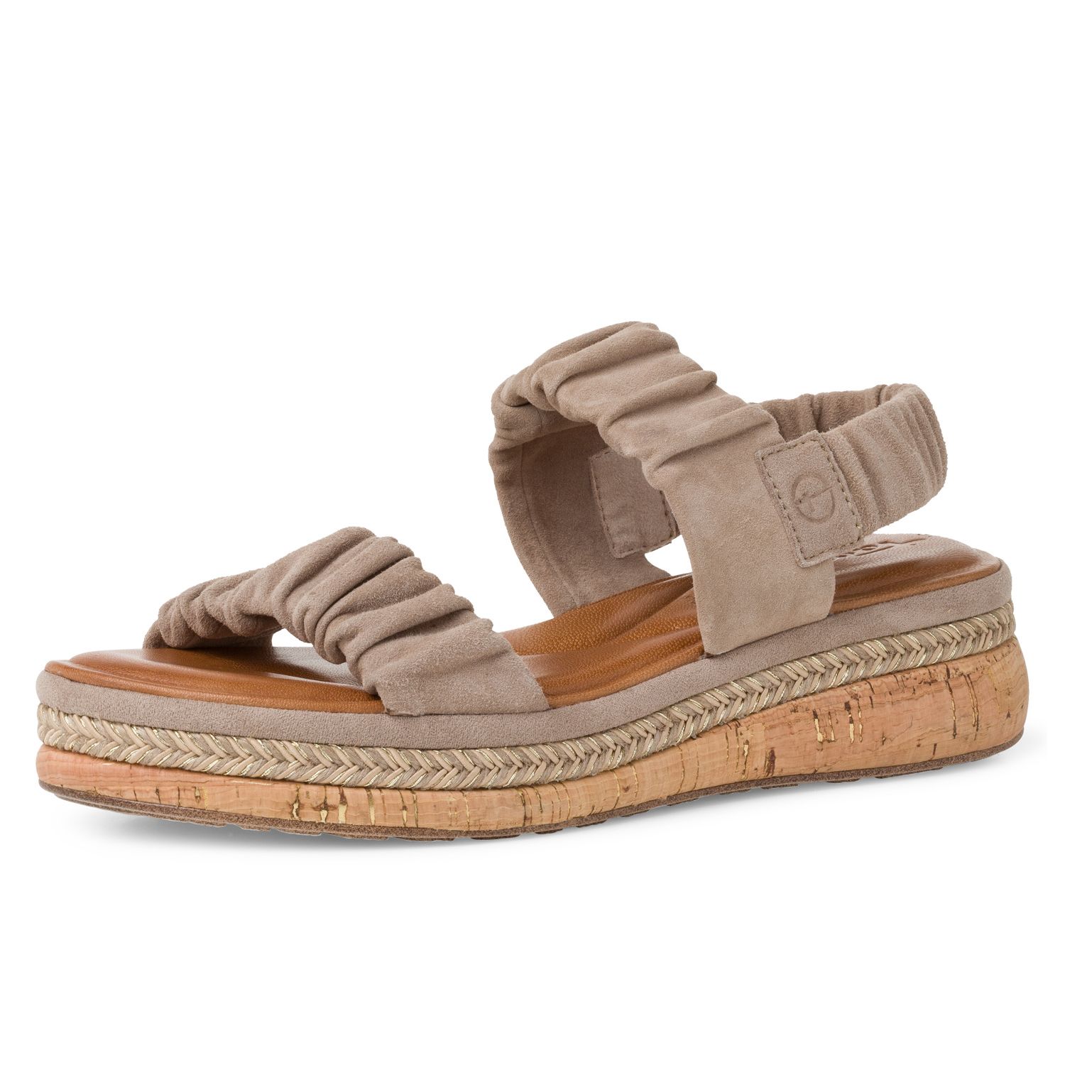 Tyto krásné dámské sandály Tamaris nemůžete přehlédnout. Díky třem pružným páskům se obuv krásně přizpůsobí Vaší noze. Nařasené pásky působí jemně a budou vypadat krásně k letnímu oblečení. Celkový vzhled dotváří vyšší podešev v imitaci korku s s proplétáním. Příjemná tvarovaná stélka Vám zajistí pohodlí po celý den. Technologie: Touch it - stélka z paměťové pěny, která se skvěle přizpůsobí tvaru Vaší nohy.
