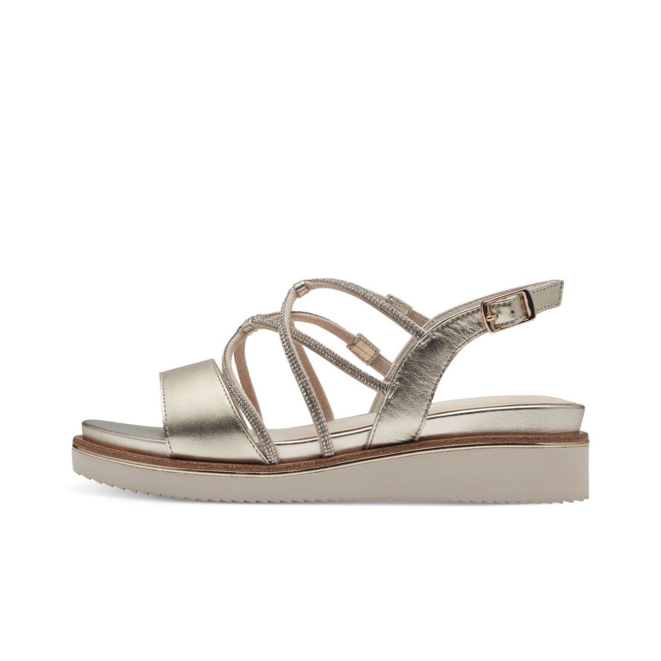 Luxusní dámské sandály Tamaris se budou hodit nejen na slavnostní příležitost. Úzké třpytivé pásky na nártu jsou zajímavě proplétané a pásek za patou má funkční přesku, pomocí které si obuv přizpůsobíte svým potřebám. Díky pohodlné stélce z paměťové pěny se budete v obuvi cítit velice pohodlně. Vyvýšená podešev Vám dodá jistotuTyto botičky si zaslouží Vaši přízeň. Technologie: Touch-it - měkká stélka, která se dokonale přizpůsobí tvaru nohy, a díky tomu při nošení zajišťuje optimální pohodlí.