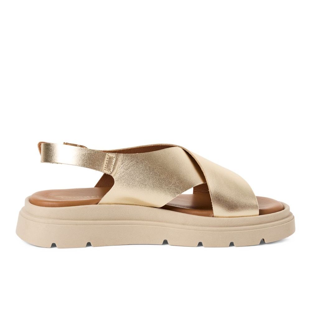 Letní sandály Tamaris, ve zlaté barvě, se Vám budou hodit k jakémukoliv oblečení do práce nebo ve volném čase. Tento model má dva silné překřížené pásky přes nárt a pásek za patu s přezkou, díky níž si obuv přizpůsobíte svým potřebám. Vyšší podešev doladí celkový vzhled této obuvi. Oceníte pohodlnou stélku z paměťové pěny, která Vám dodá pohodlí na každém kroku. Tyto sandály zaujmou nejen Vás, ale i Vaše okolí. Technologie: Touch-it - měkká stélka, která se dokonale přizpůsobí tvaru nohy, a díky tomu při nošení zajišťuje optimální pohodlí.
