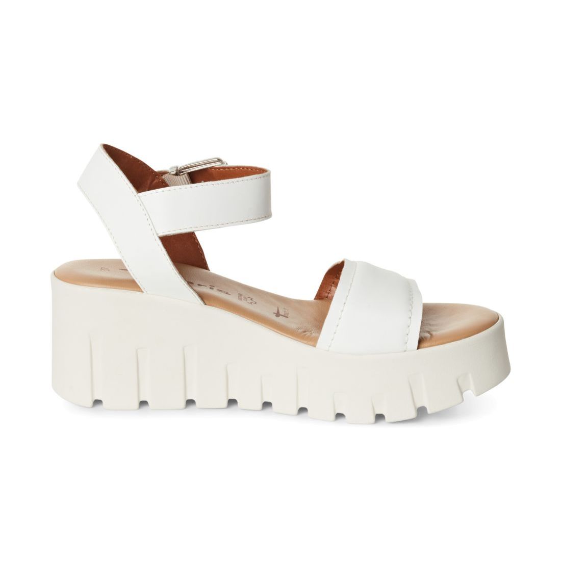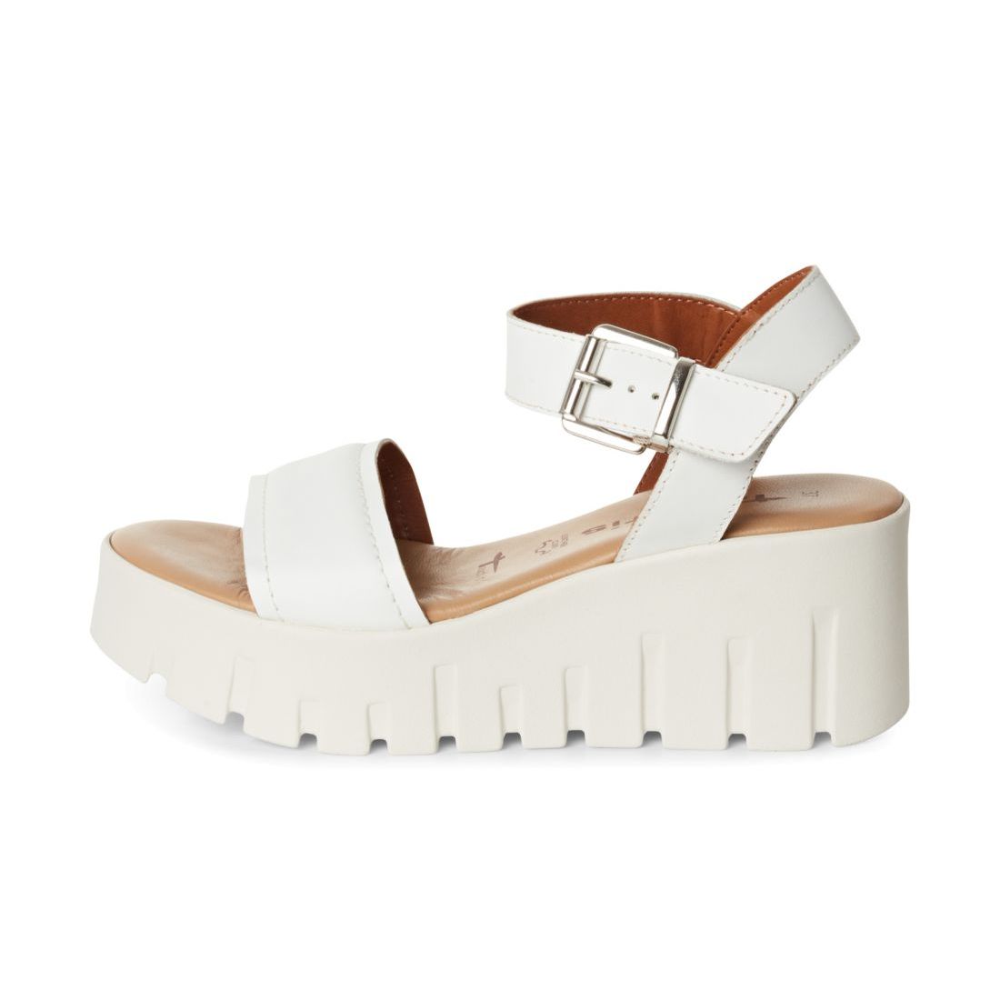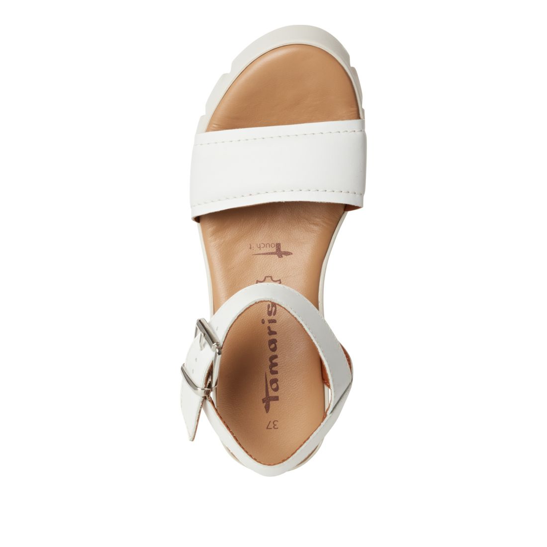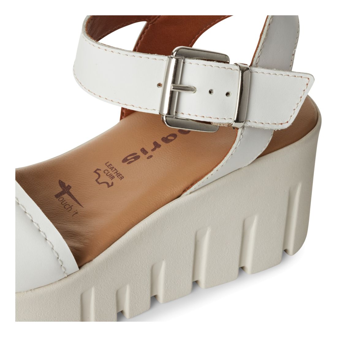 Moderní dámské sandály Tamaris v bílé barvě s designovou platformou. Svrchní materiál je z přírodní kůže. Horní pásek má ozdobnou a zároveň funkční sponu. Pohodlí na každém kroku budete mít díky měkké Touch-it stélce z paměťové pěny. Stabilitu Vám poskytne vyvýšená platforma. Tento model bude ozdobou Vašeho outfitu. Technologie: Touch-it - měkká stélka, která se dokonale přizpůsobí tvaru nohy, a díky tomu při nošení zajišťuje optimální pohodlí.