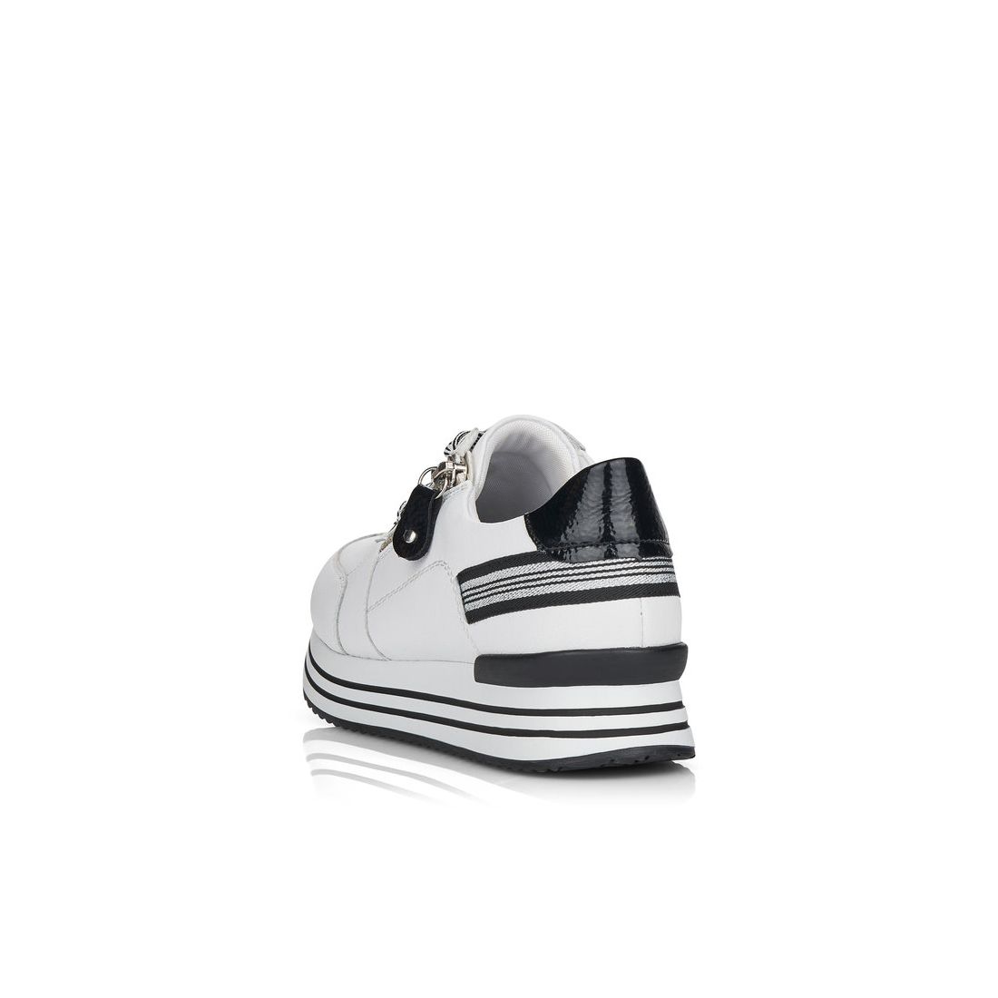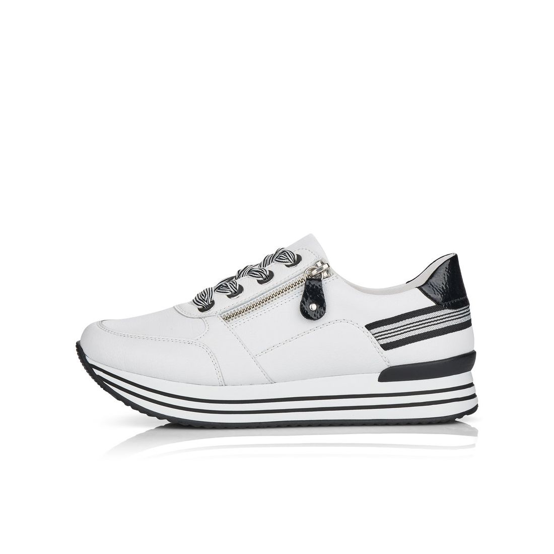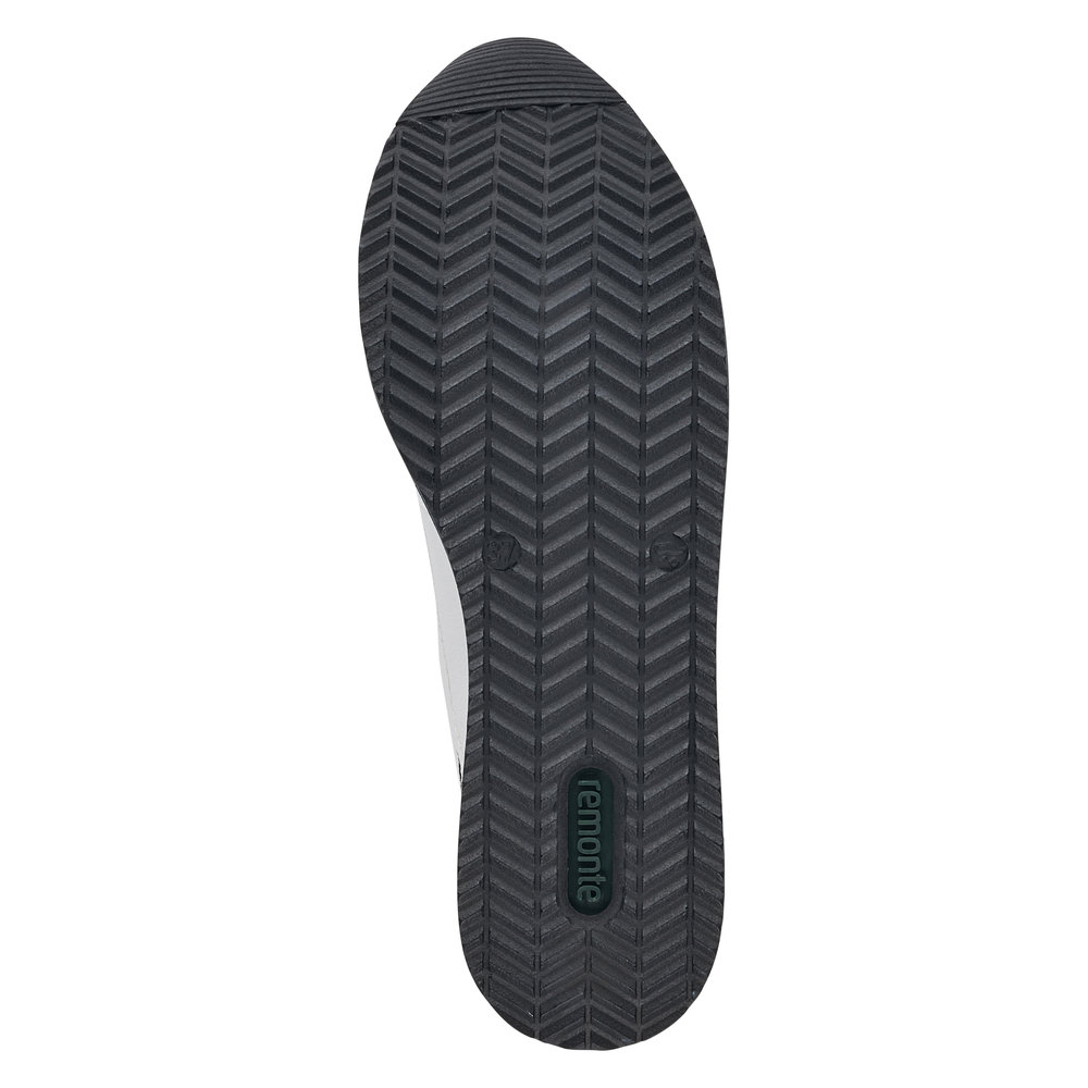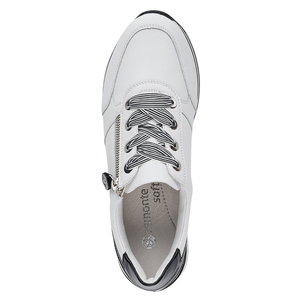 Znáte značku Rieker? Pokud ano, určitě nám dáte za pravdu, že je obuv velmi pohodlná. Značka Remonte je vyšší řadou značky Rieker a zakládá si na vysoké kvalitě a pohodlnosti, proto obuv této značky je vyráběna z vysoce kvalitních materiálů a je často dodávána i v NADMĚRNÝCH velikostech. Tyto stylové tenisky od značky Remonte zaujmou svým originálním designem. Na první pohled zaujme kombinace bílého svršku s ozdobnými černými, lakovanými prvky a výraznými tkaničkami. Díky nim a fuknčnímu zipu na nártu, se boty snadno obouvají a dokonale se přizpůsobí tvaru Vašeho chodidla. Pohodlí po celý den v těchto botách budete mít díky pohodlné měkké stélce a kvalitní podešvi. Technologie: RemonteSoft - patentovaná technologie stélky z paměťové pěny, která se perfektně přizpůsobí tvaru Vašeho chodidla. Tyto boty mají vyjímatelnou stélku z paměťové pěny, která se perfektně přizpůsobí tvaru Vaší nohy.