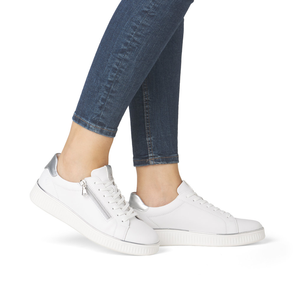 Znáte značku Rieker? Pokud ano, určitě nám dáte za pravdu, že je obuv velmi pohodlná. Značka Remonte je vyšší řadou značky Rieker a zakládá si na vysoké kvalitě a pohodlnosti, proto obuv této značky je vyráběna z vysoce kvalitních materiálů a často je dodávána i v nadměrných velikostech. Tyto dámské tenisky z přírodní kůže Vás zaujmou svým sportovně-elegantním stylem. Obuv je na šněrování a z venkovní strany má praktický zip. V patní části mají metalický pruh na opatku. Pohodlí Vám zajistí mimo jiné kvalitní, vyjímatelná měkká paměťová stélka, označována jako Remonte Soft, která se perfektně přizpůsobí tvaru Vašeho chodidla a vyvýšená podešev vysoká cca 3 cm. Díky jednoduchosti si tyto boty můžete vzít k jakémukoli outfitu. Technologie: Obuv je vybavena vyjímatelnou stélkou. Stélka RemonteSoft - je vyrobena z paměťové pěny, která se perfektně přizpůsobí tvaru Vašeho chodidla. Lite'n Soft -Lehká podešev a měkká stélka zajišťují pocit lehké chůze.