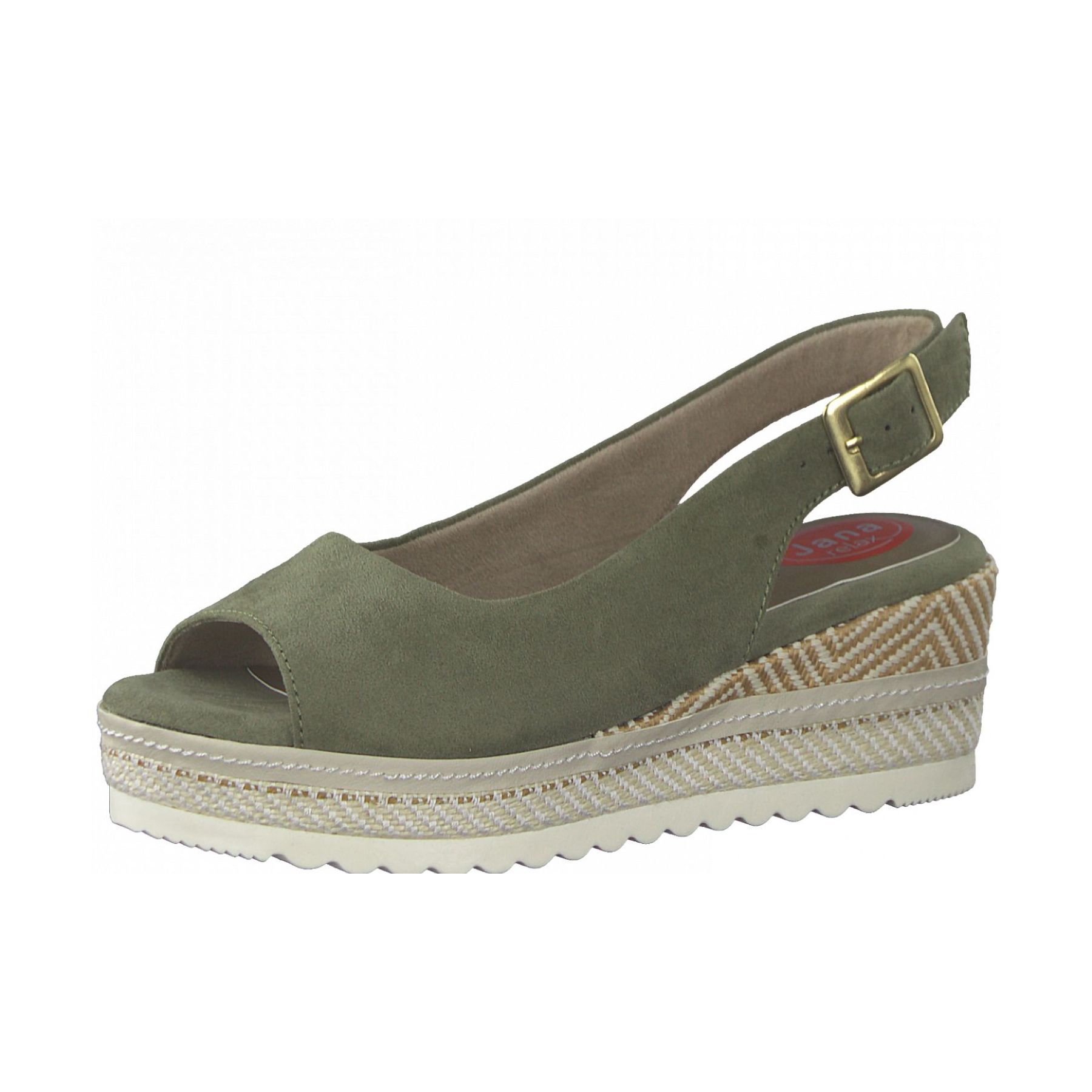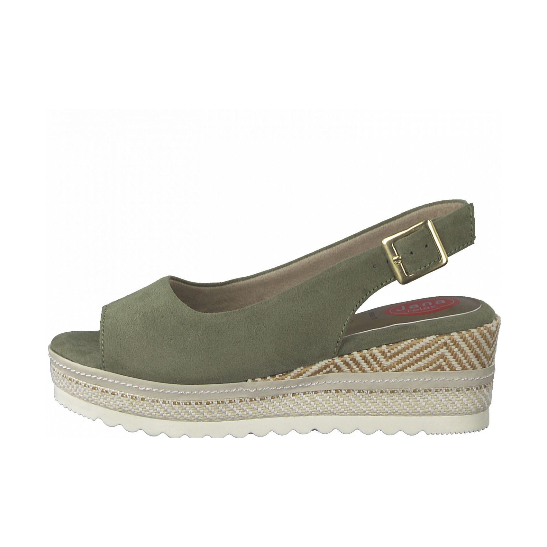 Dámské letní sandálky na klínku od značky Jana si zamilujete. Svrchní materiál je z kvalitního textilního materiálu. Lehce je sladíte k sukni, šatům nebo kraťasům a riflím. Díky přezce si obuv přizpůsobíte svým nohám. Jednoduchý svrchní materiál je skvěle doladěn se zdobeným klínkem. Můžete v nich vyrazit do práce nebo jen tak na toulky městem. Tento model nabízíme na našem e-shopu v další barevné kombinaci (platí do vyprodání zásob). Technologie: Vyměkčené místo pod patou pro pohodlný došlap, tzv. shock point. Snižuje nárazy na patu a její zatížení, čímž zpříjemňuje chůzi a snižuje únavu nohy.